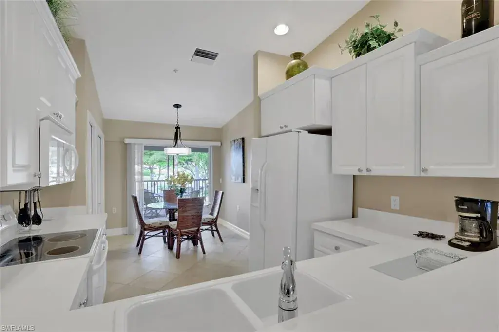 Sunny mornings and gorgeous views from both the front and back lanais, in this beautifully updated and maintained Second Floor Condo nestled on Hole 12 of Cedar Hammock’s Championship 18 Hole Golf Course. This Veranda has 2 large lanais, 2 large bedrooms plus den, 2 full baths and a one car garage, and is being sold turnkey. Elegant furnishings included, brand new AC with transferable 10 year warranty, newer light fixtures/fans, newer painting, newer flooring includes large tiles placed on the diagonal throughout most of the home, and wood laminate flooring in the master bedroom. Updated completely the master bath has new cabinets, custom glass shower, dual sinks, lights, hardware, etc – a gorgeous space. The Guest bath has also been beautifully updated. The active Cedar Hammock Community offers the perfect lifestyle – boasting a top bundled golf course – 4 community pools – newly updated cabana bar, The Hammock, a 2 story gym with machines and weights, professional trainers teach classes, yoga, tennis courts with competitive opportunities. Ride your bike to the gym for a yoga class or play a game of bocce, followed by lunch or dinner at the outstanding country club restaurant. Cedar Hammock is close to Naples and Marco Island, world class beaches, fine dining and minutes from shopping on famous 5th Avenue. Come see this beautiful condo in a great neighborhood.