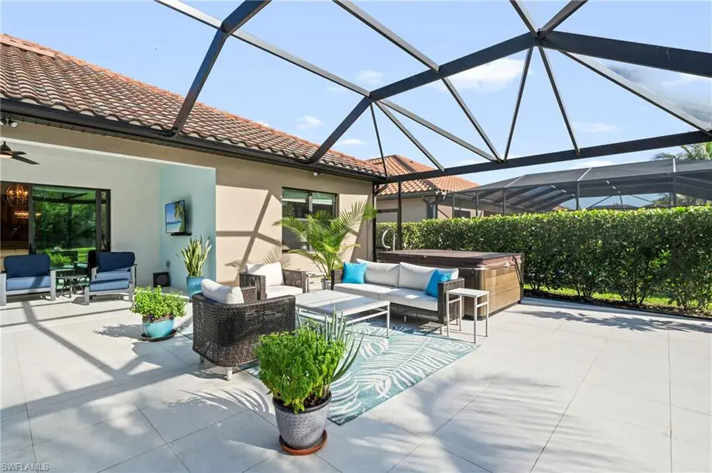 The chef-inspired kitchen features granite countertops, stainless steel appliances, and a large central island with bar seating—perfect for entertaining. Recent upgrades include a freshly painted bathroom, a new A/C unit and hot water heater (both just 1 year old), and updated exterior paint in 2023. Enjoy outdoor living at its best on the expansive screened lanai, where a relaxing hot tub and serene preserve views create a true outdoor oasis. As a resident of Treviso Bay, you’ll have access to an array of premier amenities including a grand clubhouse, resort-style and lap pools, a state-of-the-art fitness center, spa, salon, on-site dining, and courts for tennis, bocce, and pickleball. The included social membership provides access to all of this without the added expense of a golf membership. Located in desirable Naples, this home blends refined living with exceptional amenities—perfectly capturing the essence of the Southwest Florida lifestyle.