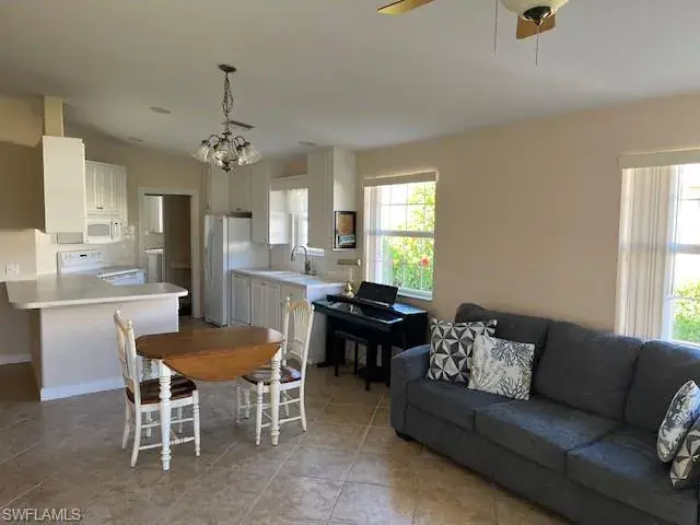 An excellent example of a clean attached Capri villa, this two bedroom with den/two bath villa is located in the gated community of Verona Walk. This poured concrete, original DiVosta built home has a vaulted ceiling, open concept, split bedroom floor plan with two suites on opposite sides of the unit for incredible privacy. Extended tile throughout the home and luxury vinyl flooring in bedrooms, no carpet anywhere. Both bedrooms are extra-large making this a comfortable space for you and your guests! The white and bright kitchen has a large wrap around breakfast bar and plenty of storage. This villa kitchen includes range, microwave, refrigerator, dishwasher and in home laundry.