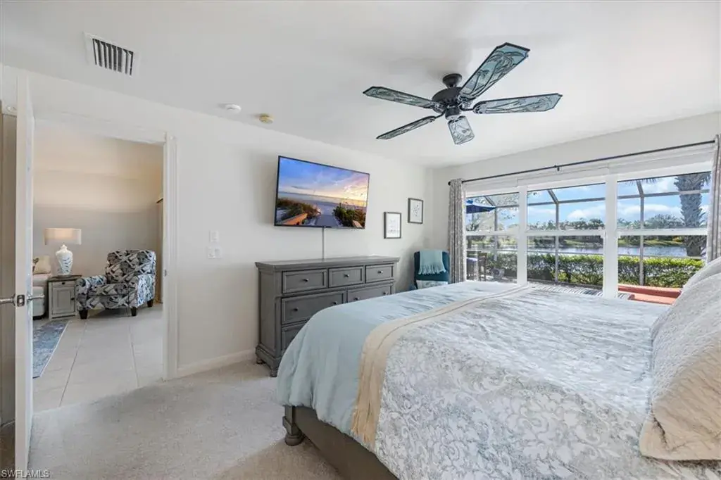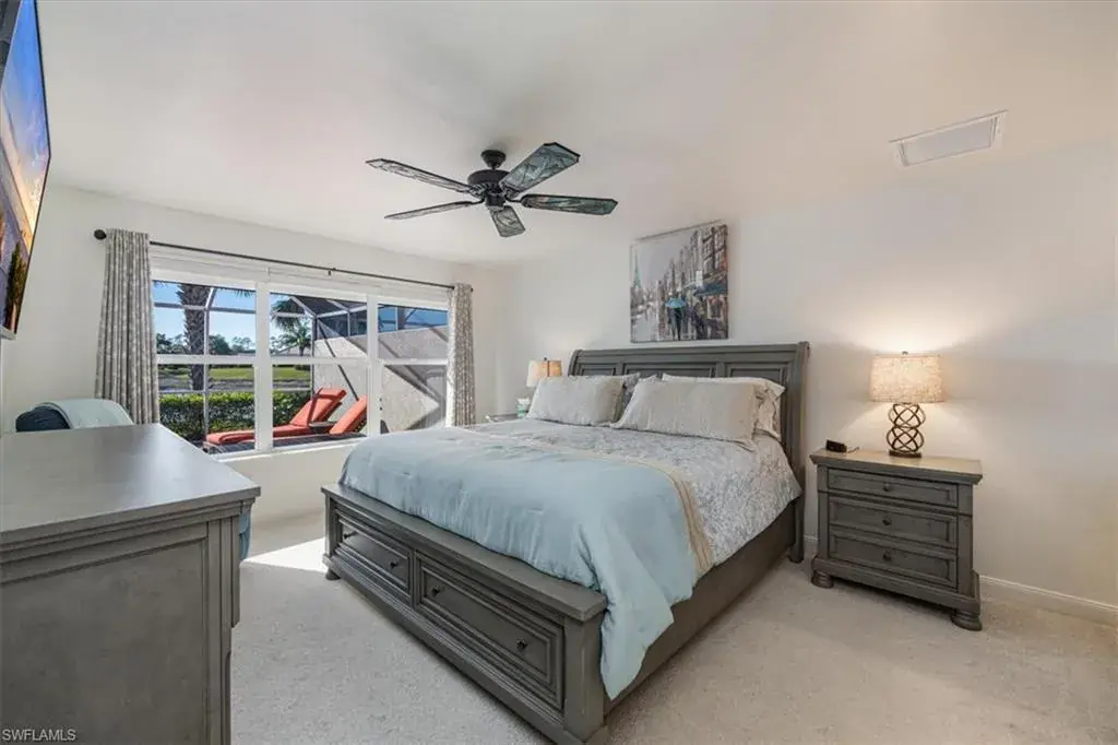 Step onto your expansive screened lanai and take in panoramic views of the serene lake, wide converging waterways, and miles of picturesque walking paths.