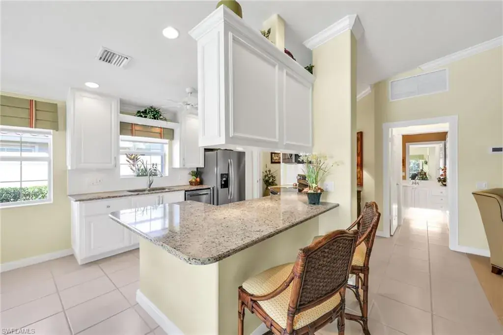 PRECISION PERFECT PIECE OF PARADISE ! CAPRI “Built Solid ” FUN IN THE SUN ALL DAY with this Southern Exposure Heated Pool with a Big Lake View also Skip to the Pickleball courts , GREAT LOCATION!!! ORIGINAL OWNER ! Meticulously maintained. NEW ROOF with Custom Gutter’s , Accordion shutters for added hurricane protection, CUSTOM crown molding, Granite kitchen with upgraded stainless steel appliances, Plantation Shutters , custom shades and screens. DONT’T FORGET THE STANDARD FEATURES THAT CAME WITH A REAL DIVOSTA HOME; Poured concrete walls, Smooth coat walls inside through-out the home, finished closets systems, 6 ft privacy wall Between your neighbor, central vac, insulated garage door. Verona Walk offers 24 hr. guarded gated entry, lighted tennis, bocce ball, basketball and pickle ball courts, resort-size community Lagoon pool, lap pool, tot lot, over 20 miles trails, 24/7 gym, post office, café/restaurant, ice cream Shoppe, hair salon, car wash, gas station, library, computer center, ballroom, card rooms, and a full-time activities director. Convenient to both Naples and Marco Island beaches, shops and fine dining, regional hospital and Edison college nearby. The low HOA dues also include lawn care & irrigation, basic cable TV