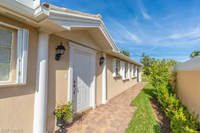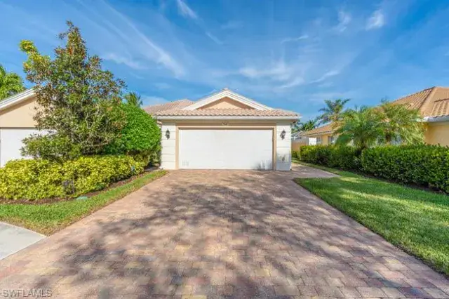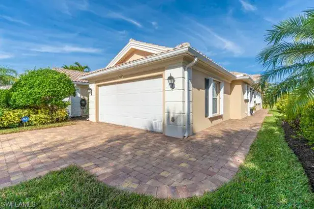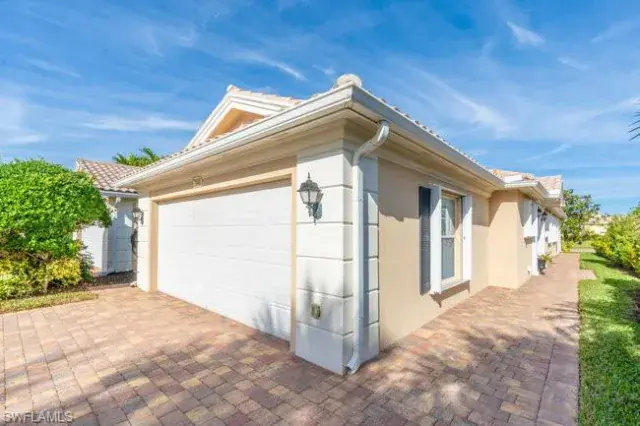 This villa’s lanai has been enclosed with glass sliders to offer additional living space. Carpet has also been added to the typically cement floor adding an easy transition to the extra room. From here a deep lawn A WROP AROUND CUSTOM WALKWAY reaches down to the water’s edge, where you can view one of VeronaWalks many walking bridges. Windows are storm ready with accordion hurricane shutters. Seated towards the closed end of the court this home has minimal traffic for a peaceful retreat.