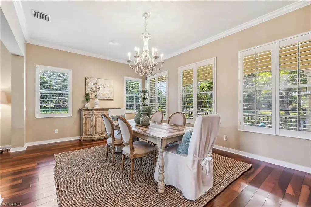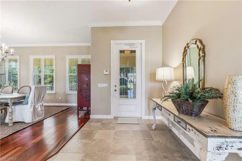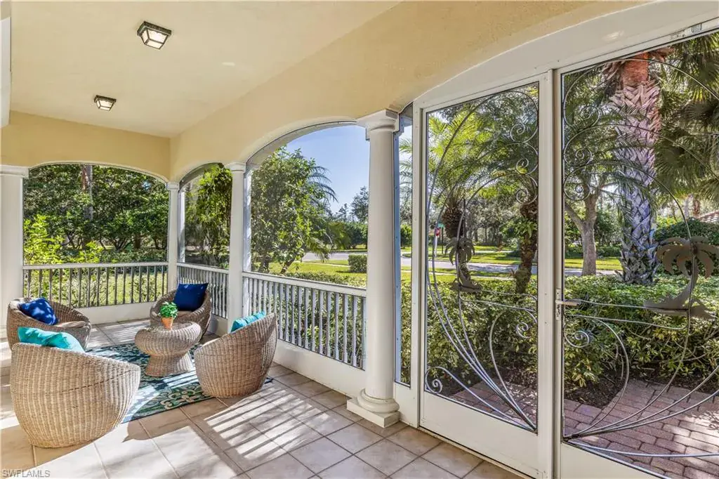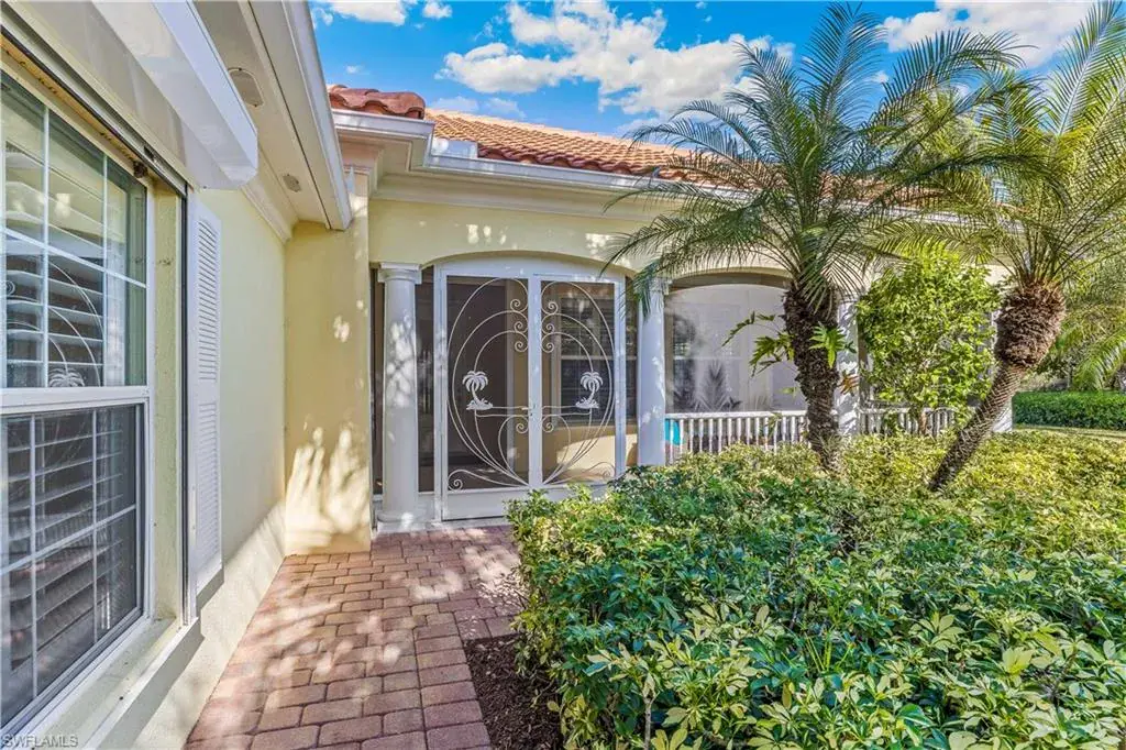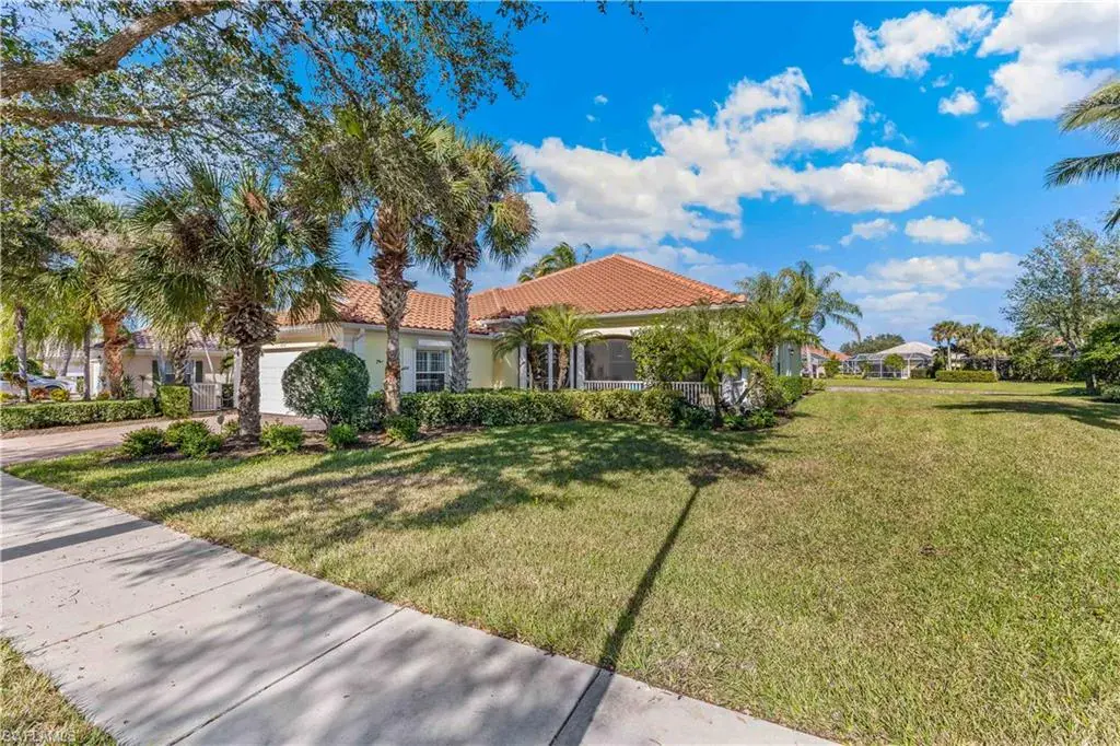 Welcome to your dream home in Verona Walk, a prestigious DiVosta Community. This lake view residence offers a perfect blend of luxury, comfort, and functionality. This remarkable 4-bedroom, 3.5-bathroom Carlyle Model Home boasts, large corner lot, 2,507 square feet of air-conditioned living space, providing ample room for your family and guests to relax and unwind. The spacious screened porch invites you into the home, leading to the wide-open Great Room and Kitchen, an entertainer’s dream. The Kitchen features an island adorned with beautiful granite countertops and backsplash, an electric cooktop, a wall oven, and a convenient pantry. Upgraded wood floors, built-in cabinets, crown molding, and plantation shutters add a touch of charm and elegance throughout. The spacious Primary Bedroom includes a tray ceiling, an ample walk-in closet, and a luxurious ensuite Bathroom. This home also features a newer roof. Enjoy the lake views while relaxing on your spacious screened lanai with an outdoor patio. Furniture is negotiable. Verona Walk offers 24-hour security with a guarded gate, a large resort-style community pool, a lap pool, pickleball courts, tennis courts, bocce ball, basketball courts, a gym, a kids’ playground, and scenic walking paths with bridges. The vibrant Town Center features a variety of amenities including Cafe Verona Restaurant, Sweetie’s ice cream shop, Salon at Verona Walk, a travel agency, a gas station, a post office, a library, a computer center, ballrooms for events, card rooms, and an activity director. Reasonable HOA dues include basic cable, internet, and lawn care. Conveniently located with easy access to downtown Naples and Marco Island, offering world-class dining, pristine beaches, and exciting boating opportunities. This is an exceptional opportunity to experience the ultimate Florida lifestyle.