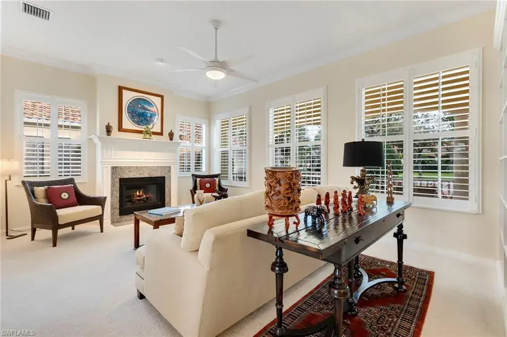 ****PRICED TO SELL****THIS METICULOUSLY MAINTAINED SOLID POURED CONCRETE CARLYLE MODEL BY DIVOSTA. THIS HOME SITS ON AN OVERSIZED LOT WITH A BEAUTIFUL LAKE VIEW WITH PLENTY OF ROOM FOR A CUSTOM POOL. THE SPACIOUS FRONT PORCH LEADS YOU INTO THE HOME THAT FEATURES 4 BEDROOMS AND 3.5 BATHROOMS. THE CHEF’S KITCHEN FEATURES AN ISLAND WITH BEAUTIFUL GRANITE COUNTERTOPS WITH A TILE BACKSPLASH AND UPDATE WHITE SHAKER CABINETRY. EACH BATHROOM HAS BEEN TASTEFULLY UPGRADED WITH QUARTZ COUNTERTOPS AND CUSTOM LIGHTING. THIS HOME FEATURES A GREAT-WALL WITH BUILT IN CABINETS, ELEGANT CROWN MOLDING THROUGHOUT , FIREPLACE, AND PLANTATION SHUTTERS. Verona Walk offers 24-hour security with a guarded gate, a large resort-style community pool, a lap pool, pickleball courts, tennis courts, bocce ball, basketball courts, a gym, a kids’ playground, and scenic walking paths with bridges. The vibrant Town Center features a variety of amenities including The Verona Grill Restaurant, The Pink Frog ice cream shop, hair salon , a travel agency, a gas station, a post office, a library, a computer center, ballrooms for events, card rooms, and an activity director. Conveniently located with easy access to downtown Naples and Marco Island, offering world-class dining, pristine beaches, and exciting boating opportunities. THIS IS A MUST SEE!