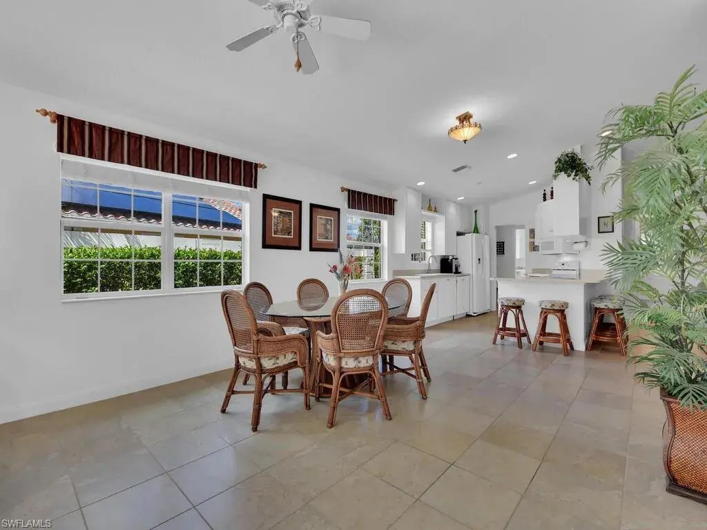 Discover exceptional privacy and comfort in this beautiful Capri-model home featuring an extended living room and expanded lanai — perfect for relaxing. White and bright kitchen with a breakfast bar makes it perfect for entertaining. This one-owner residence has been lovingly maintained and includes hurricane shutters. Lots of amenities with low HOA fees, offering 24-hour guarded entry, a lagoon and lap pool, tennis, pickleball, bocce, basketball courts, miles of trails, a fitness center, post office, full-service café, ice cream shop, gas station, salon.