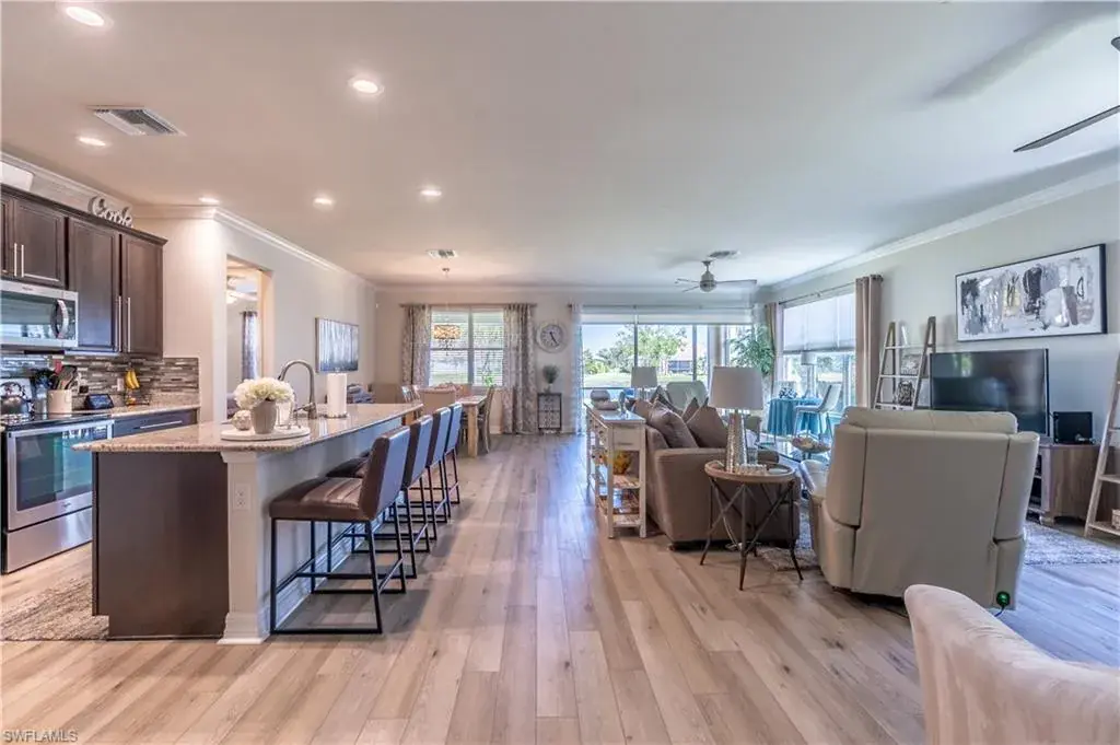 JUST REDUCED THIS Highly sought after 3 bedroom plus den TIFTON in Veronawalk. Open bright spacious floorplan, all tile flooring throughout, granite, stainless steel appliances, crown molding, beautiful private waterway to sit and relax. Amenities include the post office, real estate office, ice cream shop opening, hair salon, travel agency, Restaurant opening soon, and many activities through activities director, pickleball, bocce, tennis, basketball, community pool, lap pool, and fitness center.