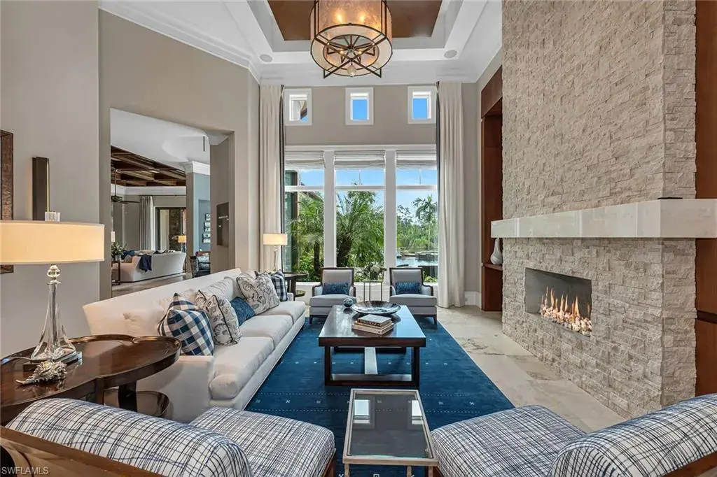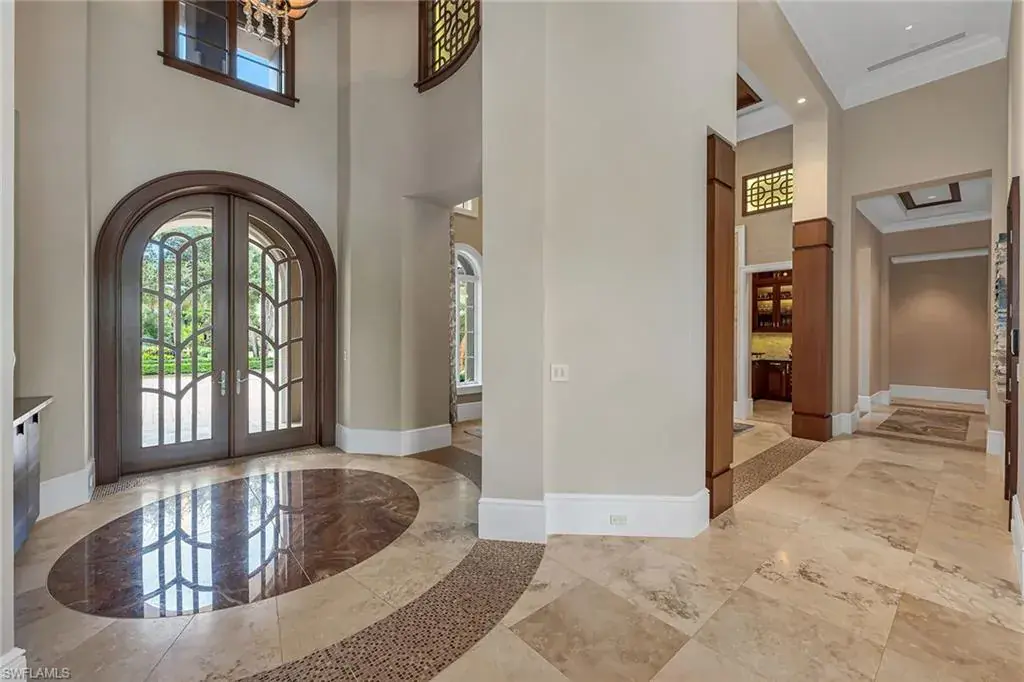 Nothing compares to this stunning custom home built by BCB with interiors by Collins DuPont. Offering a southeastern exposure with layered views over lake and preserve, you’ll be drawn to the timeless travertine floors that are enhanced by custom inlays and warm Brazilian cherry wood custom millwork found throughout the home and encompassing the oversized study. Throughout this completely automated smart home, each room features exquisite custom ceilings, lighting details and natural light. The exception – the 8-seat home theater. Perfect for a night in! Inspiration lives in the upscale gourmet kitchen that offers luxury appliances including two Sub-Zero refrigerators, four refrigerator drawers, two dishwashers, a warming drawer and more! This exceptional design opens to the family room and the oversized outdoor living area separated by automated 90-degree pocketing sliders and offering outdoor living at its finest! Retreat to the oversized sofa and enjoy the fireplace and outdoor television or relax in the saltwater pool adorned with fire bowls adjacent to the fire pit tucked away on its own. Located in the award-winning community of Mediterra, find yourself at home!