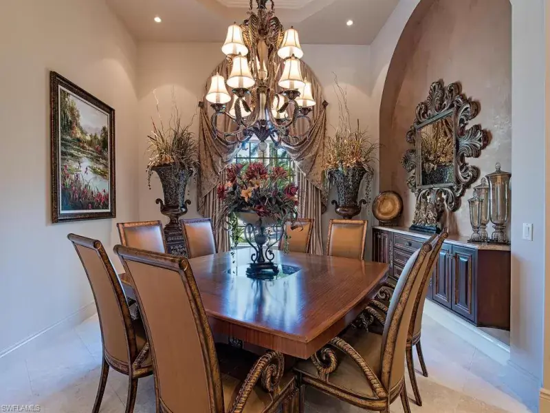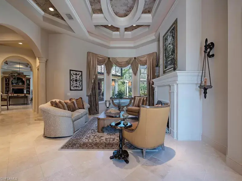 NO WAITING! FULL GOLF MEMBERSHIP AVAILABLE! A lovely stone paver drive & three car motor court welcome you to this grand estate in Verona. Soaring ceilings with coffer design & recessed lighting punctuate the luxurious formal living room with gas fireplace. Elegance abounds in the formal dining room with an adjacent wet bar, ideal for serving cocktails to dinner guests. The gourmet kitchen features rich wood cabinetry encapsulating upgraded appliances, gas cook top & a large center island and breakfast bar topped with pleasant granite. Casual dining can be enjoyed in the breakfast nook surrounded by seamless windows overlooking the tropical pool. Expansive stacking sliders allow outdoor living to blend effortlessly into the family room. Relax in the master suite with ornate ceilings & French doors leading to the screened lanai. The spa inspired master bath features his & her vanities, walk through shower and an expansive soaking tub. Wood floors adorn the handsome home office with rich wood built-ins. Dine al-fresco on the loggia, complete with summer kitchen & gas fireplace, or spend the day soaking up the Florida sun around the delightful pool & spa with rock waterfall feature.