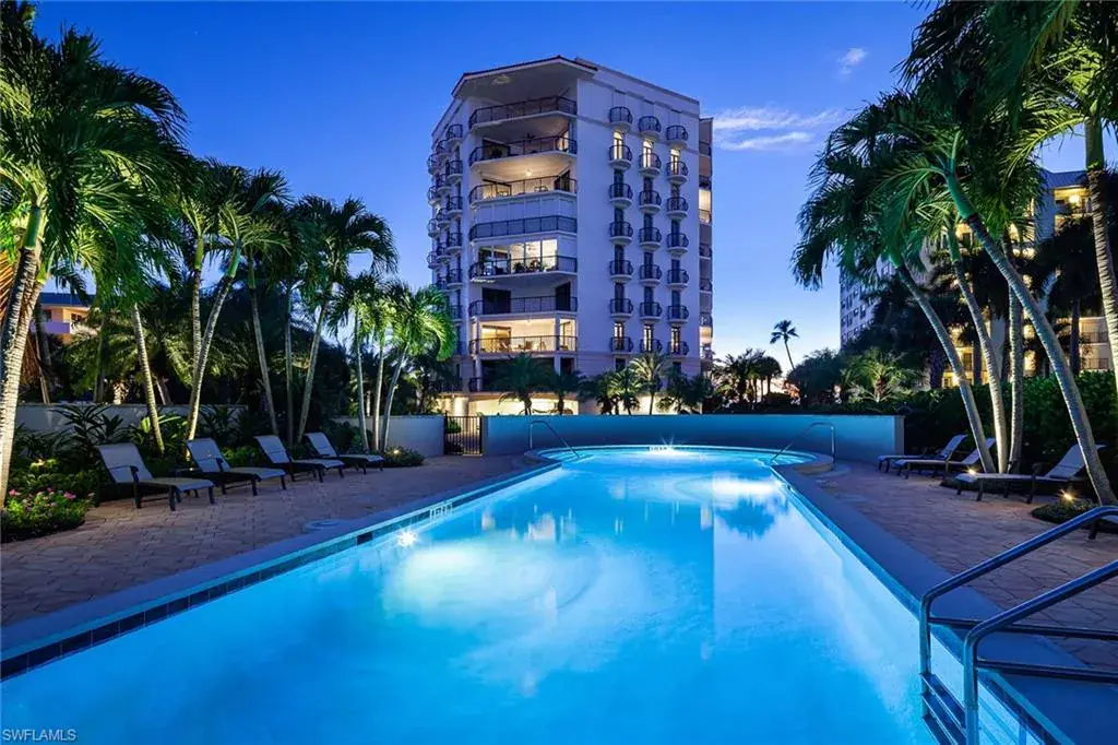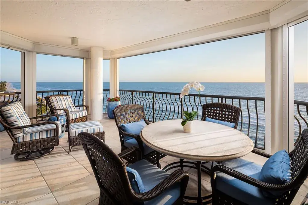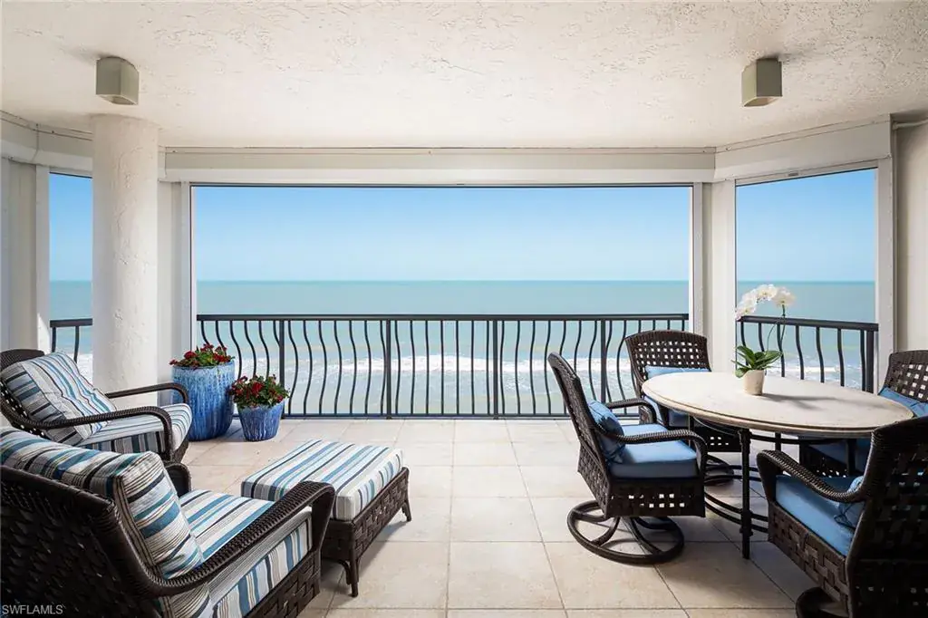 Live on Naples Miracle Mile. Spectacular direct beachfront views from this eighth-floor, pet-friendly apartment. Enjoy gorgeous sunsets and sweeping views of miles of white sandy beach from multiple terraces. The irresistible sounds of surf and sea beckon. This sophisticated three-bedroom and den, four-bath apartment has been updated by the owner to include a kitchen with white cabinets, quartzite countertops, stainless appliances and breathtaking views of the gulf. Updated dual owners’ baths with white cabinetry and granite vanity tops, large living room with wet bar with Verde marble top and wine cooler. Two new air conditioners in 2022. Via Delfino is a small, boutique building with only 24 apartments, three per floor. Some of its outstanding features include an on-site manager, dogs of any size allowed, a beautiful lap pool with a poolside lounge area and a whole building generator. It is superbly close to Old Naples with its renowned restaurants and shopping.