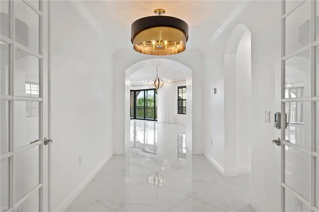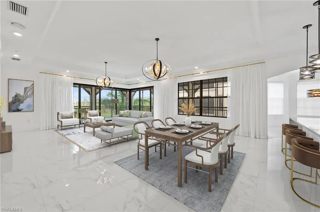 Welcome to this move in ready Talis Park penthouse. Enjoy Naples signature resort style living w/ all of the gated neighborhood’s amenities including one of the nation’s top rated Greg Norman/Pete Dye golf course, multiple pools, clubhouse, restaurants, gym, tennis & bocce ball courts, & friendly neighborhood atmosphere. Viansa residents have their own private pool area. The elevator escorts you directly into this unit w/ white marble tile, high ceilings, & an open floor plan. The “Amazon Smart Home Ready” eat in kitchen is fully equipped w/ stainless Monogram appliances, bar, & waterfall edge breakfast bar. Sliding glass doors allow for seamless indoor-outdoor entertaining on the 704sqft private screened terrace w/ screened storm shutters that overlooks the golf course & lakes. The expansive master bedroom includes a custom walk-in closet & spa-like ensuite bathroom w/ soaking tub, double vanity, & XL glass shower. The 2 additional bedrooms are equally spacious. The den space can be used as a 4th bedroom, office, gym, or however you see fit. Unit comes with 2 assigned parking spots on the ground floor w/ add’l oversized private storage space w/ easy access to the building’s lobby.