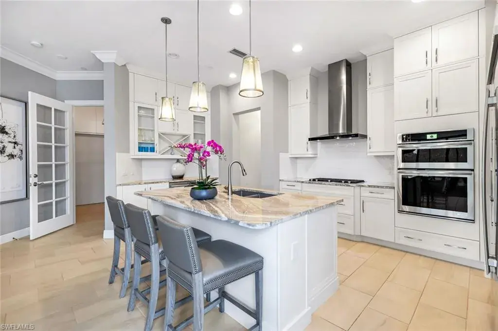 Professionally decorated by local award-winning Cardamon designs this Viansa “Terrace” condo located in Talis Park comes FULLY FURNISHED! A Penthouse 3rd floor unit has elevators that welcome you into your own private foyer. Breakfast bar and dining table seating. Natural gas cooking and built in fridge with separate dry bar with wine and beverage fridge. Upgrades include primary closet built out, rock wall with recessed fireplace on the screened in lanai. Southern exposure with private, tranquil preserve views. This residence comes included with your very own humidity controlled oversized private 2 car garage with custom designed built in organizational storage cabinetry. The Viansa sub-division in Talis Park is walking distance from the 5 Har-Tru Clay signature tennis courts, Pickle Ball and Bocce ball courts, grill, the lap pool, and tennis pro-shop. Restaurants, gym, and activities at the main clubhouse. Located in North Naples, Talis Park offers an award winning recently renovated golf course designed by Greg Norman and Pete Dye. Come enjoy complete maintenance free luxurious living!