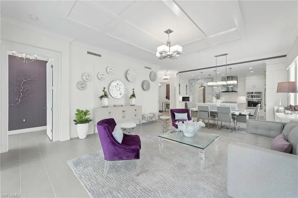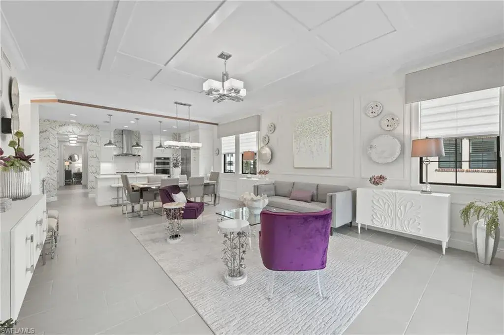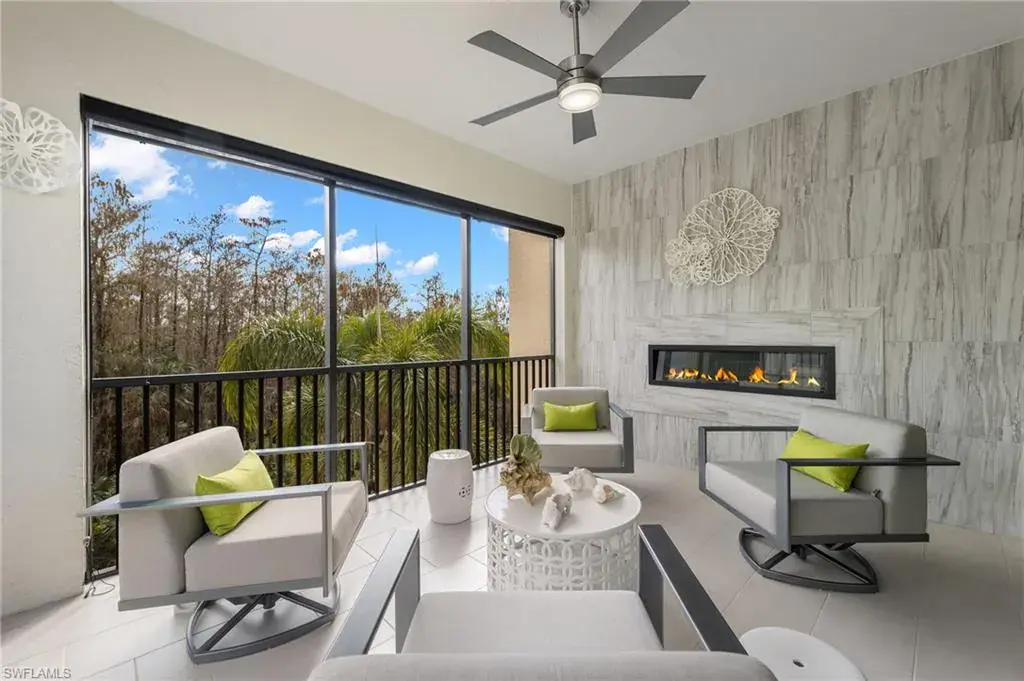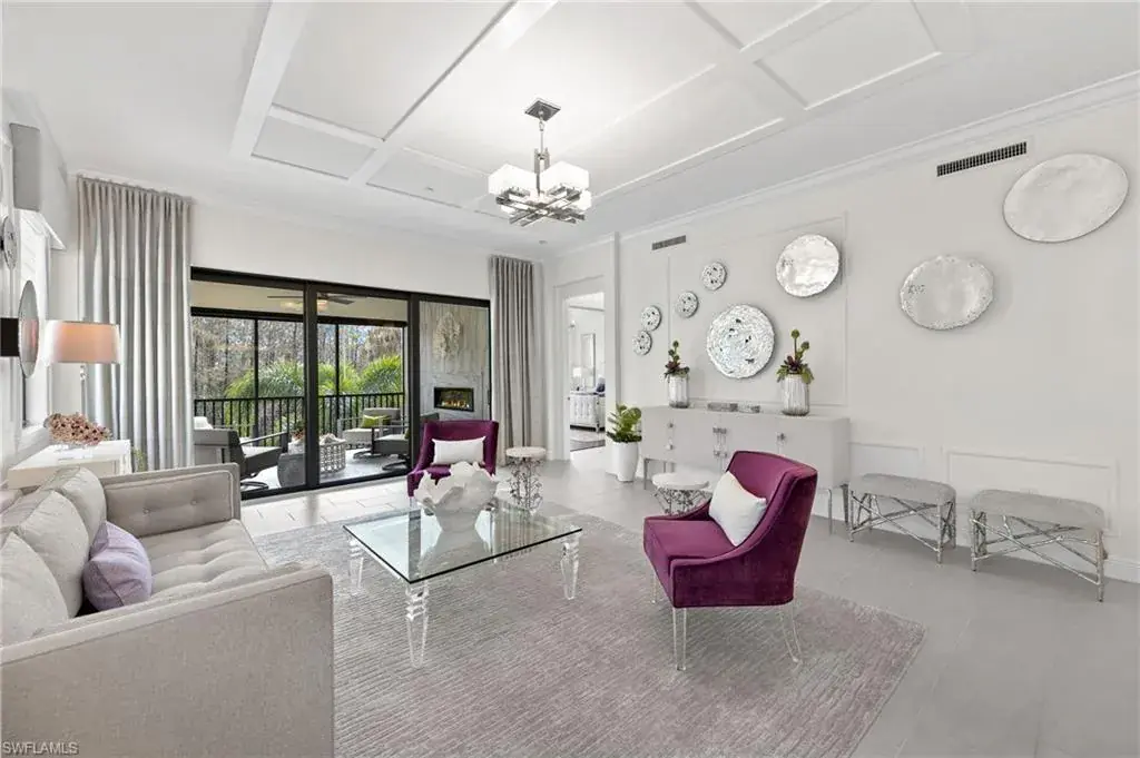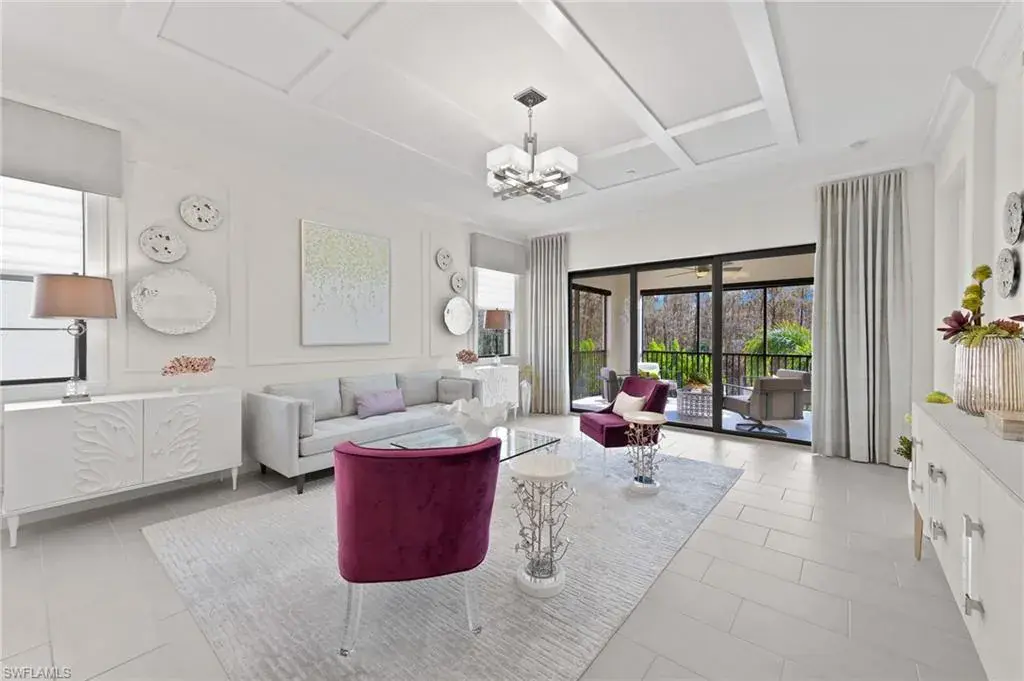 Resplendent in every way! This stunning condo provides unparalleled decor and finishes. The sales price INCLUDES the SPORTS MEMBERSHIP (currently $38,250 and the two resale fees of $5000 each) for additional value to the happy Buyer! The interior provides tile flooring in the living areas with hardwood in the bedrooms, built in cabinets in the primary bath, custom closets throughout, sophisticated furnishings (negotiable), a wine or beverage cooler in the bar area and a fabulous screened loggia with a built in electric fireplace for additional ambiance. Crown molding and custom ceiling trim accentuate the great room/dining area. Natural light is abundant in this treasure! The oversized two car garage provides room for two vehicles and a golf cart and is humidity controlled. A short stroll to the tennis and pickle ball courts, lap pool, bocce courts and “tot lot” make the location enviable. Talis Park affords a lively social calendar, the newly renovated award winning golf course, a beautiful clubhouse with different bar and dining venues, two dog parks, fitness rooms, a spa and a Mercedes Beach Runner! Treat yourself to a preview of this captivating condo!