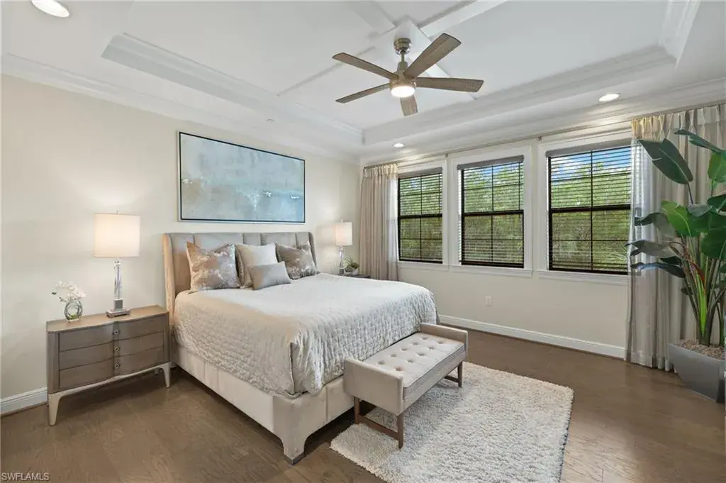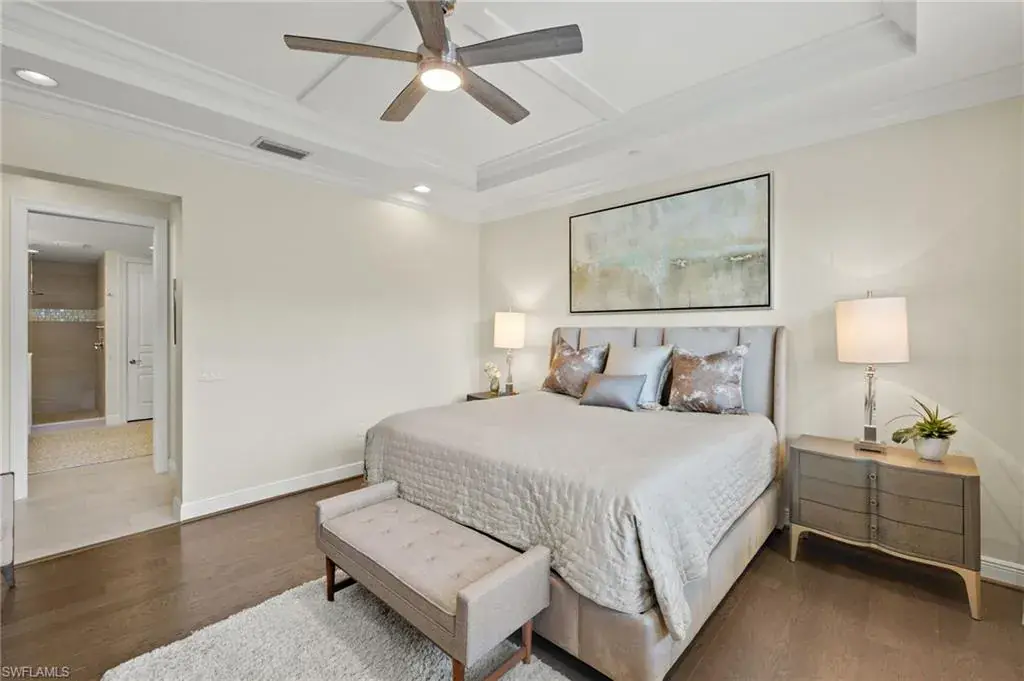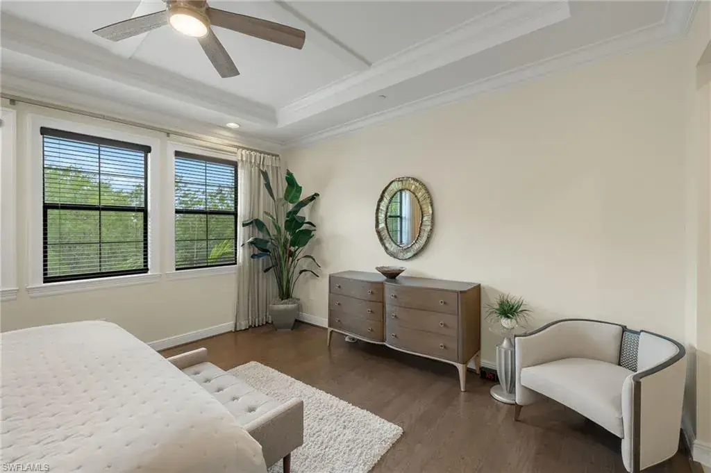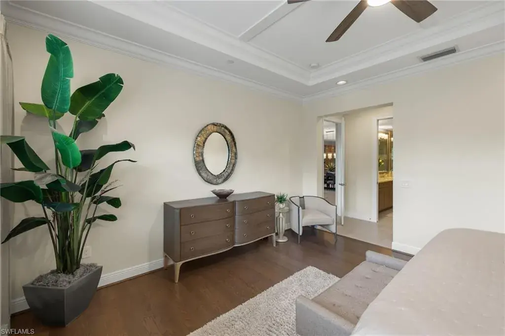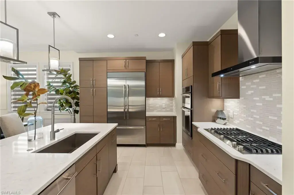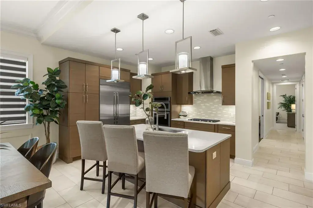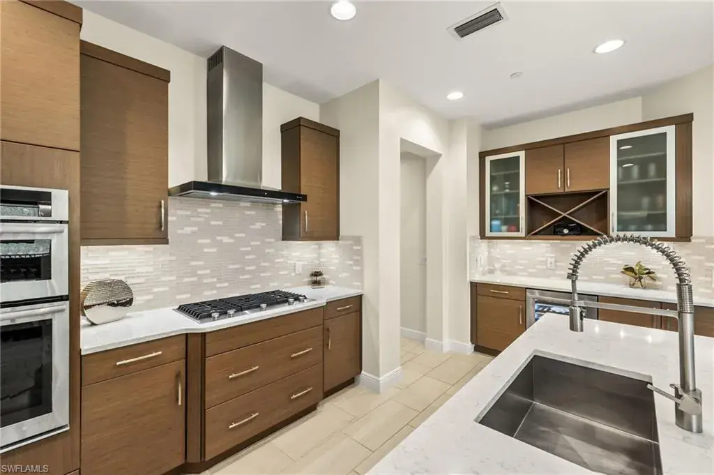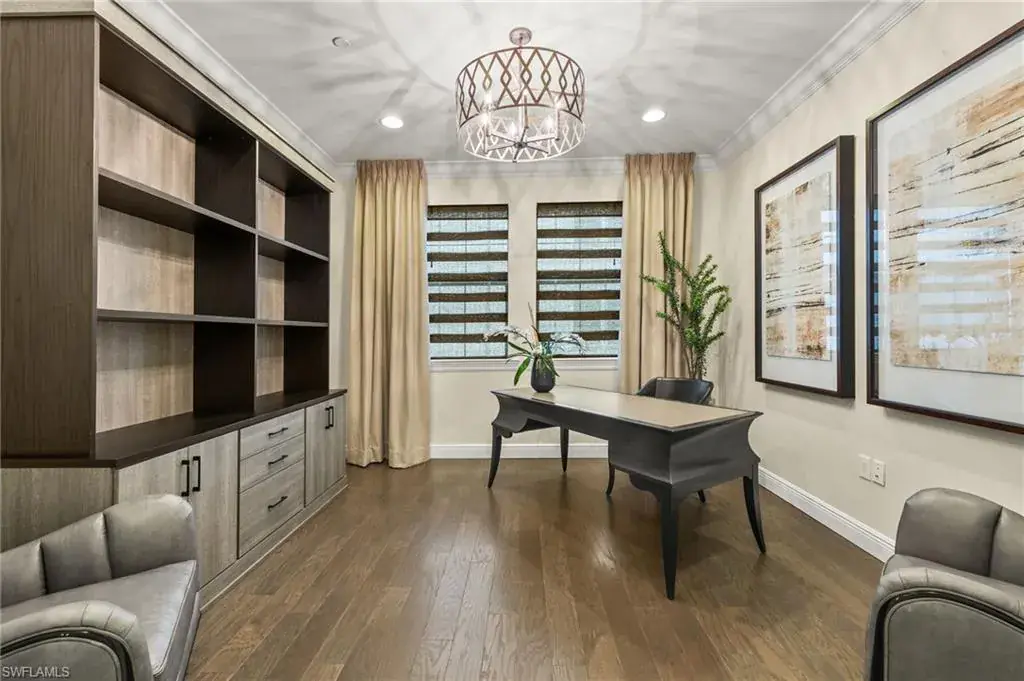 From the spacious, private two car garage with expoxy floors to the timeless interior, you will be captivated by the value found in this TALIS PARK TERRACE condominium. Three bedrooms plus an office with handsome built in bookshelves and hardwood floors, three and a half baths, a dry bar with a wine/beverage cooler, natural gas cook top and an immaculate interior, what’s not to love? Talis Park is an active, vibrant community and can be especially enjoyed from the Viansa Terrace Homes with a quick stroll to the tennis and pickleball courts, bocce, playground, grill and the lap pool. Golf is limited during season with a Sports Membership but can be enjoyed from May 1st through October 31st just as a full golf member would as well as the ability to play reciprocal courses. Owners may have their own golf carts as a bonus in Talis Park. Miles of walking/biking paths, two dog parks, many dining venues and a new rotunda bar, a spacious community pool and excellent workout facilities are further bonuses. Located in North Naples and minutes to the Gulf beach, RSW airport, shopping and grocery stores make this an excellent locale.