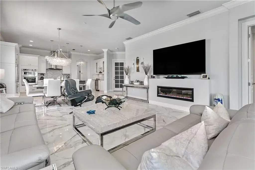 Amenities include a private membership opportunity to the newly renovated golf course designed by Greg Norman and Pat Dye to be completed in Fall 2023, community shuttle to Vanderbilt Beach, walking paths, attended fitness center, spa, lap pool, dog park and luxurious living.