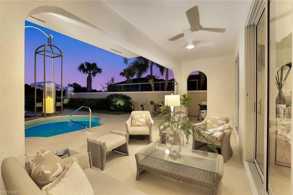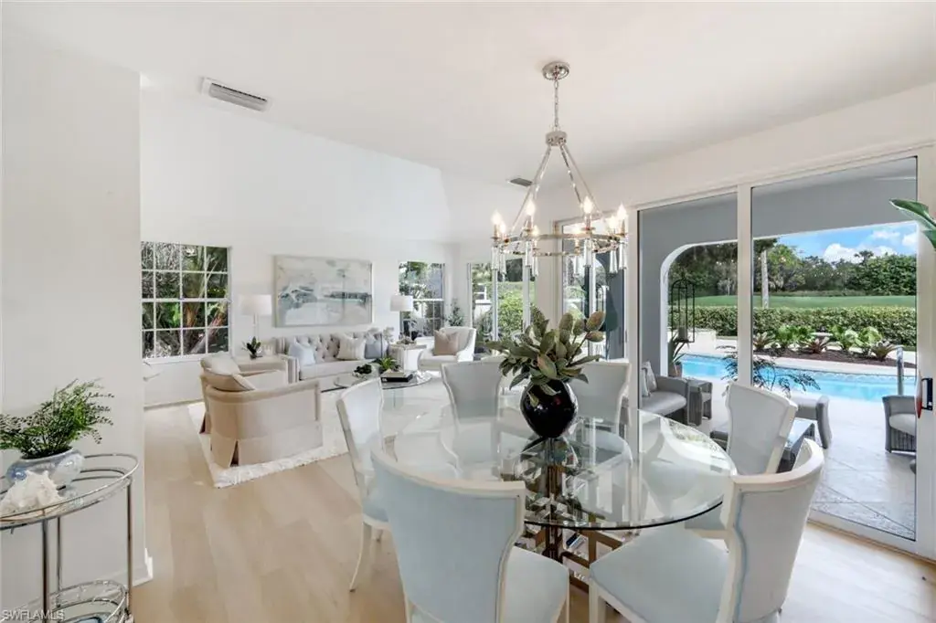 Discover a rare opportunity to own a turnkey 4-bedroom, 3-bath single family home in the exclusive Wyndemere Country Club. This stunning two-story residence, spanning just under 5,000 square feet of indoor/outdoor living space, has been impeccably updated and professionally styled with timeless sophistication. Step inside to soaring ceilings and an abundance of natural light streaming through expansive walls of sliding glass doors. On the main level, elegant formal living and dining areas transition to the pool deck, with covered outdoor living and open dining areas for both intimate gatherings and grand entertaining. Private and serene, offering beautiful views of the #3 green of the white course. A golfer’s dream. The open kitchen family room features sleek granite countertops, a generous center island, and premium stainless-steel appliances with a built-in wet bar. The primary suite is a true retreat, with a private balcony and a stunning view of the pool and golf course. Two ensuite guest rooms and a versatile third that could be used as an office, den or fourth bedroom. Every detail has been thoughtfully curated throughout the home. Wyndemere, an award-winning 2025-2026 Platinum Club of America, offers unmatched amenities, including 27 holes of Arthur Hills golf, 10 HarTru tennis courts, pickleball courts with 165 stadium seating for pickleball pro exhibitions, active bocce teams, full croquet, a resort style zero entry pool, golf simulator, putting greens, driving ranges, 2 pro shops. A full-service spa, salon and state of the art fitness center with a full schedule of group exercise classes and personal training. Enjoy formal dining, as well as indoor/outdoor casual dining at the Tiebreaker, and a lively social schedule of events/parties at the club. Wyndemere, known for its friendly and welcoming membership, is ideally located within minutes to 5th Avenue world class dining, shopping and the spectacular sugar sand Gulf beaches. Live everyday like you are on vacation and come enjoy this amazing lifestyle!
