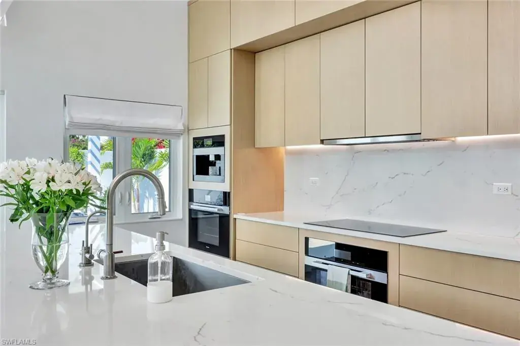 The stunning kitchen features a grand island with Cambria Quartz countertops, Miele appliances, Sub Zero freezer drawers, Avallon beverage refrigerator, LG washer and dryer. The entire home has been replumbed and includes a whole house water filtration system. All new electrical and an air filtration system with 2 condenser units. The pool area has a 1900 foot deck with Pergola and new LED landscaping lighting. The pool has been completely resurfaced with new tile and pool heater. The villa also has a new roof and roof structure. This property is NOT in a flood zone. It is an X zone property (FEMA).