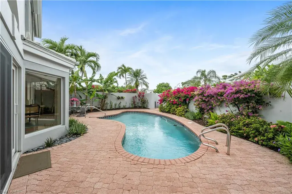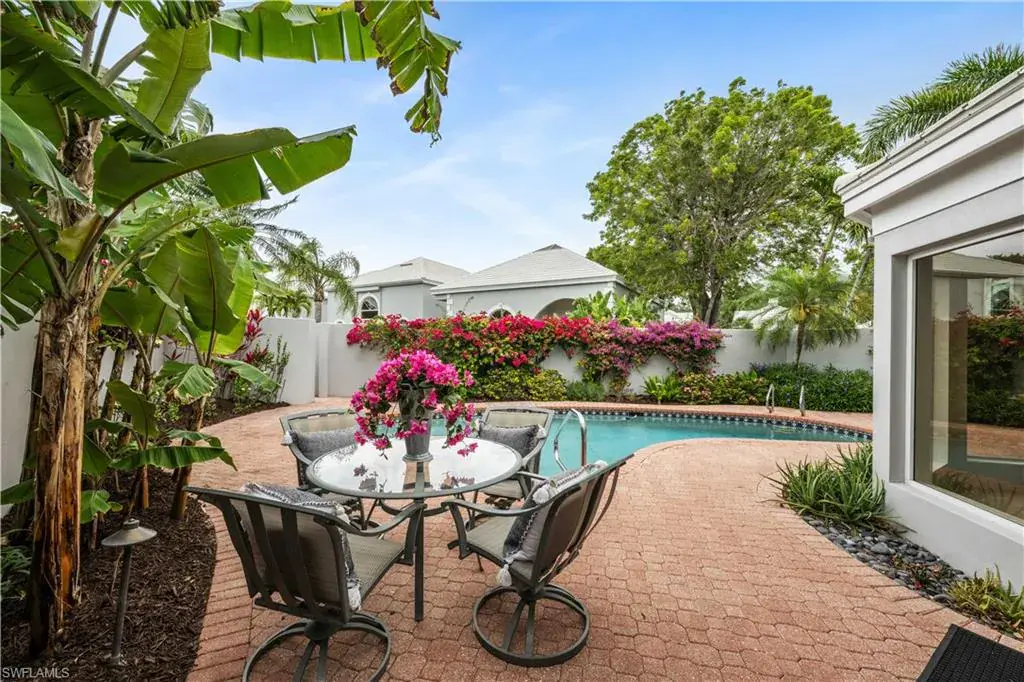 In the prime area of Pelican Bay, this stunning 2718 sf villa was recently renovated!  The property features extensive outdoor living with salt water pool. The home has been updated with a new kitchen featuring high end quartz counters and stainless appliances. There are three bedrooms and 2 ½ brand new baths. The master bedroom is on the first floor with extensive closets. There is a second master bedroom with extra bonus room. The third bedroom works well for visiting family and friends. An office and playroom complete the house. A spacious two car garage with air conditioning, storage and new flooring. Pelican Bay is a premier Naples community. The community offers three miles of private Gulf of Mexico beach for all owners and tenants to enjoy. There are beach clubs with restaurants and bars only for owners, tenants and guests which are currently in the process of being rebuilt after being damaged by Hurricane Ian. Additionally, Pelican Bay owners have access to a world class fitness facility, 22 tennis courts, kayaking and other activities. The house is currently staged. It can be sold furnished or unfurnished. The staged furniture is available for purchase.