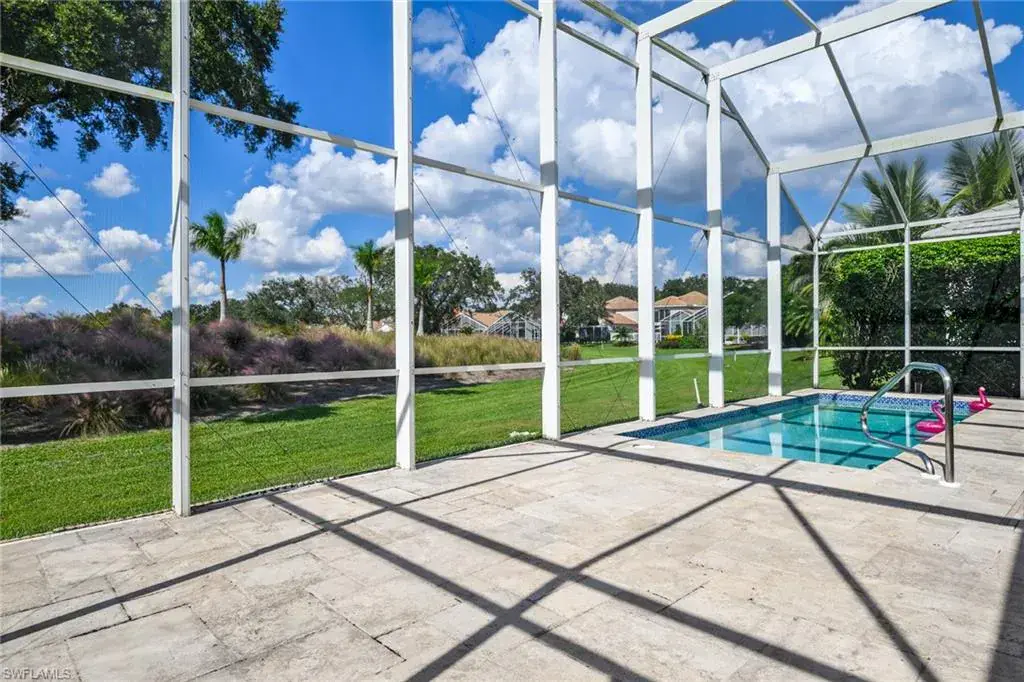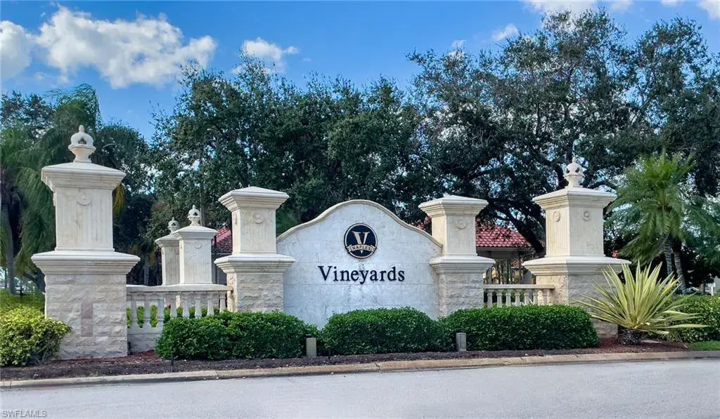 Located within Villa Verona in The Vineyards—an intimate boutique community of just 34 homes—this bright former model residence offers a rare blend of privacy, comfort, and convenience. Featuring 2 bedrooms plus a versatile flex space ideal for a home office, den, or additional guest area, this home is offered turnkey furnished with contemporary décor for effortless move-in living. Enjoy serene landscape and golf course views, stunning sunsets, and a private heated pool from the screened lanai. Inside, soaring 12-foot cathedral ceilings and a wide-open floor plan create spacious, light-filled living areas that live larger than the square footage suggests. Abundant storage throughout adds practical everyday convenience. Whole-home storm shutters add peace of mind. Thoughtful updates include a fully equipped kitchen, modernized bathrooms, and Florida tile flooring. Original owners—no storm damage or flooding ever. Situated just minutes from Crossroads Market with dining, services, Publix, Walgreens, salons, and more, plus Physicians Regional Hospital right next door. A short drive brings you to public golf, Naples’ white-sand beaches, Vineyards Community Park, top-rated schools, shopping, dining, and everyday conveniences. Immediate golf memberships are available at The Vineyards, which includes access to a 36-hole PGA Championship golf club, tennis, pickleball, bocce, a fitness center, and spa with a lap pool, social events, and more. Lifestyle memberships are also available. Perfect for full-time or seasonal living—an exceptional opportunity in one of Naples’ most sought-after locations.
