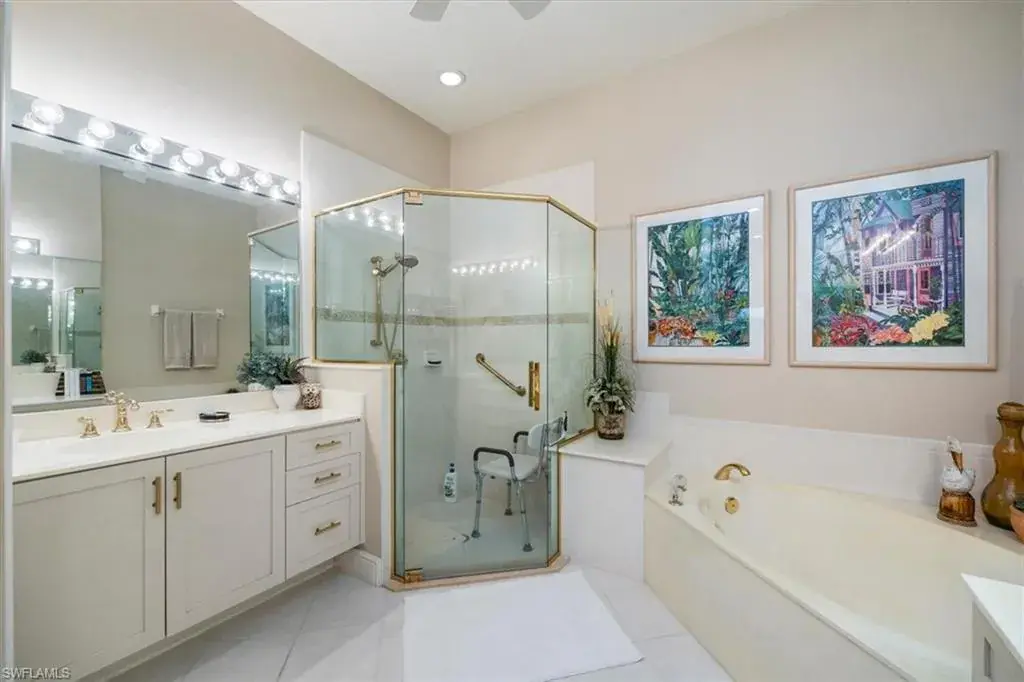 Lovely and spacious two bedroom plus den home located behind the private gates of the Vineyards. This rarely available lifestyle, being one of only 64 homes in Villa Vistana, has a new roof installed in Sept. 2025! This home has been impeccably maintained, including new water heater approximately two years ago and new a/c approximately four years ago. Interior features include bright and spacious kitchen with dinette area with ample morning sunlight to enjoy your morning coffee and paper. The oversized living room leads to the wide patio and provides tranquil views of professionally maintained, lush landscaped area and plenty of natural light.