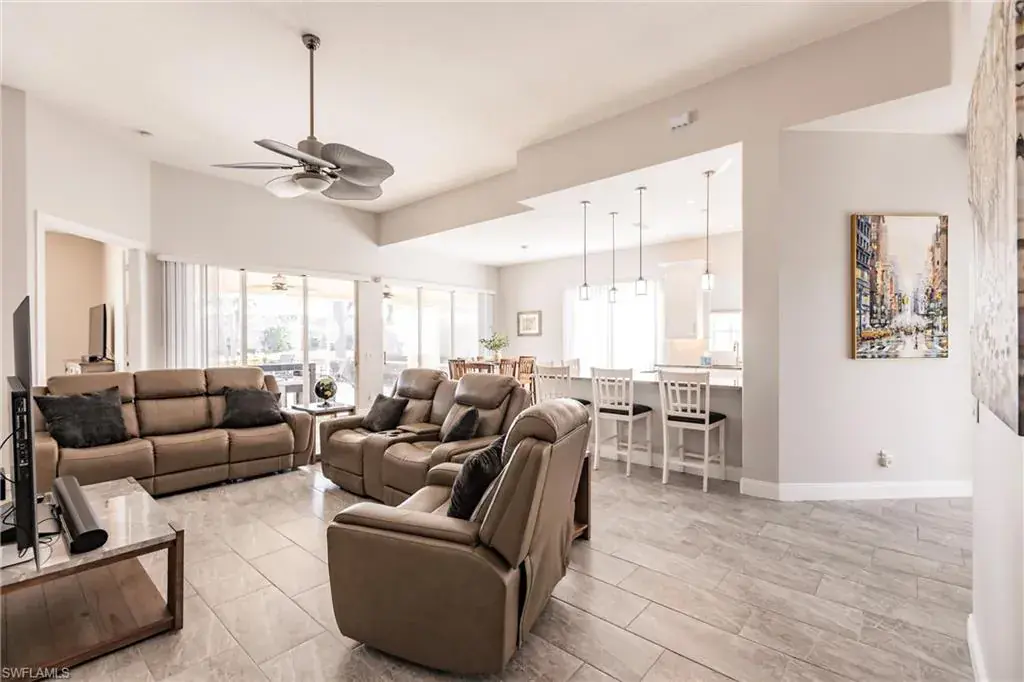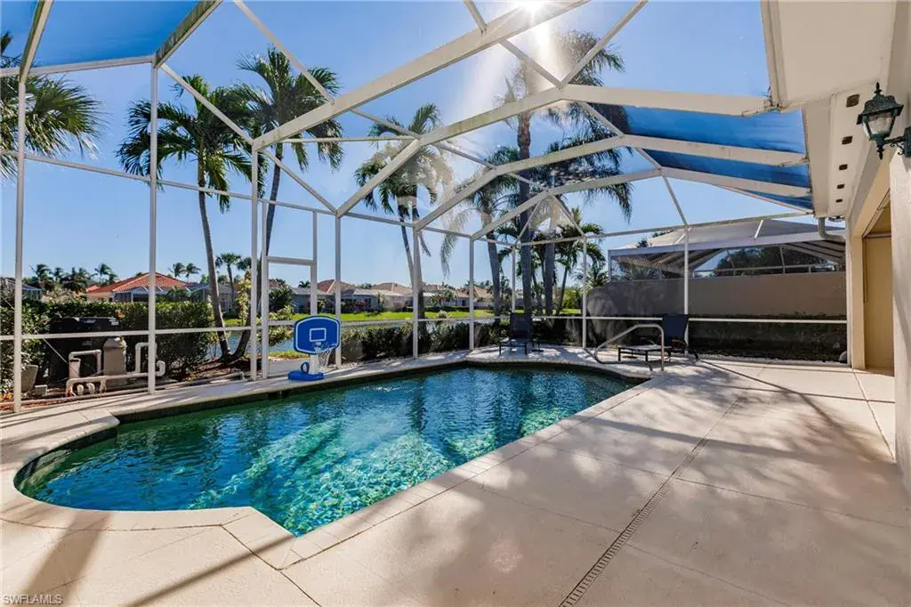 Beautifully renovated 3 bedroom plus den Oakmont on an interior street with custom pool in the ever popular North Naples community of Village Walk. 2023 kitchen renovation including white shaker style cabinets and stainless LG appliances, 12 by 24 tile throughout the home. The Oakmont is a very open and functional floor plan. Experience sunny mornings from your private pool with this eastern exposure with peaceful lake views from inside and out. Village Walk is ideally located just 5 miles straight down the street from the sugary sands of Vanderbilt Beach and less than 4 miles to the shopping and dining gem – Mercato! There is so much to be a part of here including Pickleball, tennis, bocce, gym with lap pool, resort pools, on-site restaurant, miles of lighted and paved walking paths, and so much more!