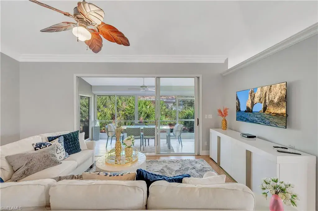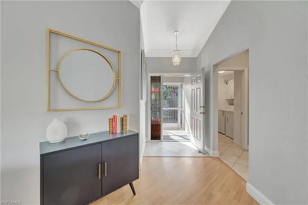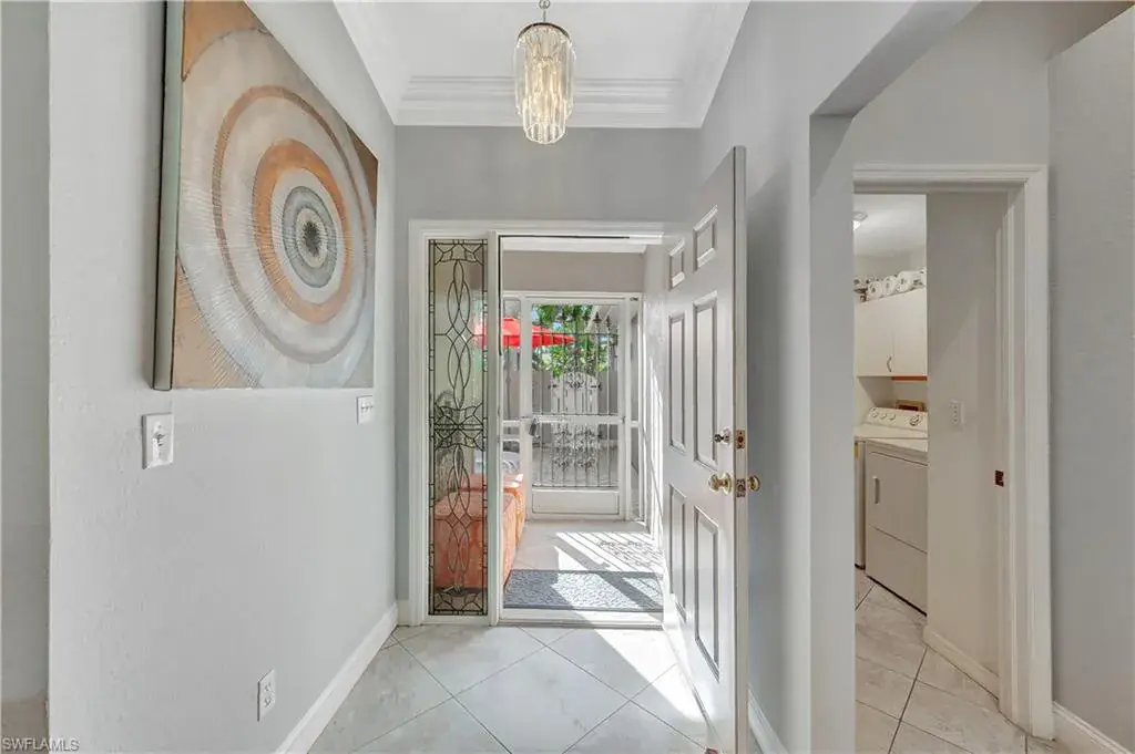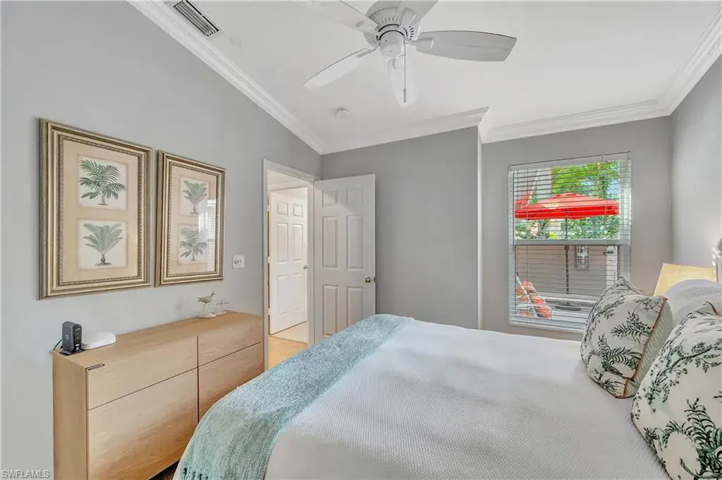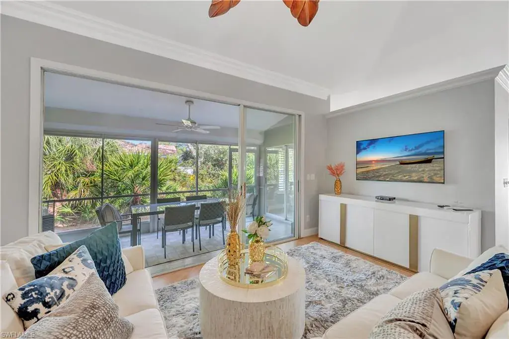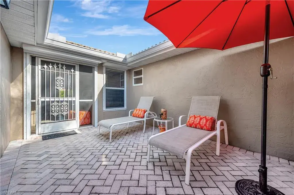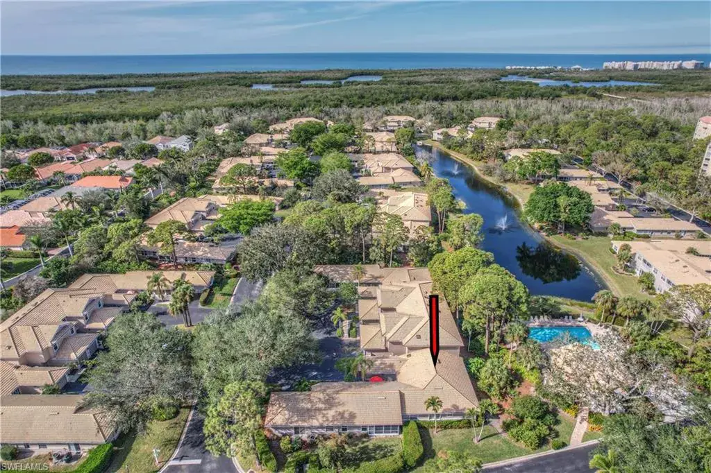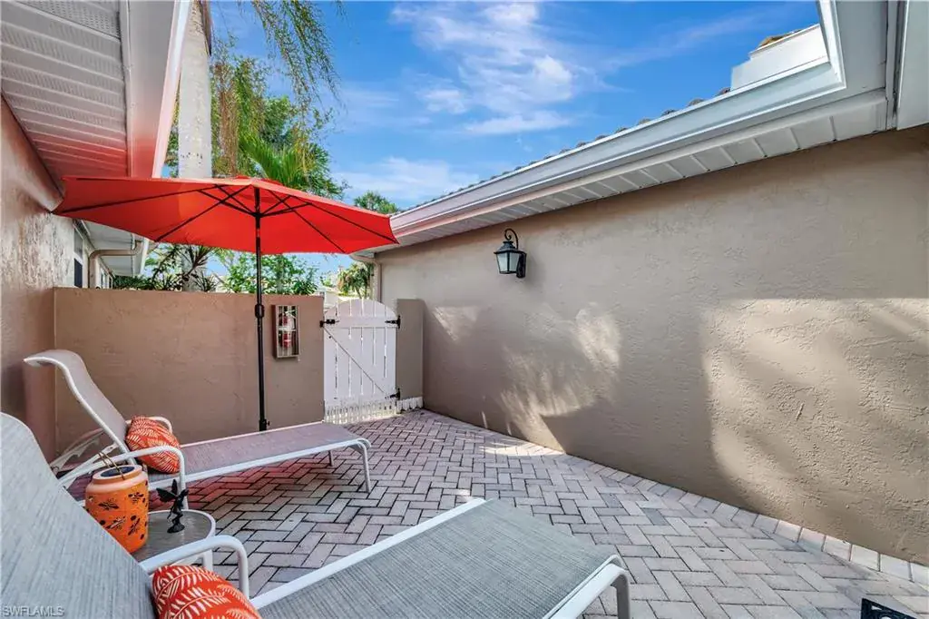 Welcome to this RARELY available attached Villa which lives like a single family home with a private garage and entry courtyard plus no one above or below you. Nestled between multi million dollar communities, Emerald Bay is an amazing value west of US 41 and is also one of the few residences close to the beach which is NOT in a flood zone. This beautifully appointed, move in ready unit has been totally redecorated with all new paint inside and out, gorgeous crown molding and all new furnishings. Vaulted ceilings provide a bright, airy feeling and multiple sliders in the living room, kitchen and master bedroom open to a spacious screened lanai, perfect for entertaining. The front patio provides yet another outdoor space to sunbath, lounge, read or visit with neighbors and friends. The spacious master bedroom and bathroom feature a separate soaking tub and shower plus huge walk-in closet with custom, built in shelving. A queen Murphy Bed provides extra sleeping space for guests in the 3rd bedroom which also doubles as an office or study. The generous kitchen boasts newer stainless steel appliances plus an eat-in breakfast bar and plenty of cabinet space. Enjoy carefree living with electric and manual shutters plus plantation shutters throughout. Emerald Bay is an amenity rich community with 2 pools, hot tub, tennis, pickleball plus an active social calendar in the fully equipped club house. This friendly neighborhood is within biking distance to the white sandy beaches of Delnor-Wiggins State Park, Vanderbilt Beach and Bonita Beach. Its N. Naples location is also minutes to Mercato’s vibrant nightlife plus elegant shopping and restaurants and less than 30 minutes to the SWFL Airport. Where paradise meets convenience!