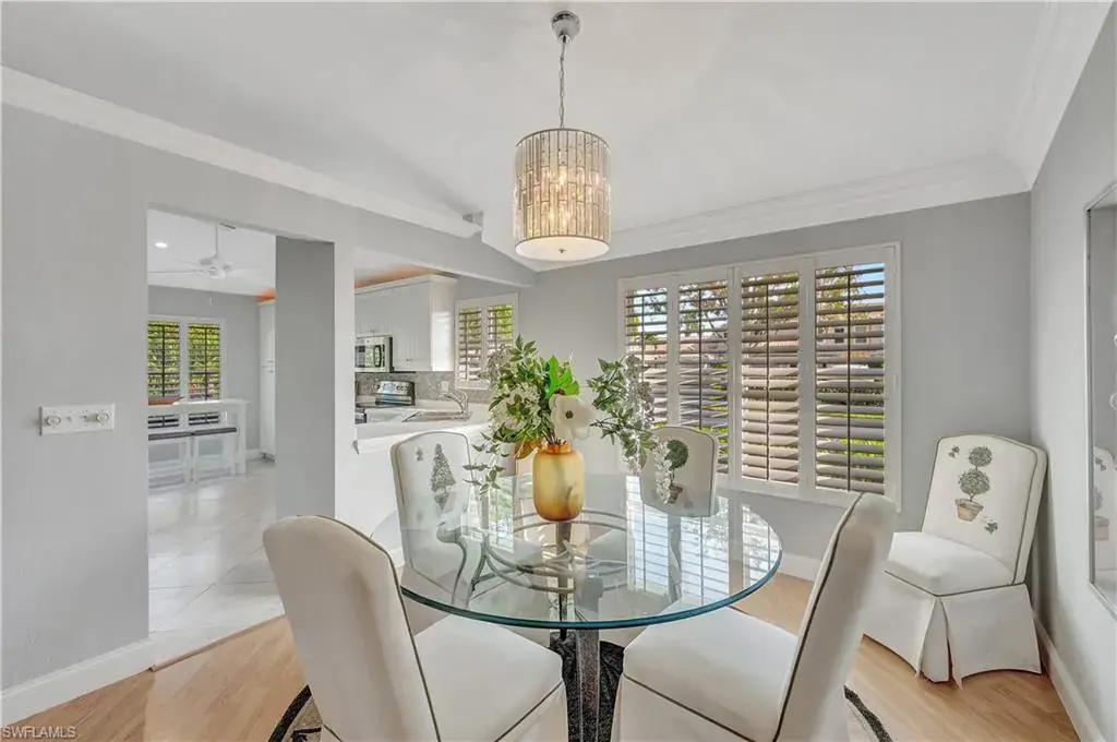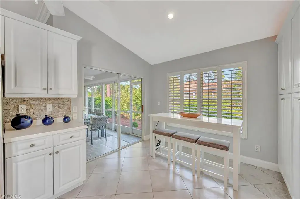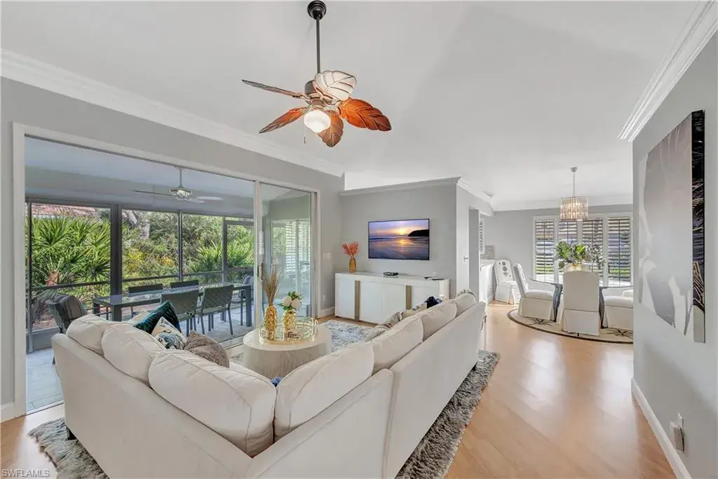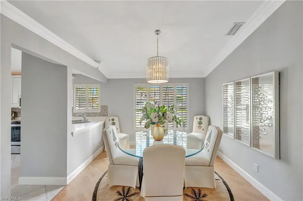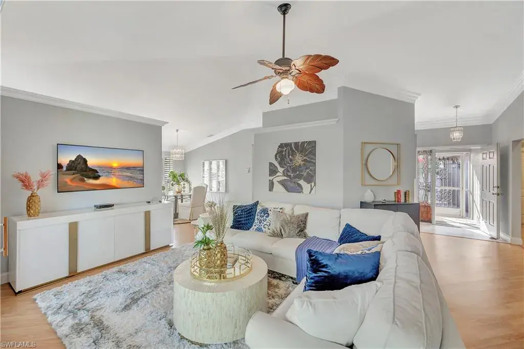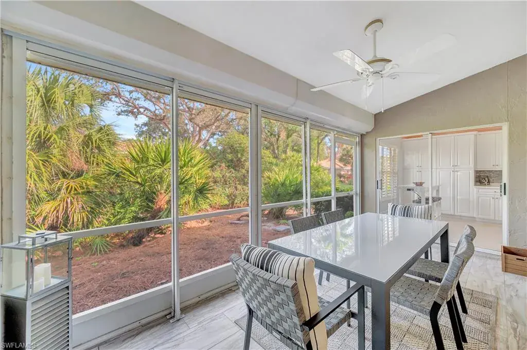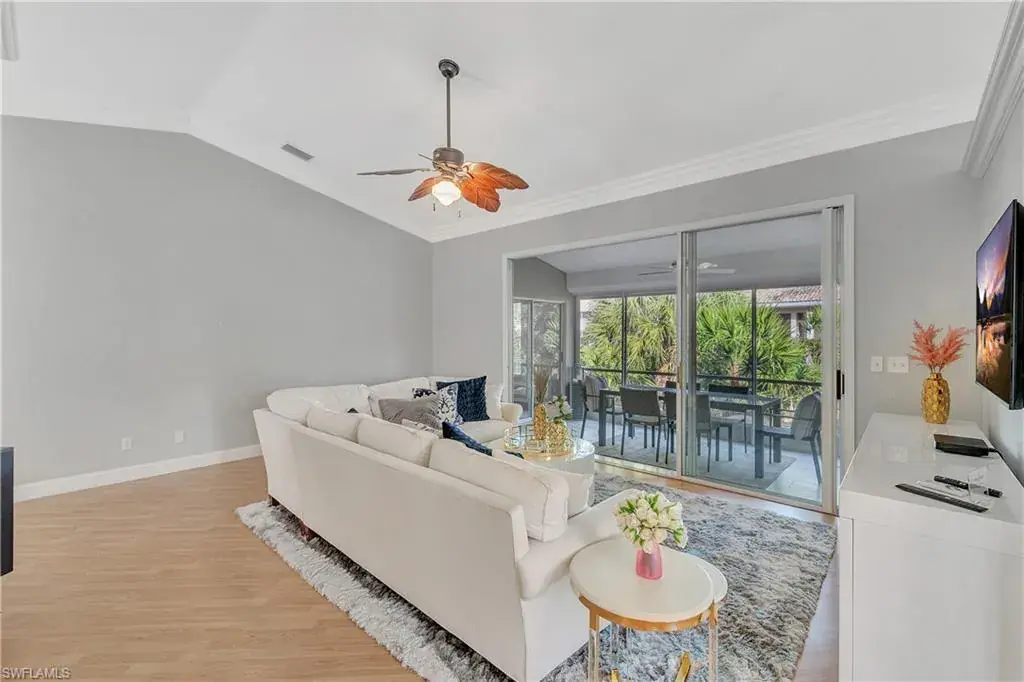 Welcome to this RARELY available attached Villa which lives like a single family home with a private garage and entry courtyard plus no one above or below you. Nestled between multi million dollar communities, Emerald Bay is an amazing value west of US 41 and is also one of the few residences close to the beach which is NOT in a flood zone. This beautifully appointed, move in ready unit has been totally redecorated with all new paint inside and out, gorgeous crown molding and all new furnishings. Vaulted ceilings provide a bright, airy feeling and multiple sliders in the living room, kitchen and master bedroom open to a spacious screened lanai, perfect for entertaining. The front patio provides yet another outdoor space to sunbath, lounge, read or visit with neighbors and friends. The spacious master bedroom and bathroom feature a separate soaking tub and shower plus huge walk-in closet with custom, built in shelving. A queen Murphy Bed provides extra sleeping space for guests in the 3rd bedroom which also doubles as an office or study. The generous kitchen boasts newer stainless steel appliances plus an eat-in breakfast bar and plenty of cabinet space. Enjoy carefree living with electric and manual shutters plus plantation shutters throughout. Emerald Bay is an amenity rich community with 2 pools, hot tub, tennis, pickleball plus an active social calendar in the fully equipped club house. This friendly neighborhood is within biking distance to the white sandy beaches of Delnor-Wiggins State Park, Vanderbilt Beach and Bonita Beach. Its N. Naples location is also minutes to Mercato’s vibrant nightlife plus elegant shopping and restaurants and less than 30 minutes to the SWFL Airport. Where paradise meets convenience!