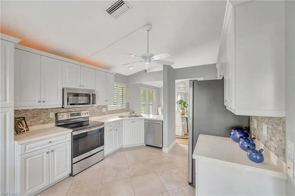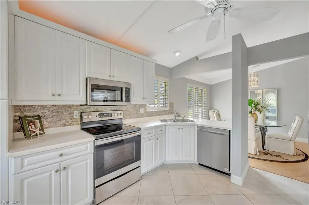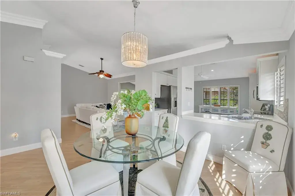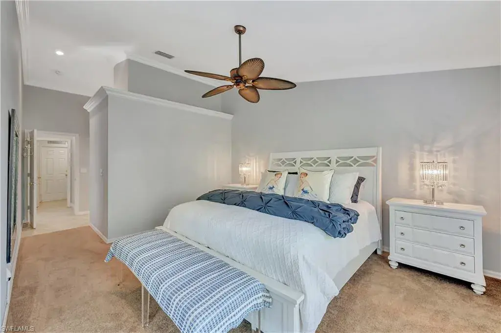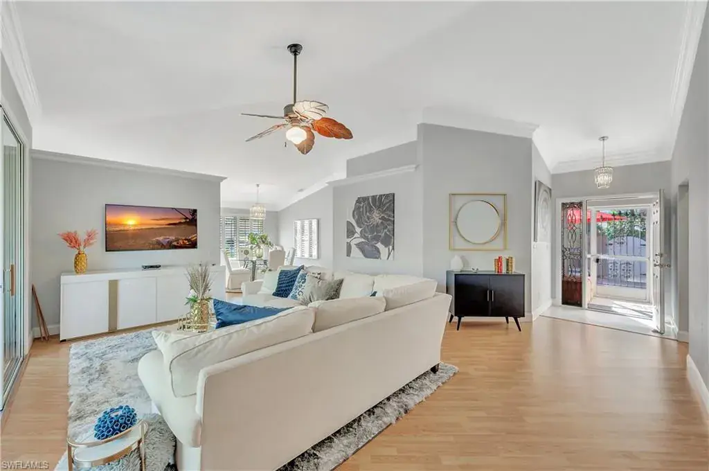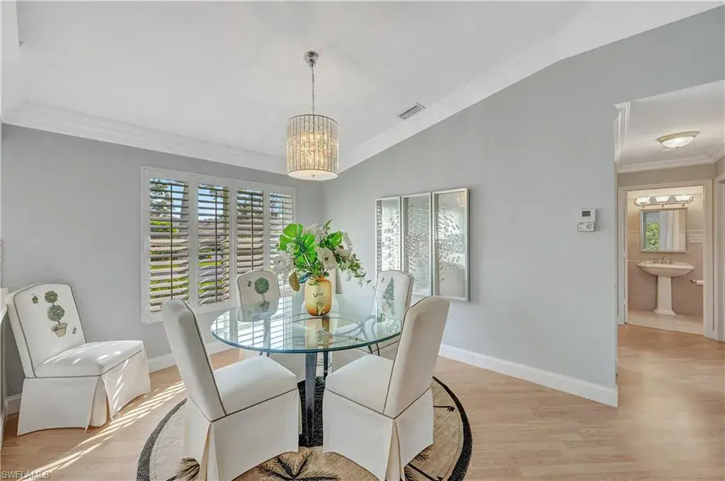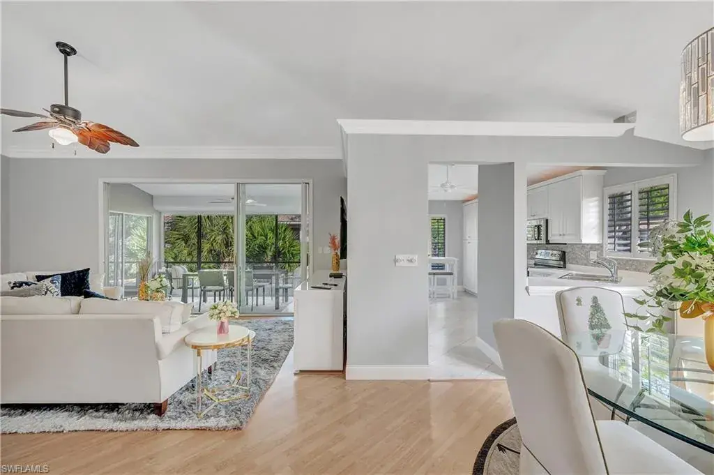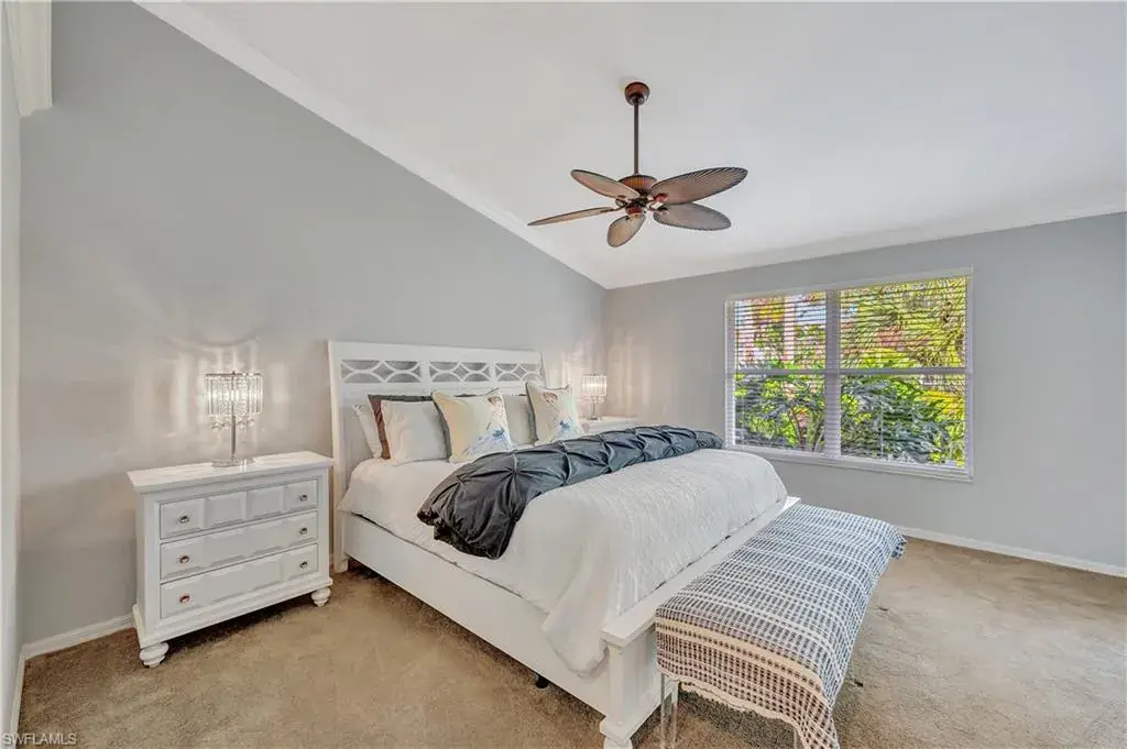 Welcome to this RARELY available attached Villa which lives like a single family home with a private garage and entry courtyard plus no one above or below you. Nestled between multi million dollar communities, Emerald Bay is an amazing value west of US 41 and is also one of the few residences close to the beach which is NOT in a flood zone. This beautifully appointed, move in ready unit has been totally redecorated with all new paint inside and out, gorgeous crown molding and all new furnishings. Vaulted ceilings provide a bright, airy feeling and multiple sliders in the living room, kitchen and master bedroom open to a spacious screened lanai, perfect for entertaining. The front patio provides yet another outdoor space to sunbath, lounge, read or visit with neighbors and friends. The spacious master bedroom and bathroom feature a separate soaking tub and shower plus huge walk-in closet with custom, built in shelving. A queen Murphy Bed provides extra sleeping space for guests in the 3rd bedroom which also doubles as an office or study. The generous kitchen boasts newer stainless steel appliances plus an eat-in breakfast bar and plenty of cabinet space. Enjoy carefree living with electric and manual shutters plus plantation shutters throughout. Emerald Bay is an amenity rich community with 2 pools, hot tub, tennis, pickleball plus an active social calendar in the fully equipped club house. This friendly neighborhood is within biking distance to the white sandy beaches of Delnor-Wiggins State Park, Vanderbilt Beach and Bonita Beach. Its N. Naples location is also minutes to Mercato’s vibrant nightlife plus elegant shopping and restaurants and less than 30 minutes to the SWFL Airport. Where paradise meets convenience!