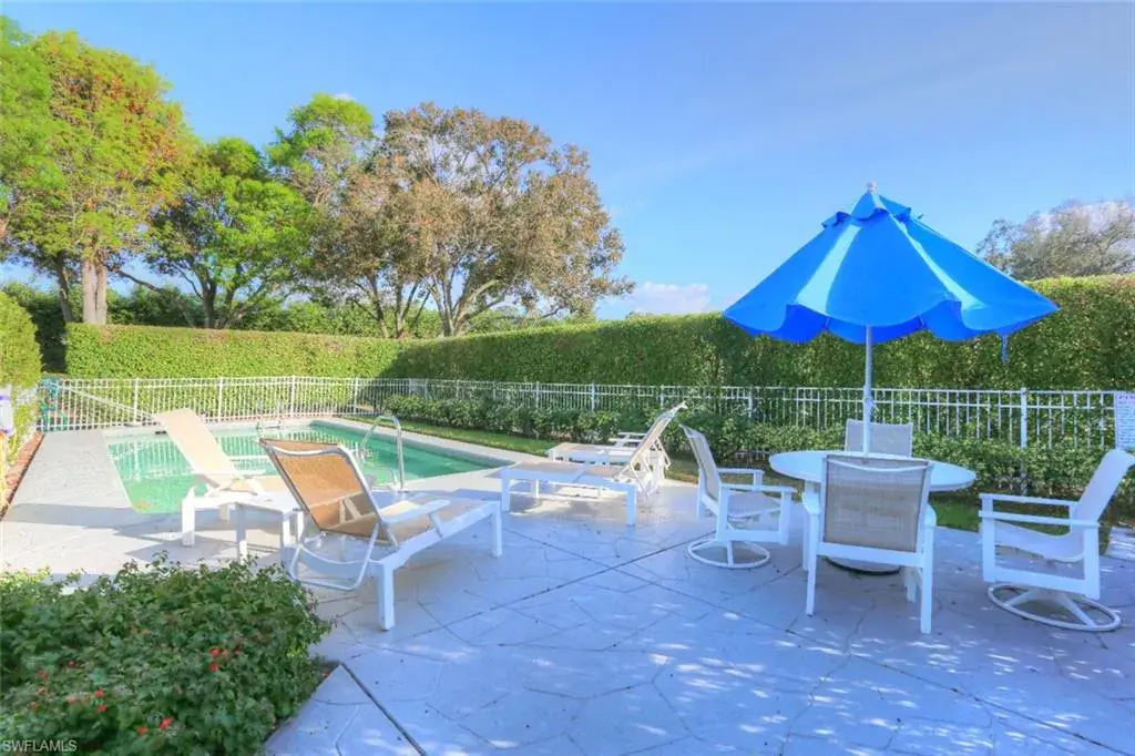 Beautiful long views of golf and tee box from your screened lanai in this 2nd floor condo. Very peaceful and relaxing watching the golfers or the sunsets. Enjoy a swim in your private pool shared among just 8 units in The Villages at Wyndemere. These condos seldom come on the market. New paint, stainless appliances and luxury vinyl plank flooring throughout this 2 bed/2 bath plus den/office home. Room to add 3rd bedroom off kitchen if desired. Comes with 1 car garage and plenty of parking for guests. Wyndemere offers numerous amenities including 27 holes of championship golf, active tennis, pickleball and bocce leagues, and croquet. Resort style pool, amazing fitness center and spa, casual dining and so much more. Active social calendar and friendly membership.