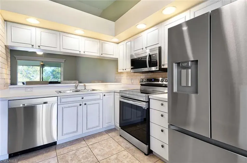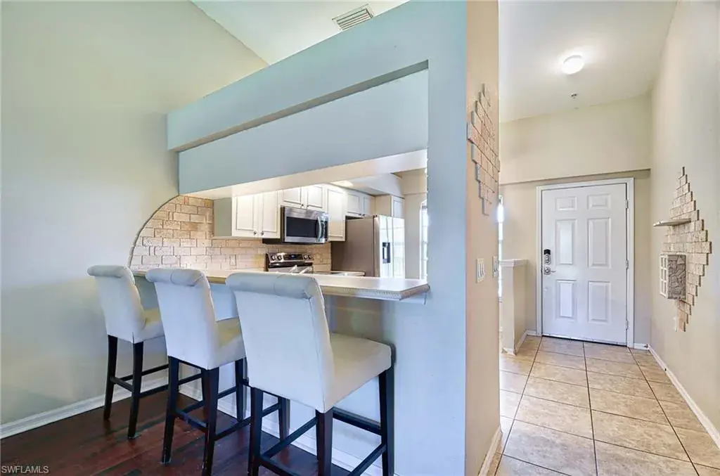 “GULF ACCESS COMMUNITY” Beautiful condo! This second floor unit has vaulted ceilings, updated flooring & appliances. Rarely used by current owner. Furniture is negotiable.This unit has recent HVAC, flooring, fans, appliances etc. Just steps away from your private 1 car garage.This is a great investment property or perfect to get away from those COLD winter months. ENJOY this peaceful, well maintained community with beautiful natural surroundings. Neighbors love this area for it’s abundant wildlife and friendly atmosphere, making it a popular choice for nature lovers. Port of the Islands is one of the BEST kept secrets in Naples! Many options if you love boating and/or nature! Great Marina to rent a boat, charter a boat trip for fishing and sightseeing. Boat slips and boat storage are also available. The water and beautiful warm sunsets are just a few steps away. Great fishing right from the seawall. Island shop, full service Marina plus Hotel with restaurant and bar adjacent to this condo.