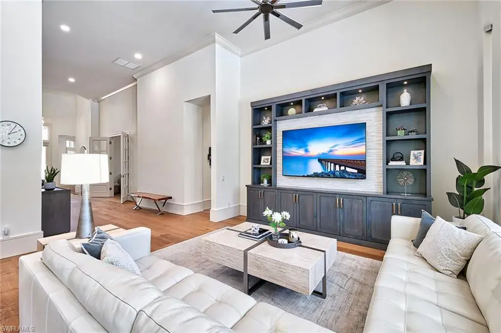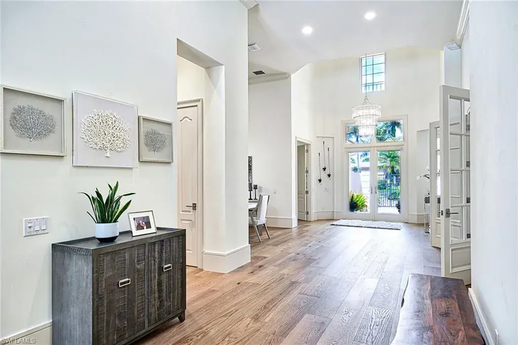 Incredible opportunity to own a fabulous remodeled villa in Mediterra. Four-bedroom, 3.5-bath and three-car garage residence. This updated home is in a park-like private setting with desirable southern exposure. The remodeled gourmet-inspired galley kitchen features white cabinetry, new countertops and upgraded stainless steel appliances with a gas cooktop for the chef. Freshly painted interior, updated lighting and new white oak flooring throughout. Designed for entertaining friends and family, this villa offers an enclosed media room and one of the largest outdoor lanai areas along with a new shell stone deck, new tile pool and spa and screen cage. Architectural and design elements include the wide-center hallway, volume ceilings, an open floor plan, crown moldings and quartz countertops. Other major improvements include a newer roof and air-conditioning units. Enjoy the low-maintenance lifestyle of a villa and experience the many amenities of this award-winning, resort-style community. Mediterra offers two Tom Fazio-designed golf courses, a private beach club, tennis, a new fitness center, bocce, pickleball, fine and casual dining, and a socially active lifestyle.
