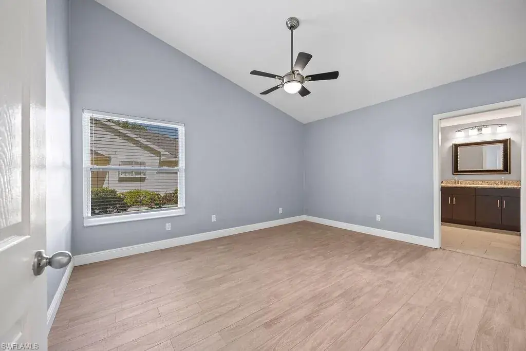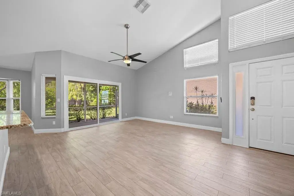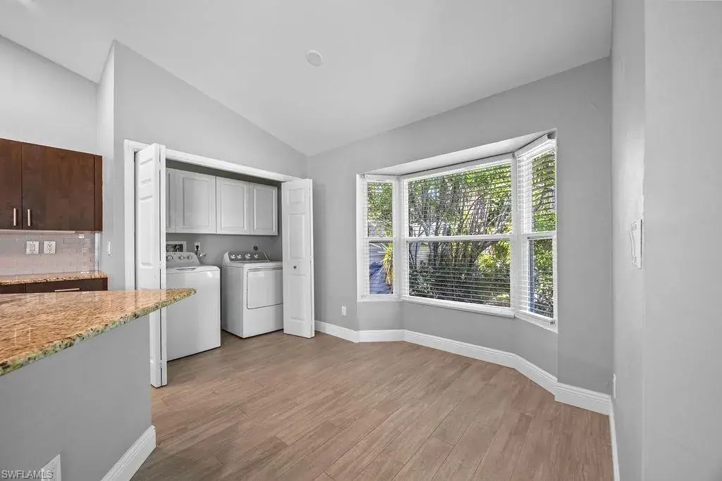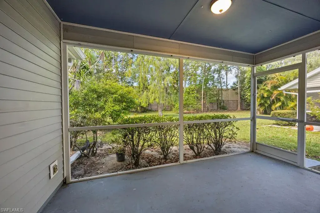 SELLER SAYS LET’S SEE AN OFFER! Tucked away in the heart of Naples, this beautifully cared-for 2-bedroom, 2-bath villa checks all the boxes for comfort, updates, and location. Inside, you’ll find an open, airy floor plan with vaulted ceilings, tons of natural light, and wood-look tile throughout—no carpet here!