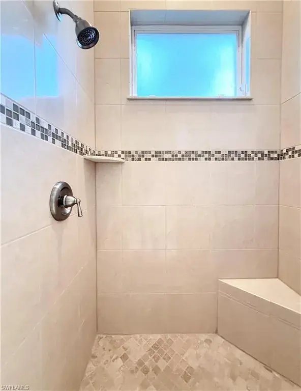 main living room. Double doors enclose a den which is located just off main living area and can double as a home office or third bedroom when needed. Spacious primary suite offers a large walk in closet, updated dual sink vanity with granite counter tops, custom tile walk in shower, separate tub and water closet for privacy. Guest bedroom is split from primary bedroom for added privacy. Updated guest bath has custom tile walk in shower with glass doors. Current homeowner enlarge heated/cooled living space by enclosing the covered lanai. This added flex room is