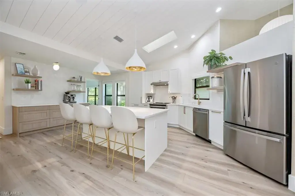 This centrally located, fabulous 3+den residence has been incredibly transformed from floor to ceiling with a stunning selection of finishes and materials. Blending style, practicality, and a touch of playful creativity, this home showcases thoughtful design choices throughout. All major appliances, along with the water heater and AC, have been replaced. New impact windows and doors create a protective core. Other desirable benefits include dramatic floor-to-near-ceiling windows and glass doors, which provide a full view of the backyard and maximize the natural light that floods into the living space. These are pre-wired for future automatic window and door coverings if you choose. Skylights also provide an abundance of natural light throughout the property. Lastly, the property is located in X Flood Zone, providing an added comfort against unwanted exposure. The quality of these improvements was initially intended for the current owner. The new owner will reap the rewards of this purposefully curated home, which anticipates the expectations of the world’s most selective clientele.