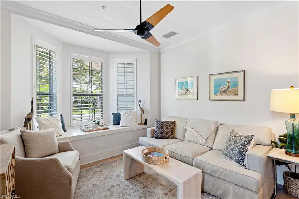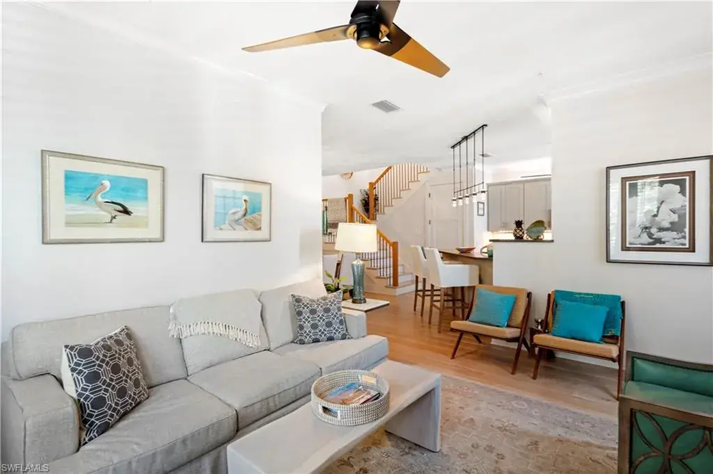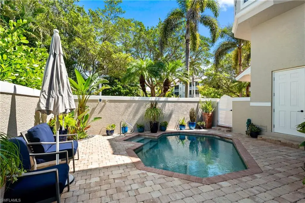 Prime location just blocks from the beach and 5th Avenue South! This 2BR+Den/2.5BA villa offers 1,764 SF of beautifully appointed living space with rich oak flooring, plantation shutters, and an open floor plan that flows seamlessly to a private pool patio—perfect for outdoor relaxation and entertaining.