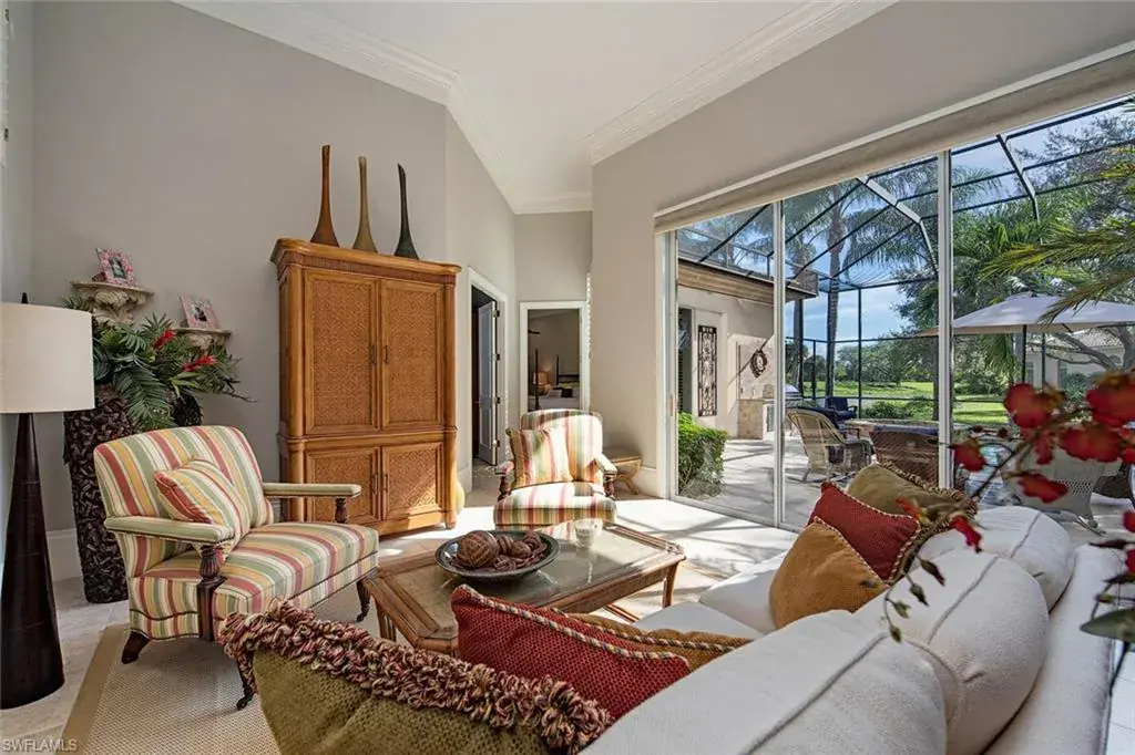 NEWLY PAINTED EXTERIOR! Ideally located just a short walk to the award winning amenities of the Mediterra golf and sports clubs. The rare green space next to this courtyard home allows it to have beautiful lake and golf course views from numerous areas of the home. The spacious screened in lanai features a pool, spa, and summer kitchen overlooking the long lake and golf course views. It has a generator and AC unit was replaced in 2021. Multiple levels of membership are available at the Mediterra. Golf & Beach Club. 14.6 MILLION IN PRIVATE BEACH AND SPORTS CLUB UPDATES CURRENTLY UNDERWAY!! Buyer to assume CDD.