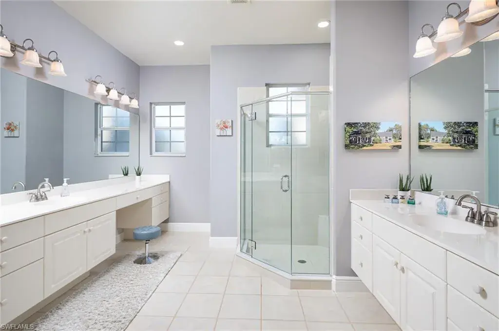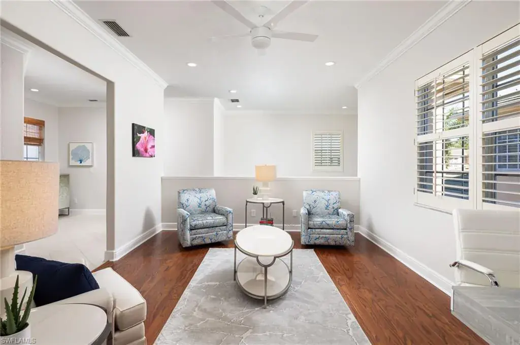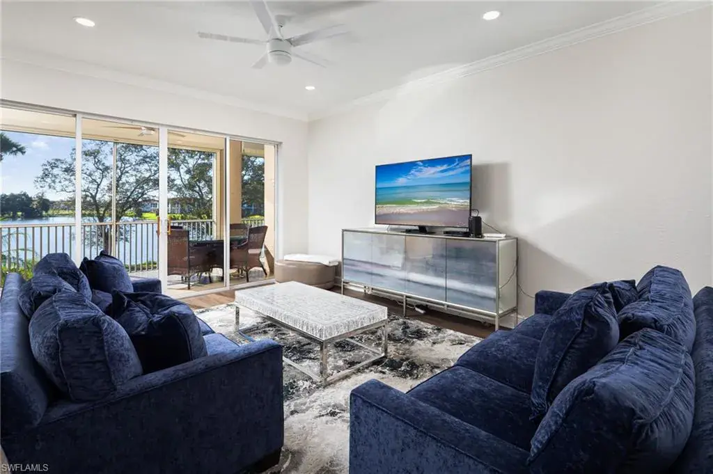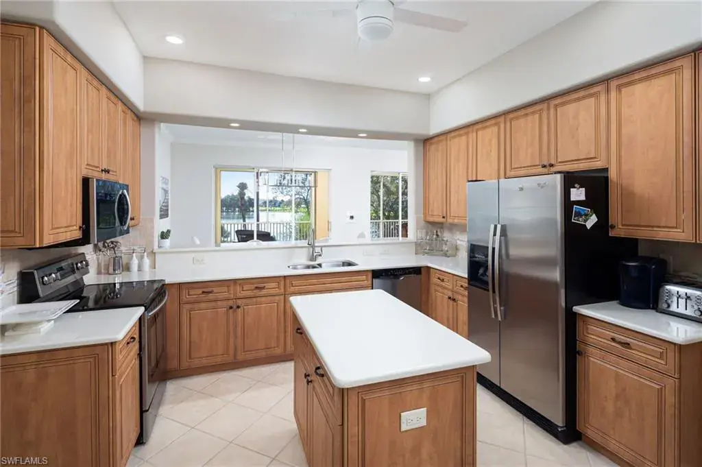 Wake up to wide lake and golf course views, highlighted by sparkling fountains, and unwind each evening from the comfort of your expansive screened lanai — the perfect setting for relaxing or entertaining. With over 2,400 sq. ft., this 3-bedroom plus den, 3-bath home blends spacious living with thoughtful updates and a 2-car garage. Inside, enjoy the peace of mind that comes with a newer A/C system, updated electrical with LED lighting, and electric roll-down hurricane shutters for storm protection at the push of a button. Fresh interior paint, new ceiling fans, custom closets, and crown moldings enhance every room. The home features a blend of hardwood, luxury vinyl in main living areas, and new carpet in select bedrooms — creating both style and comfort. An epoxy, easy-to-maintain garage floor completes the updates. Each bedroom offers its own private bath, and the laundry room features cabinets and a sink for everyday convenience. Life in Vintage Reserve includes access to its own pool and clubhouse, while optional memberships at The Vineyards Country Club provide additional amenities such as world-class golf, dining, fitness, spa services, and a vibrant social calendar. Opportunities to own in Vintage Reserve are rare — and this home’s combination of spacious interiors, private bedroom suites, and captivating views with fountains makes it truly special.