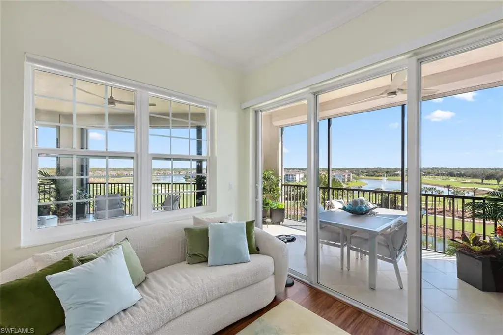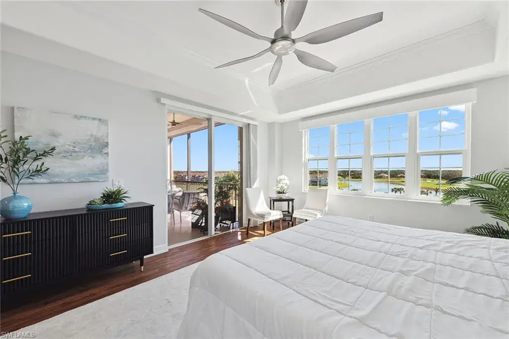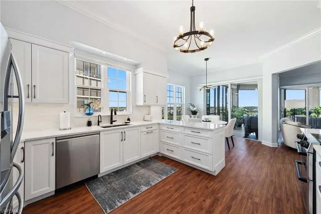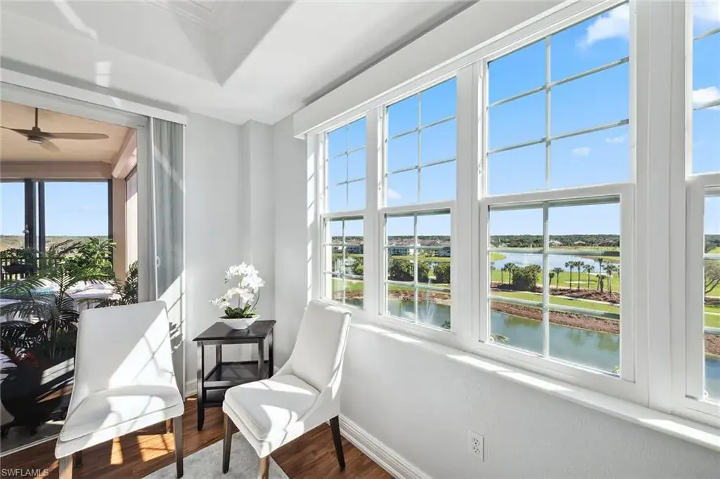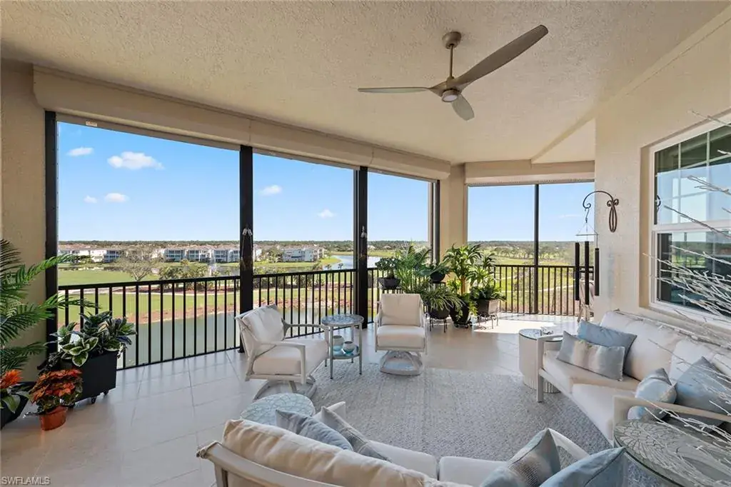 Welcome to this completely remodeled, move-in ready, property in the gated neighborhood of Vista Pointe at The Vineyards. From spectacular sunrises to breathtaking sunsets, you can see for miles from this 5th floor end unit’s wrap-around lanai, which provides plenty of space to relax with family and friends. Five sets of sliders provide over 3000 sq ft. of seamless “inside-outside” living and dining spaces. Inside, every possible upgrade has been added. New flooring, hurricane-rated energy efficient windows, and a totally new kitchen and master bath are just some of the highlights of this top to bottom renovation. There are two deeded parking spaces (one inside the garage and one in front of the building). Vista Pointe has an on-site property manager, a newly remodeled clubhouse, and a resort style community pool, all located just steps away from this unit. The Vineyards Country Club offers a couple of membership plans. Membership is optional. Come see for yourself what Naples living is all about.