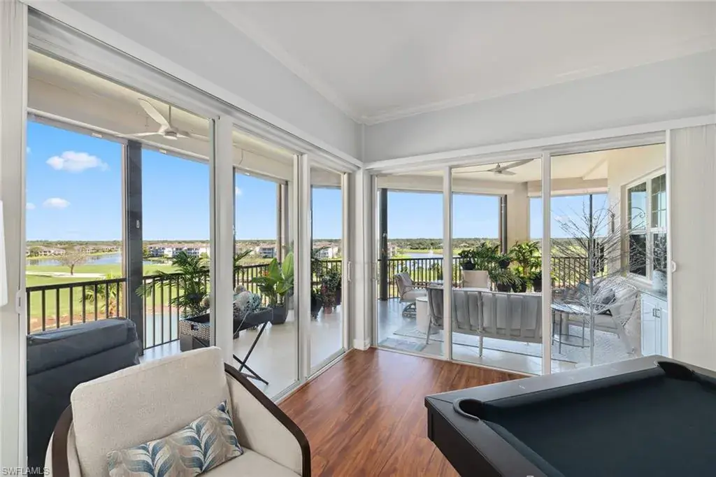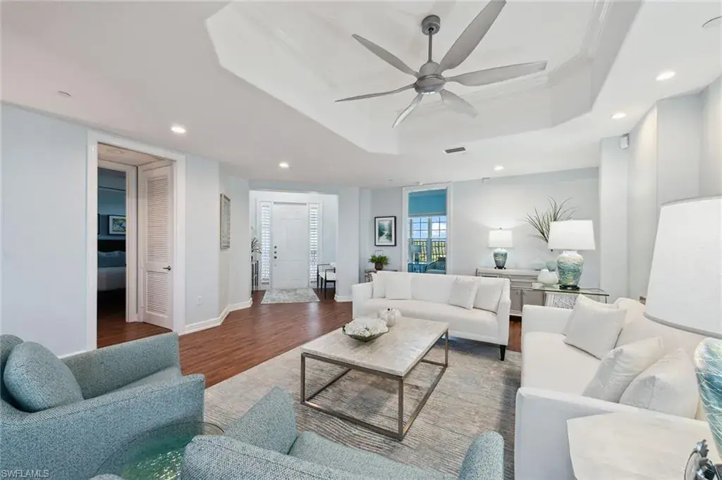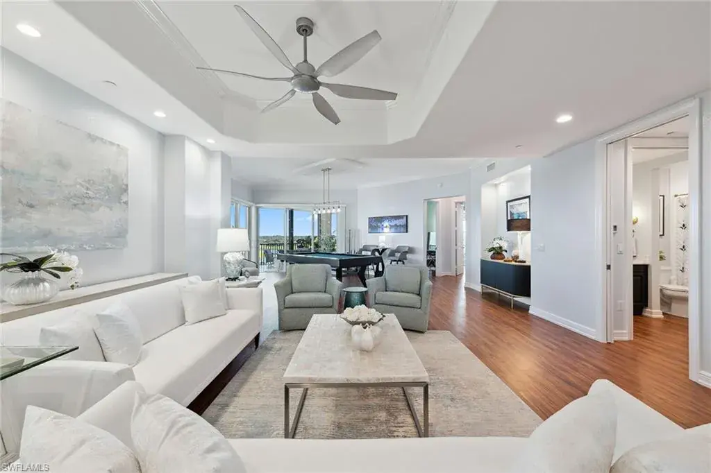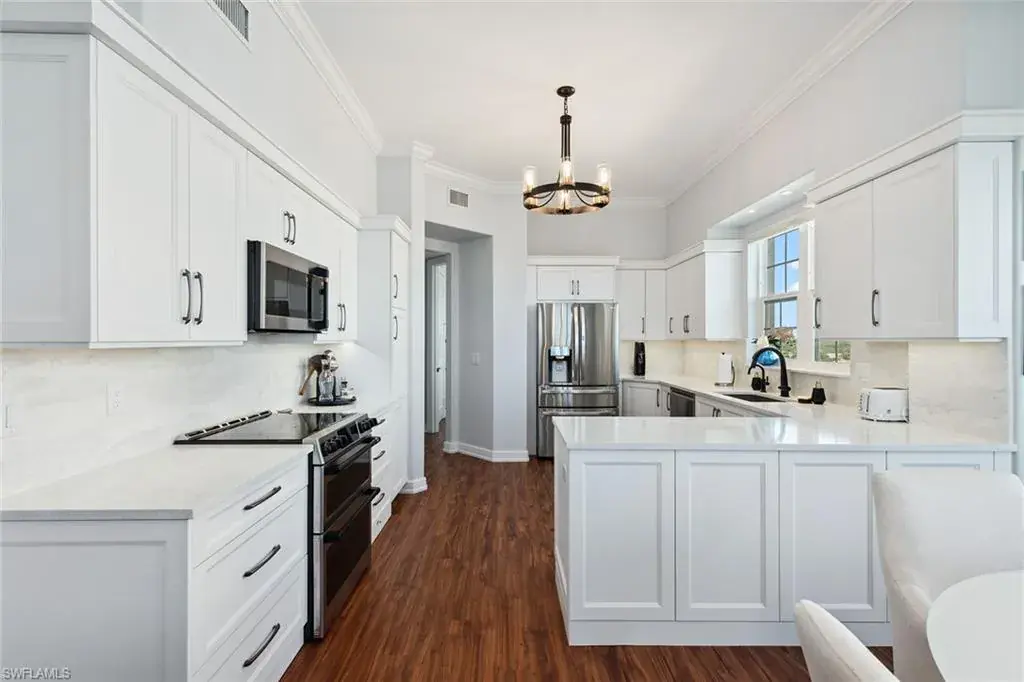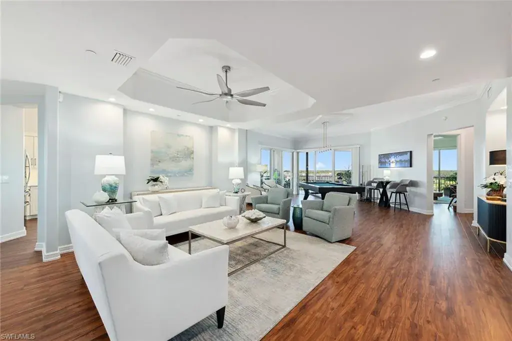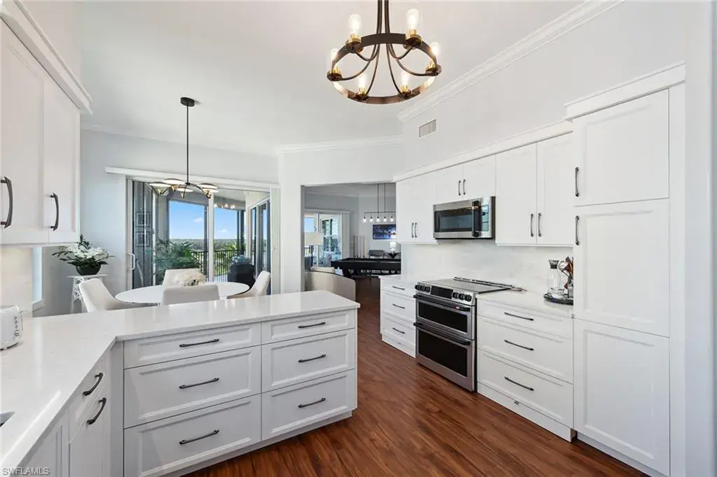 Welcome to this completely remodeled, move-in ready, property in the gated neighborhood of Vista Pointe at The Vineyards. From spectacular sunrises to breathtaking sunsets, you can see for miles from this 5th floor end unit’s wrap-around lanai, which provides plenty of space to relax with family and friends. Five sets of sliders provide over 3000 sq ft. of seamless “inside-outside” living and dining spaces. Inside, every possible upgrade has been added. New flooring, hurricane-rated energy efficient windows, and a totally new kitchen and master bath are just some of the highlights of this top to bottom renovation. There are two deeded parking spaces (one inside the garage and one in front of the building). Vista Pointe has an on-site property manager, a newly remodeled clubhouse, and a resort style community pool, all located just steps away from this unit. The Vineyards Country Club offers a couple of membership plans. Membership is optional. Come see for yourself what Naples living is all about.