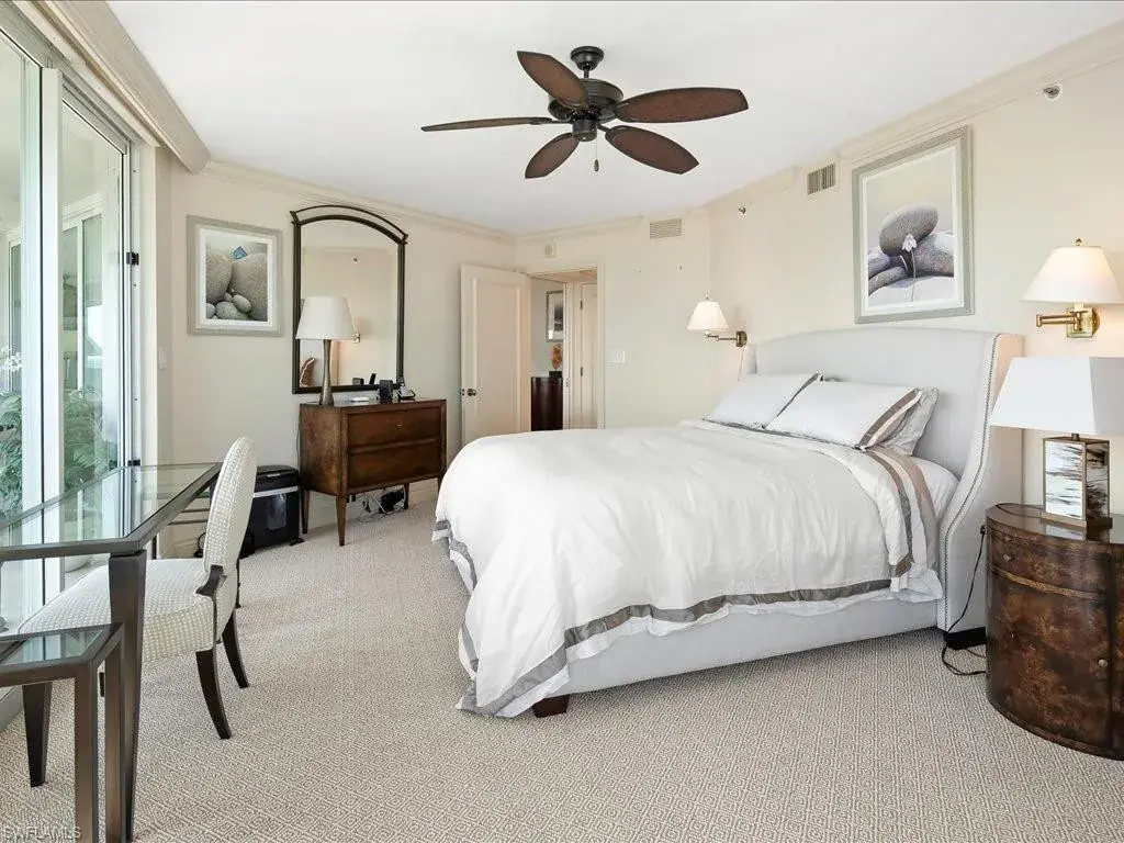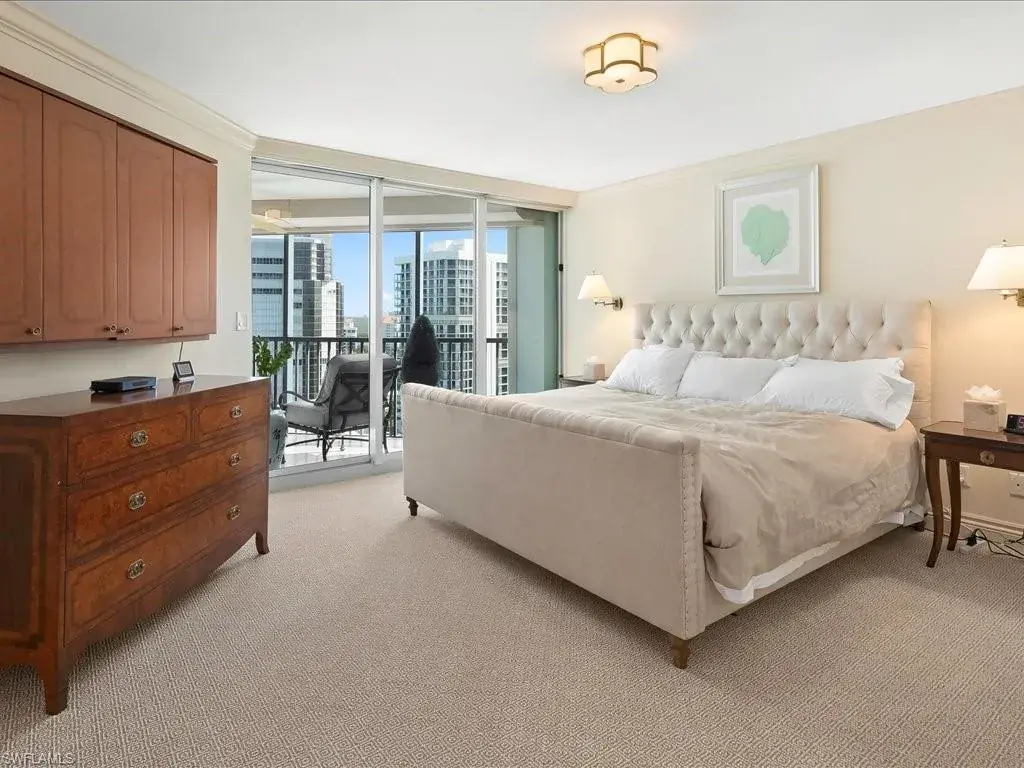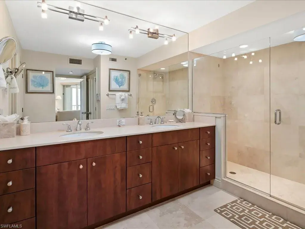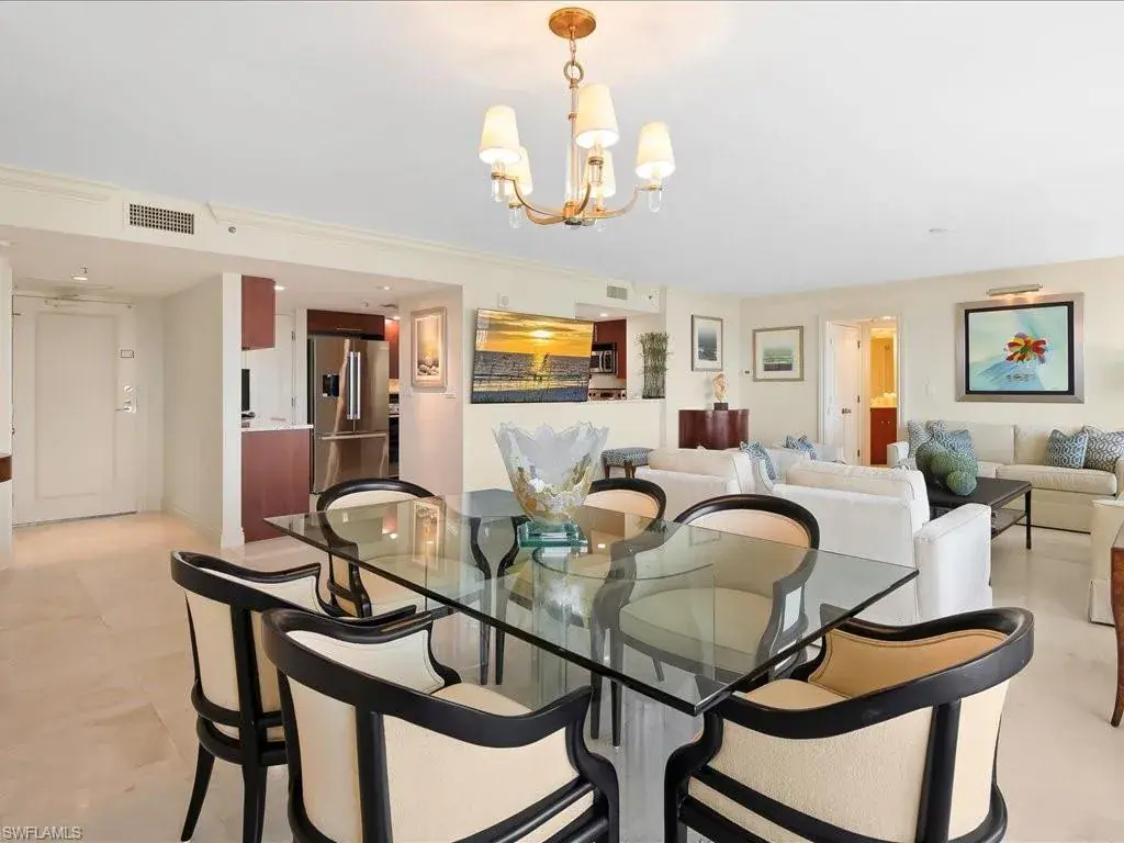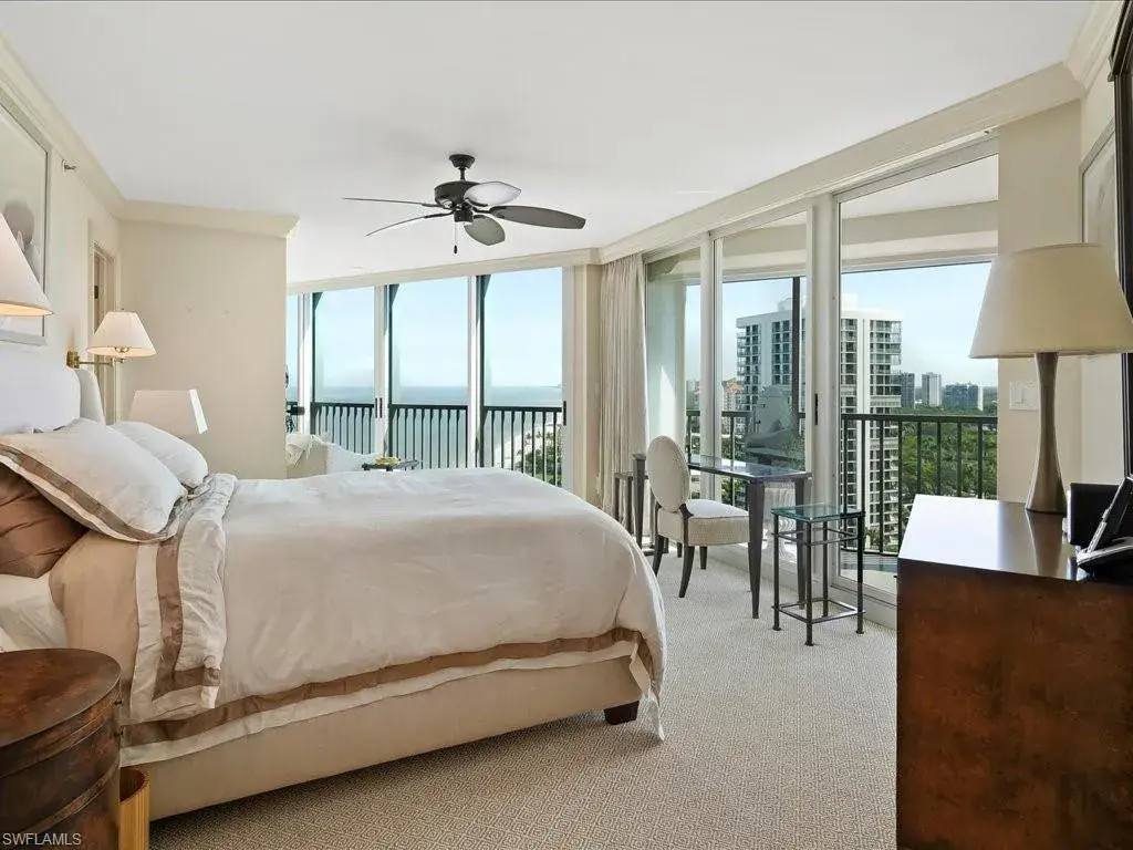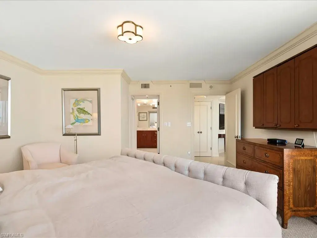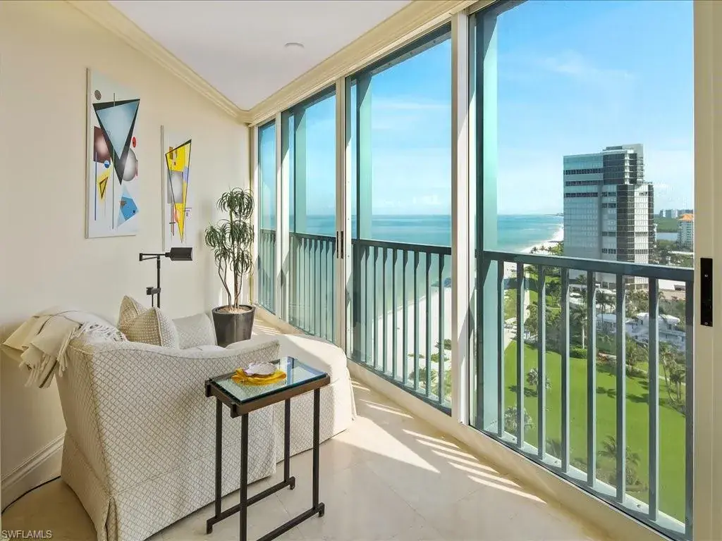 Introducing sky residence 1605 at Vistas At Park Shore. You are right on the sand with the sights and sounds of the Gulf directly below in this back-to-the-concrete renovation with walkouts from every room. Enjoy huge water views of both the Gulf and Bays, and the rich ambiance of sparkling city lights along the Naples’ shoreline. Thoughtful, timeless renovation including key walls moved, solid core doors, and one lanai enclosed – creating a Sitting Area with warm vibe, adding additional under-air living area. Read your favorite book while sipping your morning coffee above the sand in this beach-front “sun room”, or on the main 42′ lanai… your biggest decision of the day! An abundance of thoughtful attention to detail in all living areas, including a chef’s kitchen with Gulf views in this elegant renovation. Residence can be purchased with the tasteful, beautiful furnishings at buyer’s choice. Vistas is a dog-friendly, financially sound and fiscally responsible building, having completed the SIRS requirement with no assessments to the owners! Enjoy the many amenities, including private beach walk beside tranquil parks, outstanding renovated pool area, fitness gym/spa, and elegant common spots for Vistas’ residents including gathering and social areas off the main lobby. Venetian Village is a short stroll from your new residence with fine dining, shopping, and boat docks.