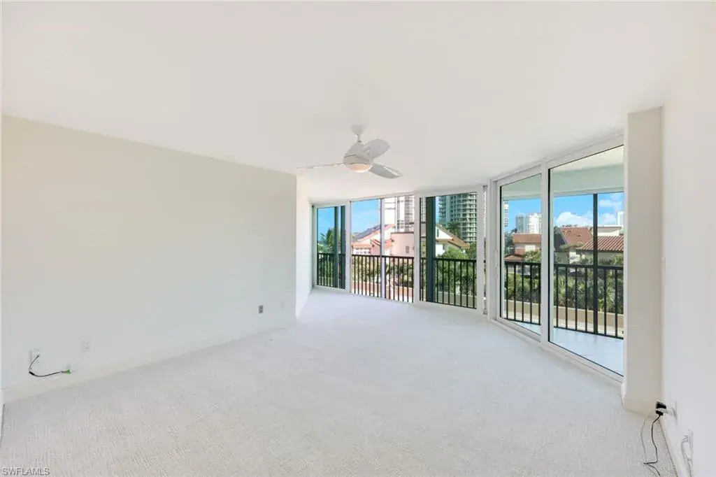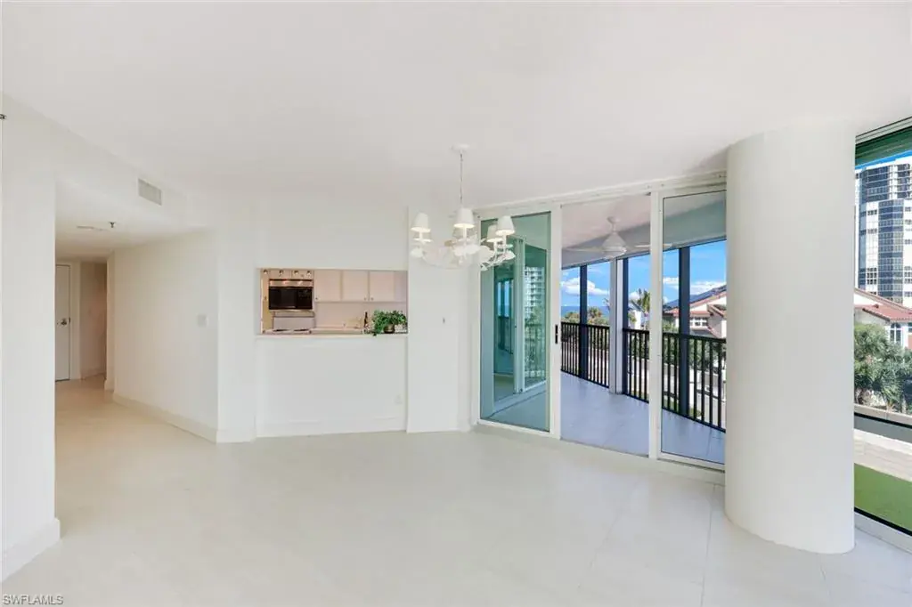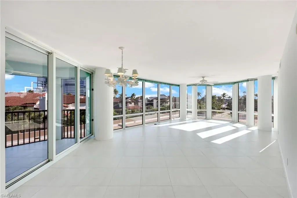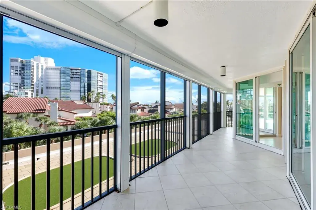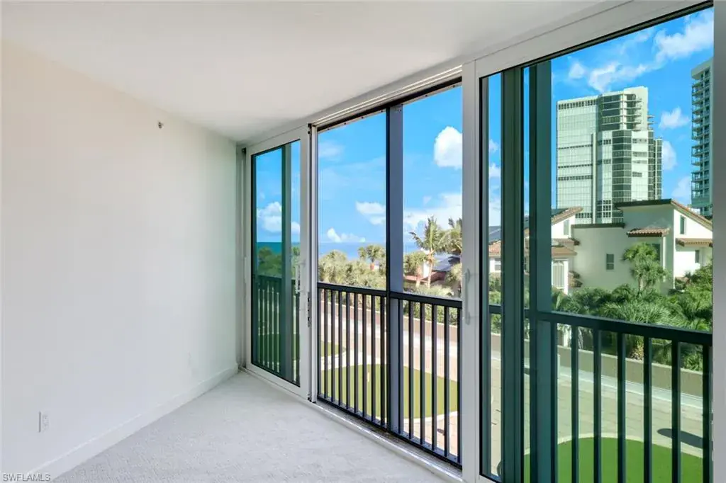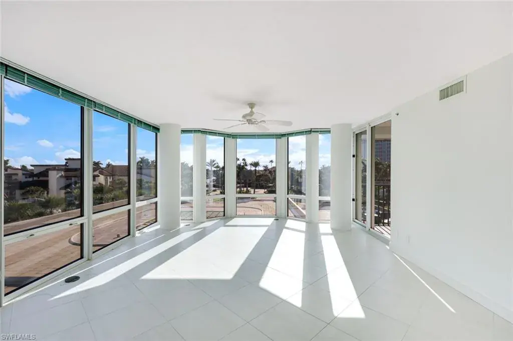 Light-filled by floor to ceiling windows, this spacious residence in the beachfront Vistas at Park Shore features two large ensuite bedrooms plus den and three full baths. The generous den offers flexible use and can easily serve as a third bedroom. A centrally located kitchen features abundant storage, a breakfast nook opening to an expansive 35 ft. lanai with Gulf views and a convenient pass- through to the large great room with bay view, offering ample living and dining spaces for entertaining family and friends or everyday living. Enjoy the refreshing gulf breezes from the lanai accessible from the kitchen, primary suite, den, and great room. A second screened terrace adjoins the front bayside ensuite bedroom providing additional privacy for guests. The primary bedroom wing includes two walk- in closets, and a beautifully updated bath with a wall of custom built- in cabinets providing exceptional storage. Designed for the Naples lifestyle, the Vistas offers a host of amenities including a lovely beachfront pool, state of the art fitness center, community room with catering kitchen, four high speed elevators, and 24 hour gated security with doorman service. Ideally located just a short stroll from the restaurants and shops at Venetian Village with boat slips available for sale and lease across the boulevard (upon availability). Recently painted and featuring new carpet in all three bedrooms, this gulf side residence is ready for your personal touches.