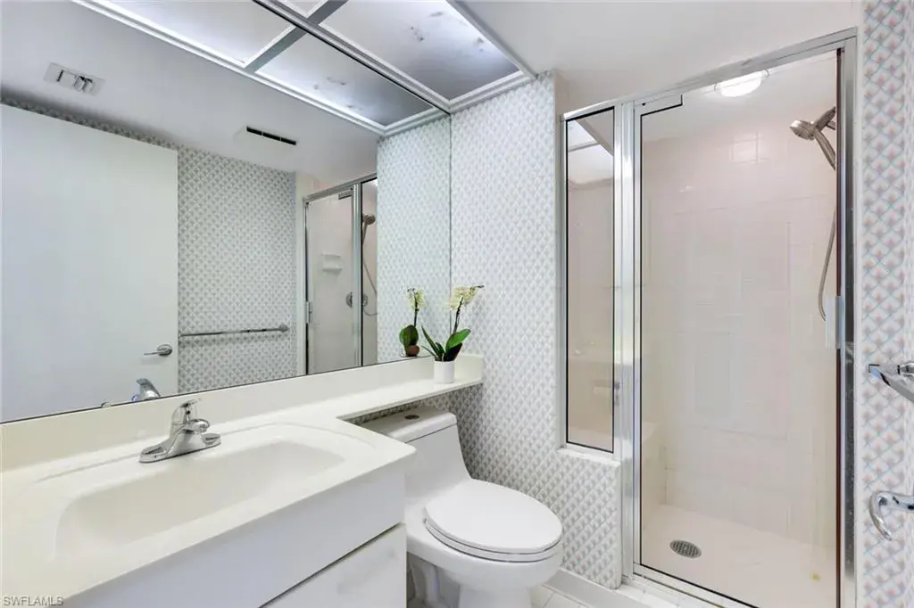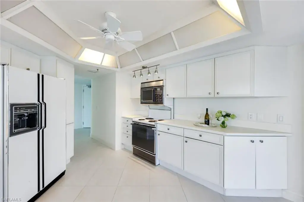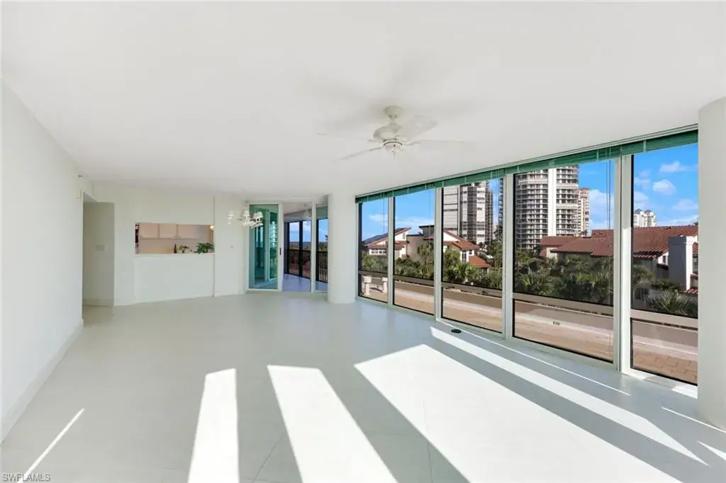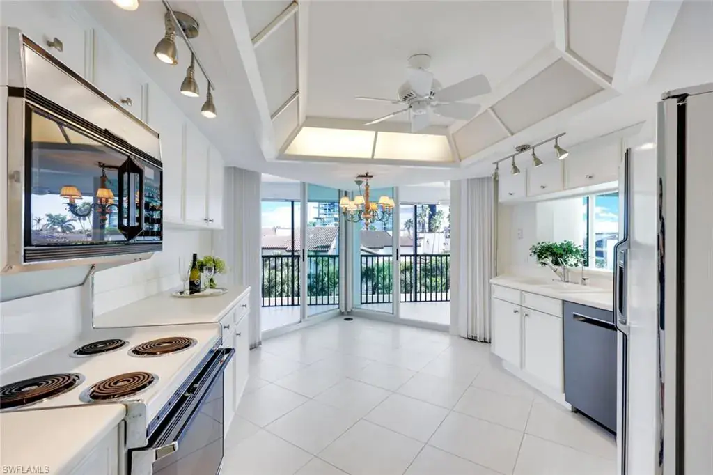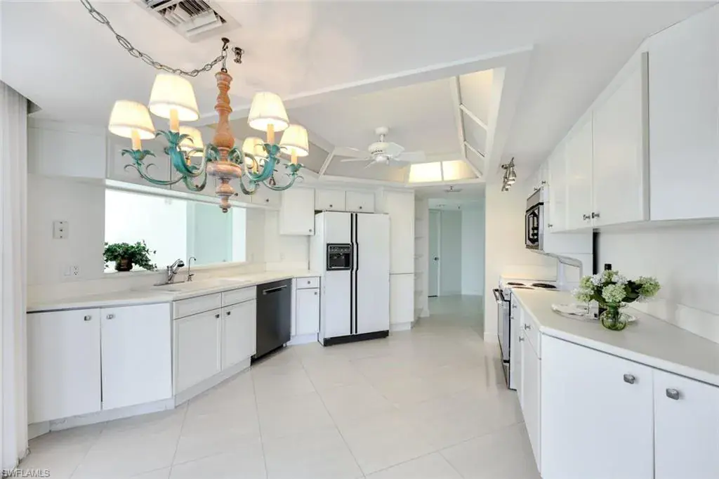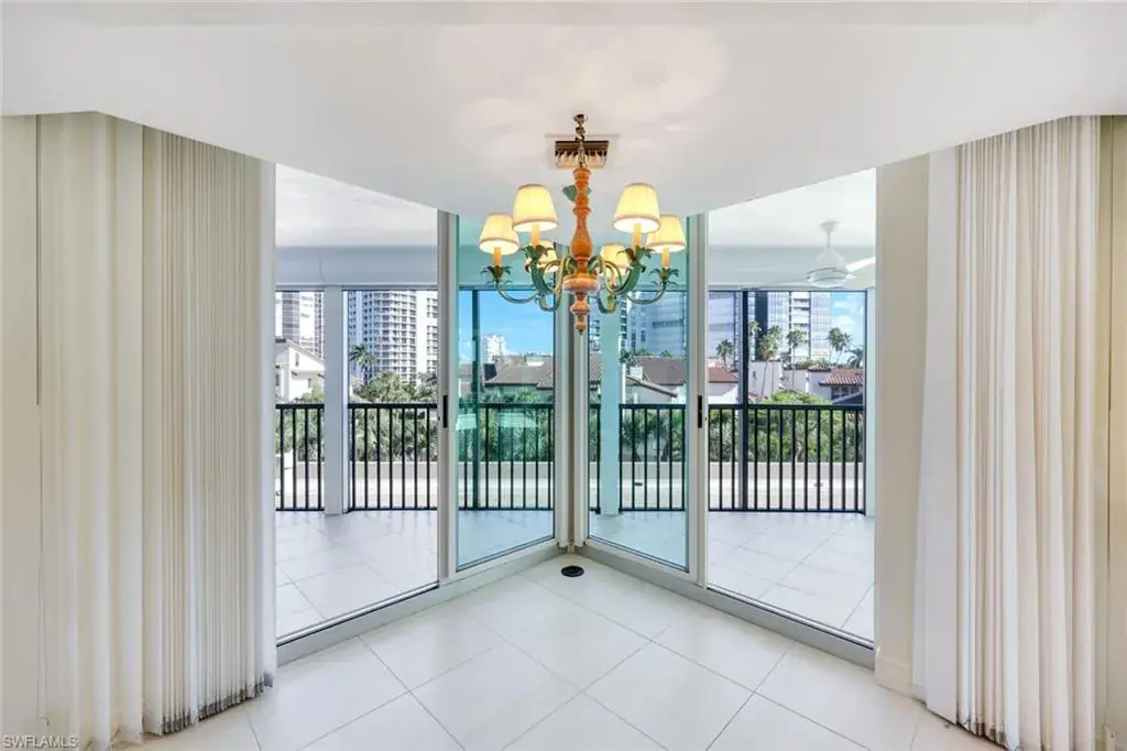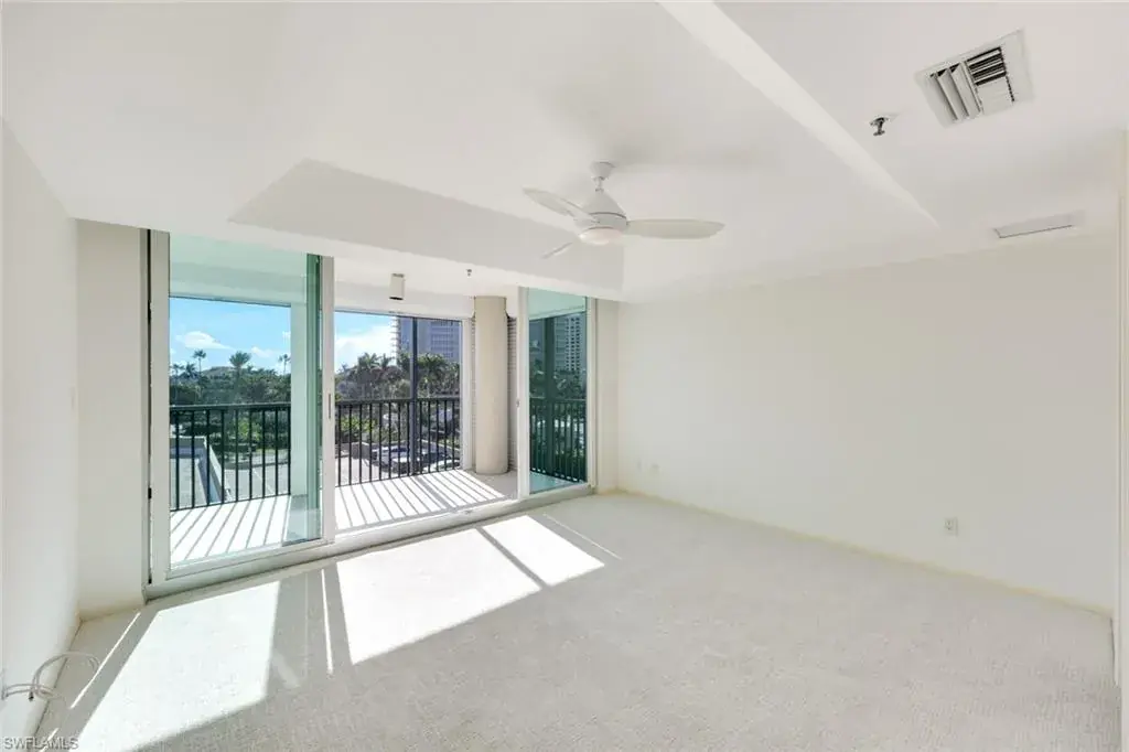 Light-filled by floor to ceiling windows, this spacious residence in the beachfront Vistas at Park Shore features two large ensuite bedrooms plus den and three full baths. The generous den offers flexible use and can easily serve as a third bedroom. A centrally located kitchen features abundant storage, a breakfast nook opening to an expansive 35 ft. lanai with Gulf views and a convenient pass- through to the large great room with bay view, offering ample living and dining spaces for entertaining family and friends or everyday living. Enjoy the refreshing gulf breezes from the lanai accessible from the kitchen, primary suite, den, and great room. A second screened terrace adjoins the front bayside ensuite bedroom providing additional privacy for guests. The primary bedroom wing includes two walk- in closets, and a beautifully updated bath with a wall of custom built- in cabinets providing exceptional storage. Designed for the Naples lifestyle, the Vistas offers a host of amenities including a lovely beachfront pool, state of the art fitness center, community room with catering kitchen, four high speed elevators, and 24 hour gated security with doorman service. Ideally located just a short stroll from the restaurants and shops at Venetian Village with boat slips available for sale and lease across the boulevard (upon availability). Recently painted and featuring new carpet in all three bedrooms, this gulf side residence is ready for your personal touches.