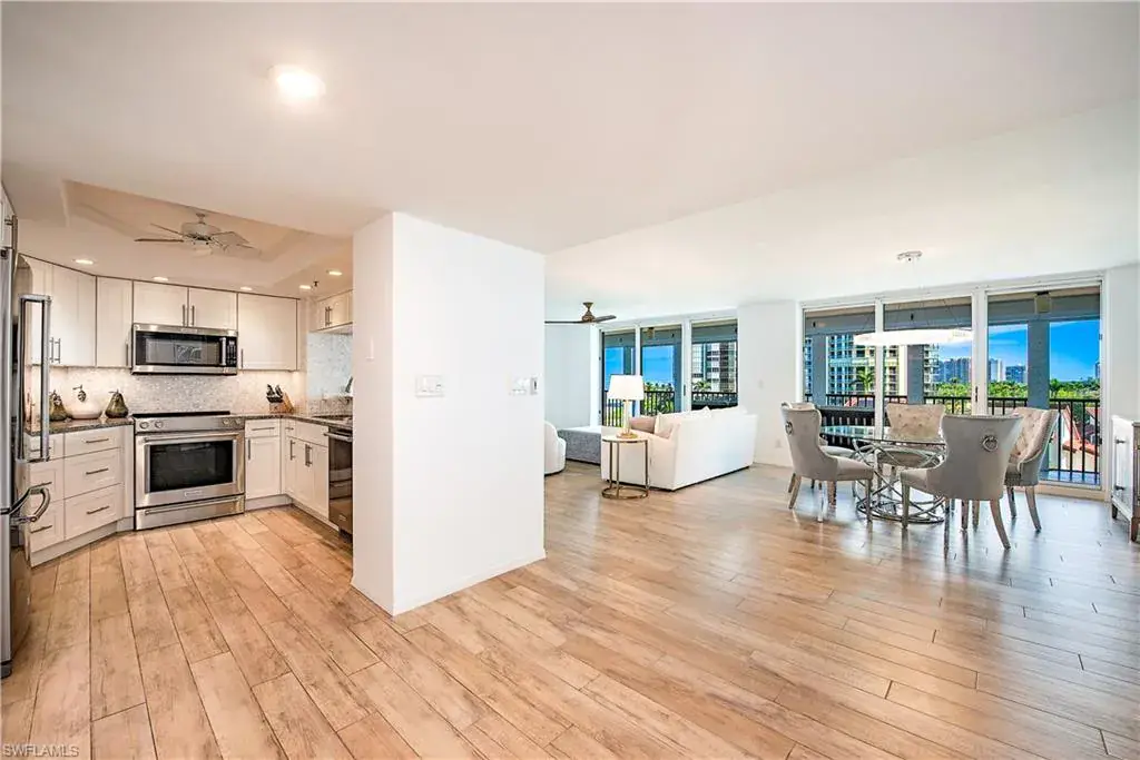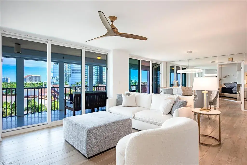 Indulge in the best that the luxurious Naples beachfront lifestyle has to offer. This exquisitely updated, 4th floor, two bedroom, two bath residence provides breathtaking views of the Gulf of Mexico from Naples to Sanibel Island. Enjoy sunsets and warm Gulf breezes from either of the two screened lanais. The open and flowing floorplan offers 1,881 total square feet of perfectly appointed living space with custom finishes and outstanding attention to detail. Additional features include high-end appliances, custom walk-in closets with built-in shelving, a spacious master suite, electric hurricane shutters, impact glass windows, one deeded garage parking space, and extra air-conditioned storage. Vistas at Park Shore is a premier high-rise building with resort style amenities including a large beachside pool and spa, social room, library, fitness center, sauna, steam room, and four guest suites. Steps to Venetian Village & central to all of Naples from the downtown district of 5th Ave S & 3rd St, to Waterside Shops, Artis-Naples & Mercato for upscale dining, shopping & entertainment. Owners at Vistas can also lease or purchase a boat slip in the Venetian Yacht Club.