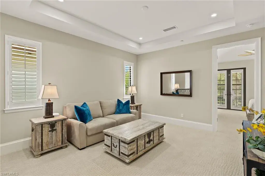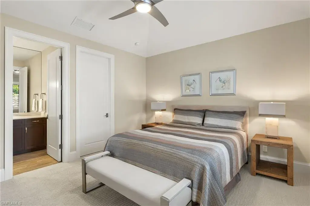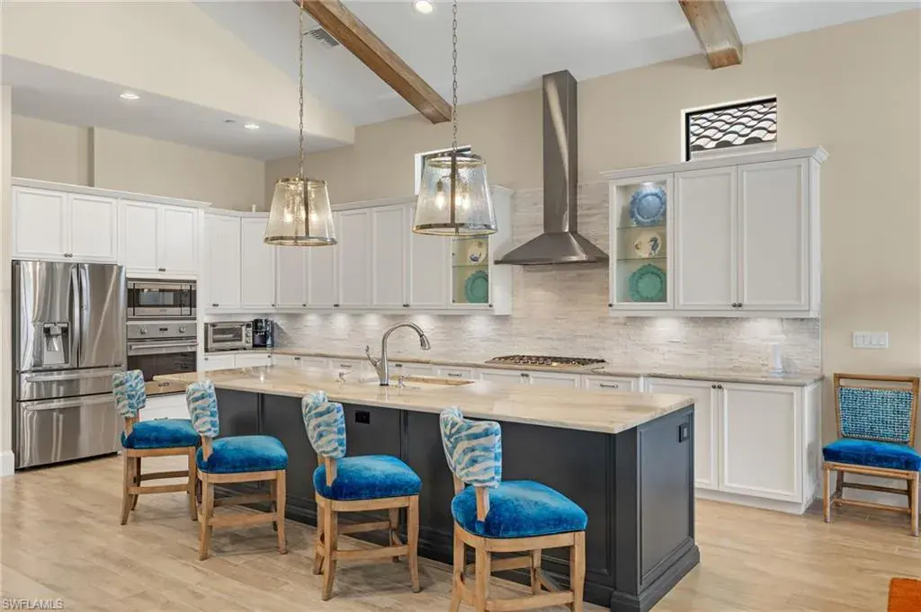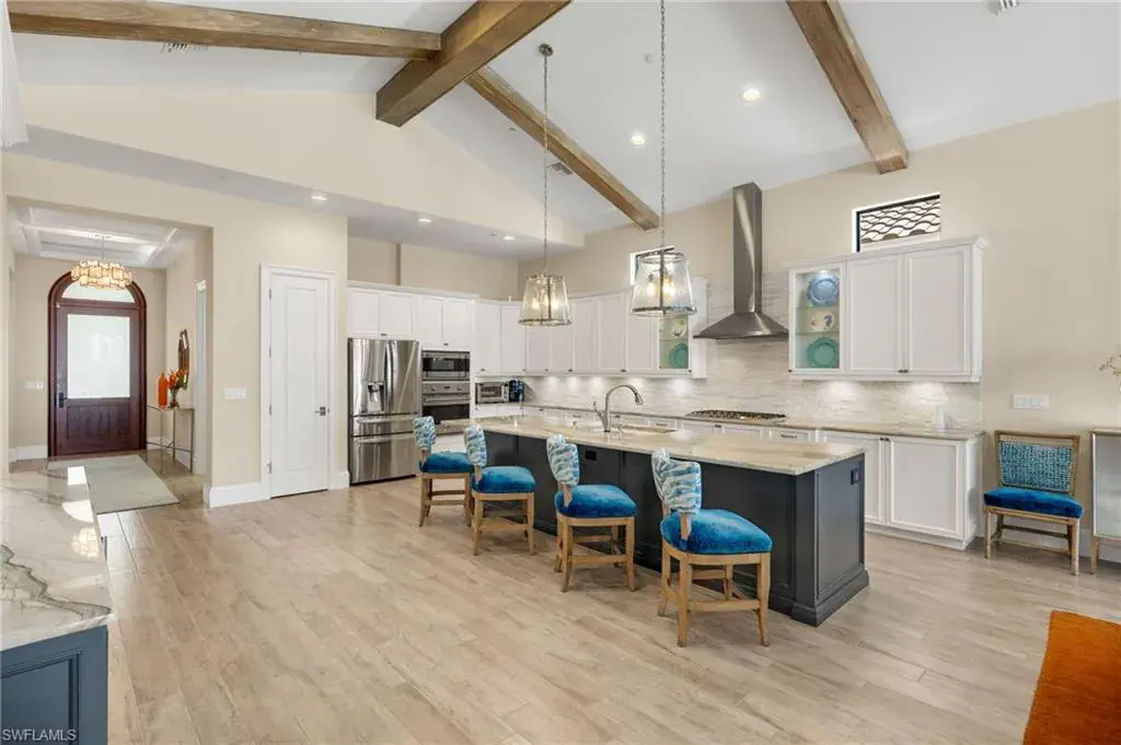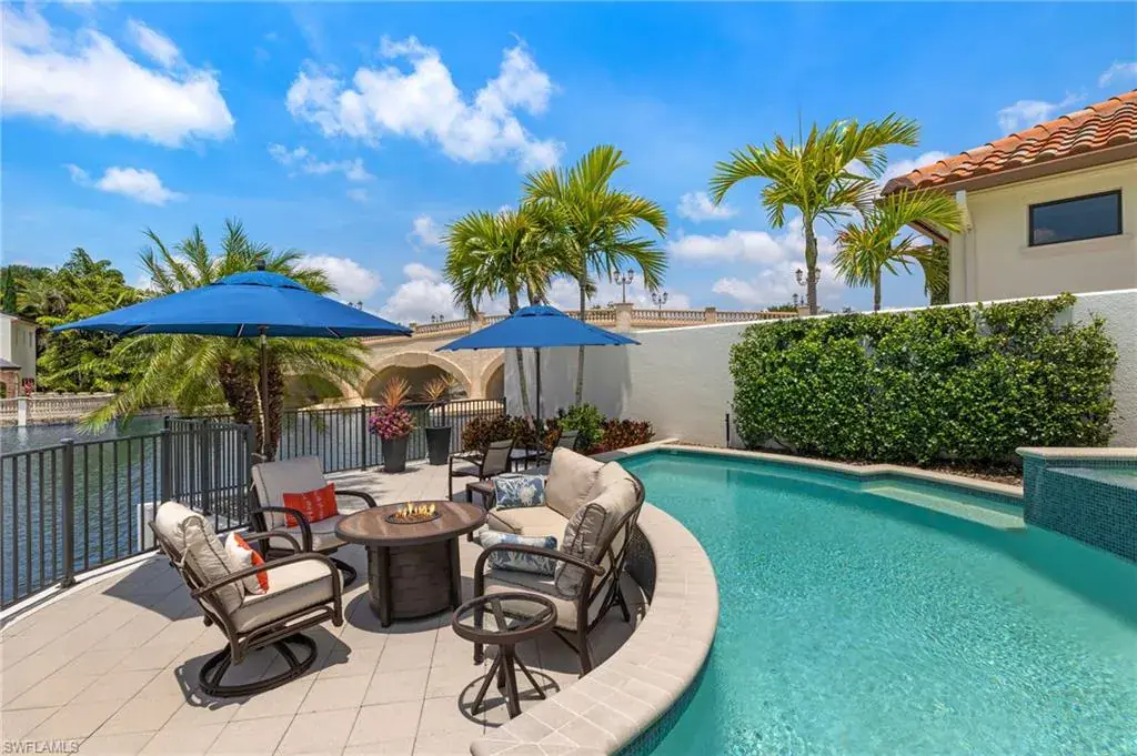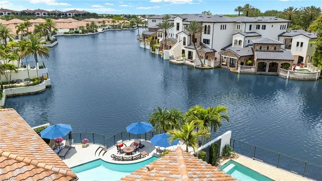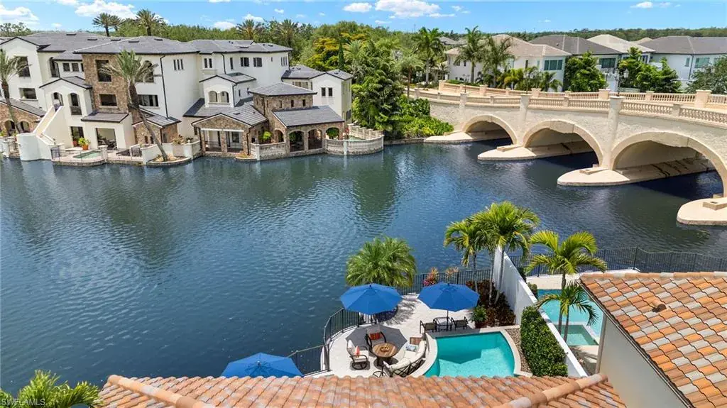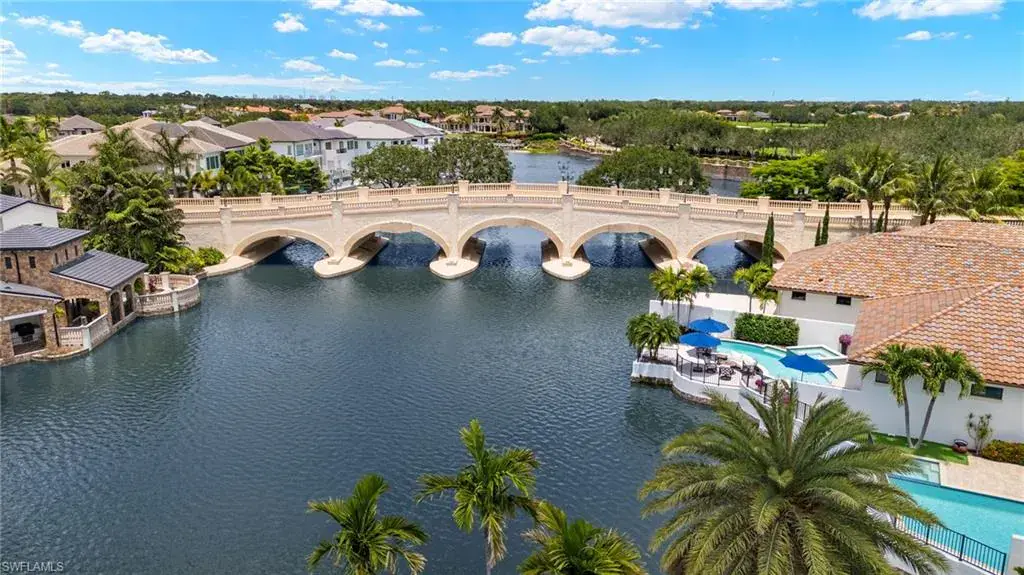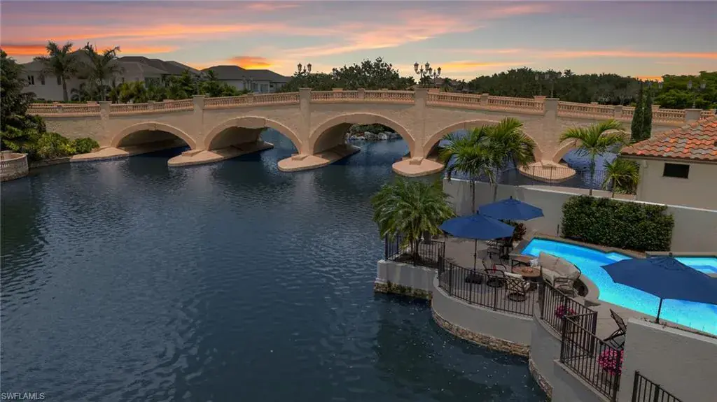 IMMEDIATE GOLF MEMBERSHIP AVAILABLE FOR PURCHASE AT CLOSING! SKIP THE WAITLIST! Sun-drenched long lake views and gorgeous sunsets over the iconic bridge, plus a timeless interior, combine to make this one-owner custom-built residence in TALIS PARK a show stopper! From the moment you enter the foyer, you’ll be delighted with the many upgrades, including beautiful soft, white cabinetry. An expansive island, a separate bar with a wine cooler and plenty of cabinets for storage, stunning light fixtures, a vaulted beamed ceiling and an office with built in cabinetry and two desks could easily serve as a fourth bedroom. A spacious primary suite affords two walk-in closets, an oversized shower and stunning vistas. The split bedroom floor plan on the second level provides two spacious ensuite bedrooms and a large loft area for an engaging gathering place for tv watching or to seek solitude while working/reading. The summer kitchen provides a beautiful setting for entertaining or al fresco dining. Electric screens make it pleasant year round. The pool and spa area have an exquisite California vibe plus an exceptional terraced area for enjoying the gorgeous views. Even the garage is well equipped with a Daikin room air conditioner, parking for two vehicles plus a golf cart, built in shelving and an epoxy floor. With an easy stroll across the street to the driving range and Casa Cortese, this location is highly desirable. Talis Park features an award winning golf course designed by Greg Norman and Pete Dye, an award winning clubhouse with numerous dining/bar venues, the Casa Cortese with a golf simulator and billiards, Fiona’s Market, workout facilities, Esprit Spa, tennis, pickleball, bocce, two dog parks, miles of walking/running/bike riding and an extremely busy social calendar. Located between Olde Naples and RSW Airport and a short drive to the sandy beaches of Naples, the location is premier. Time to live your very best life in Talis Park!