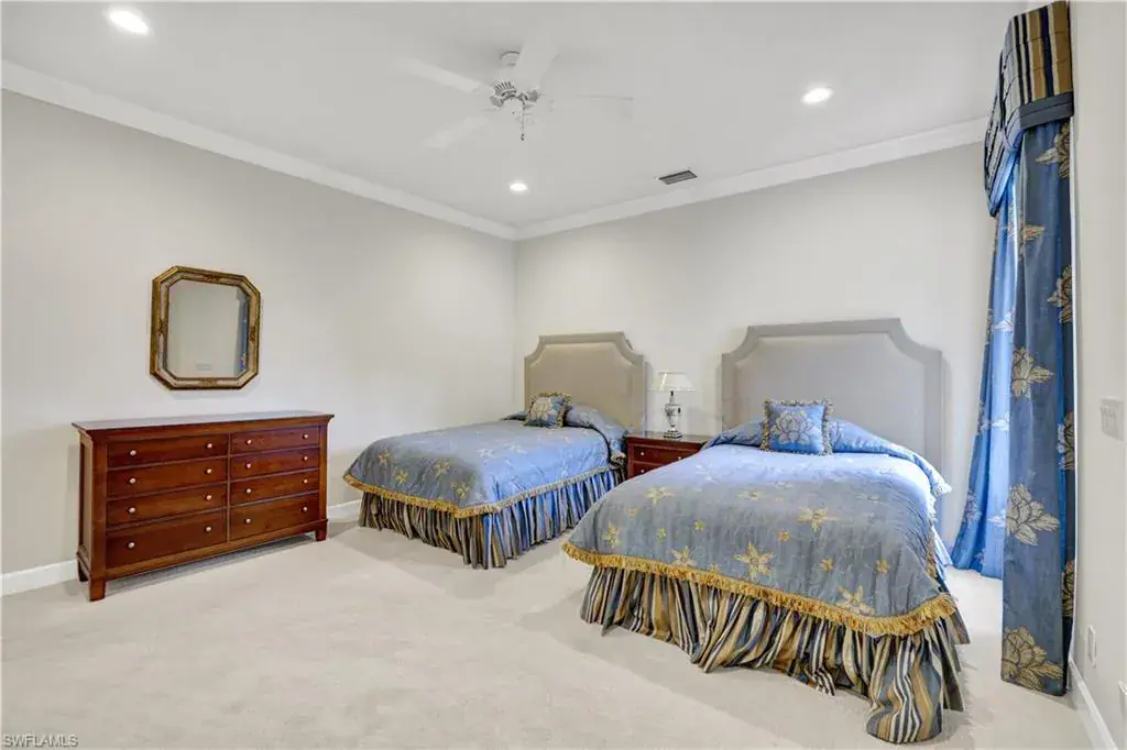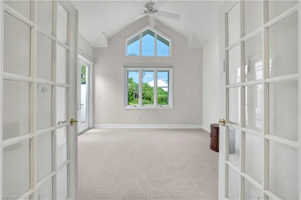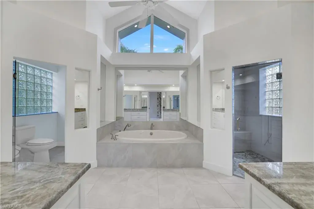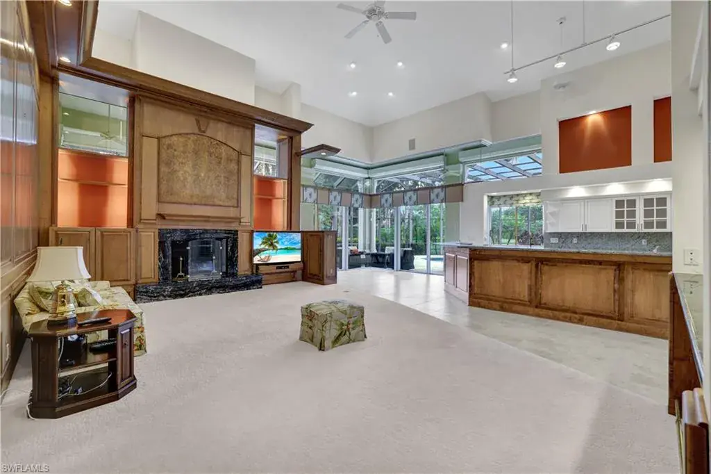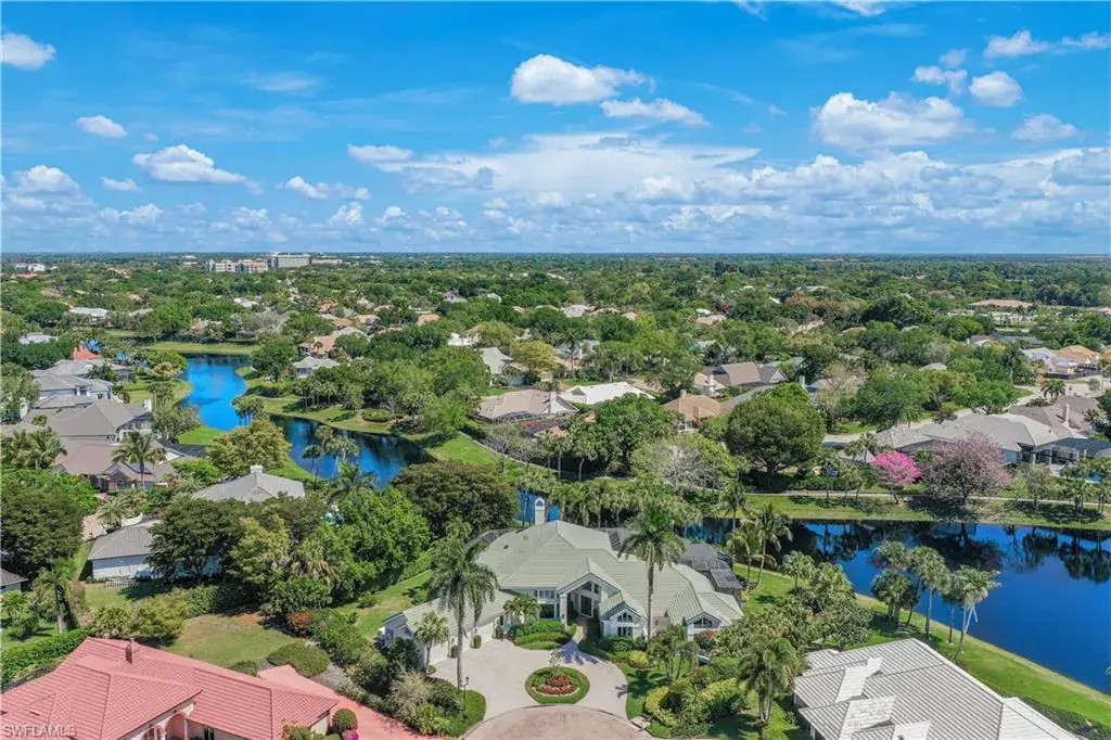 Panoramic 180 Lake Views!! Surround the spacious 3,043 square ft screened lanai that features a large pool, spa, outdoor kitchen with electric cooktop and bar, beautiful waterfall and ample under roof area. This home is all about enjoying outdoor entertaining. Interior features include volume ceilings, floor to ceiling windows and doors, custom wood panels and mill work, spacious en suite bedrooms. The layout provides a private wing for guests. Perfect oasis to be enjoyed inside and out!! Exterior features include a lovely paved drive, ample three car garage and a whole house generator. Situated on a lakefront cul-de-sac amongst lovely Estate homes in the upscale Waterford community. Pelican Bay is centrally located between Waterside Shops, restaurants and the Ritz Carlton Beachfront Resort. Resident amenities include three miles of beach, two private beachfront Pavilions with restaurants, facilities, chairs, lounges and cabanas provided, fitness center, spa, tennis, pickleball, kayaks, canoes and sunfish for use, miles of nature paths. This is Florida Resort Style Living at its Best.