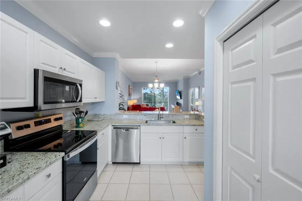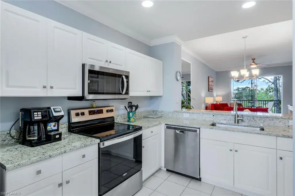 BEAUTIFUL 3RD FLOOR CONDO AT VANDERBILT COUNTRY CLUB! Spectacular bundled golf course with gorgeous driving range over water, at your back door. Not a golfer? How about bocce, tennis, pickleball, stunning new pool, tennis shop and bocce project. Experience 5-star dining, as well as outdoor dining and dancing, Grill N chill events with incredible food, state-of-the-art gym, massage therapy on site, and a multitude of card games, are just a few of the fun events at this inviting warm community. This condo has a beautiful view of the golf course with crown molding, luxury vinyl, newer appliances, granite counters, faucets, newly painted, and carpets. An added benefit is that it is located in an elevator building. Multiple upgrades add to the fantastic value of this condo. TURNKEY AND READY TO GO. Not ready to retire yet? Rental opportunities are abundant and waiting to hear about a new opportunity for next season. The comradery, beauty of the community, are palpable. As we say, right out our back door, you can swim, bike, walk, eat at your choice of 3 restaurant options, and experience the “Vibe of Vanderbilt Country Club. You won’t be disappointed.