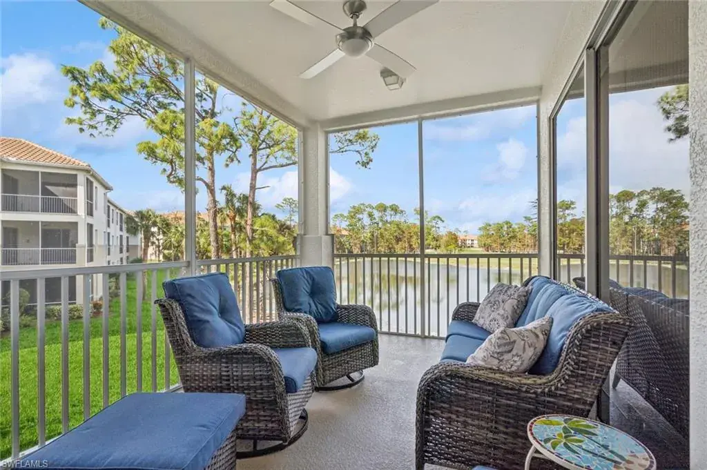 A premier bundled golf community with a very active social life, pickleball, tennis, bocce, multiple pools, dining and so much more. Easy access to an impeccably maintained golf course. Whether you prefer club dining, the Terrace Cafe by the pool with Island music and libations, or a casual bar for sports and lighter fare, it is all at your back door. Massage, PT, full time golf pros, tennis & pickleball pros, state of the art gym, dancing, themed events, are just a sampling of the many activities offered at Vanderbilt. This 2+den,2nd floor has amazing views of the 11th fairway and lake. Offered as Turnkey, with newer furniture and updated fixtures. It has neutral colors with an open floor plan, eat-in kitchen, pantry, and separate split guest bedroom and a den with sleeper sofa. Newer stainless-steel appliances, granite counter tops, newer carpeting.