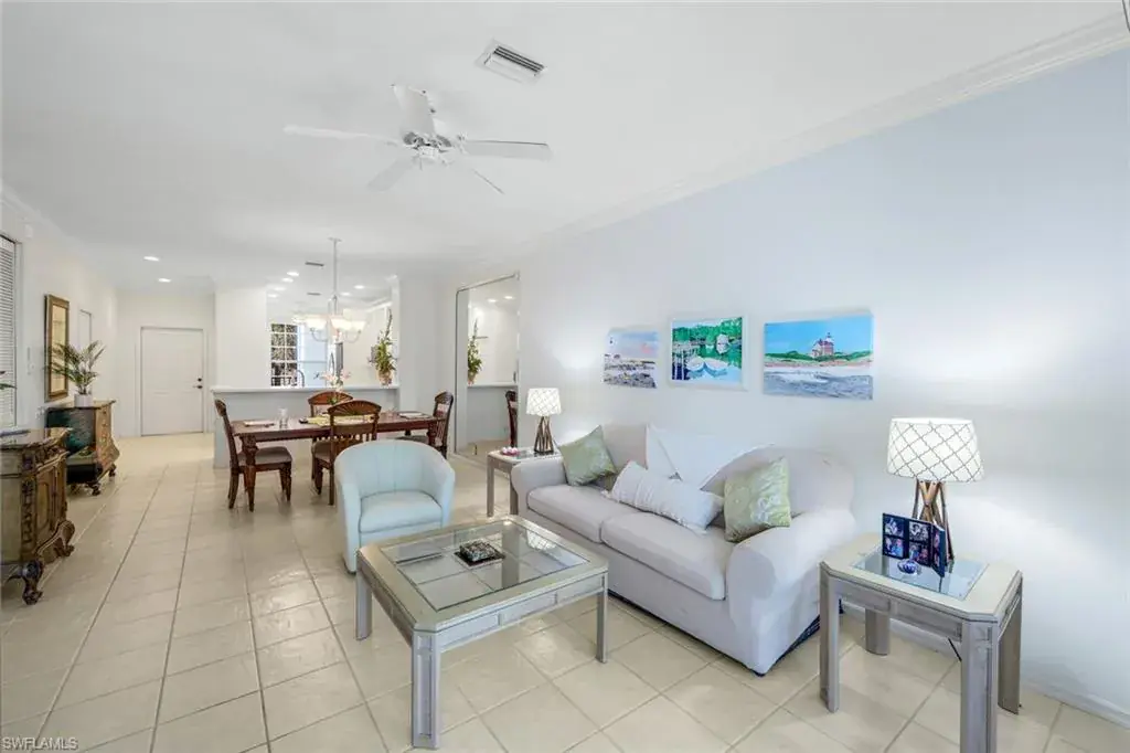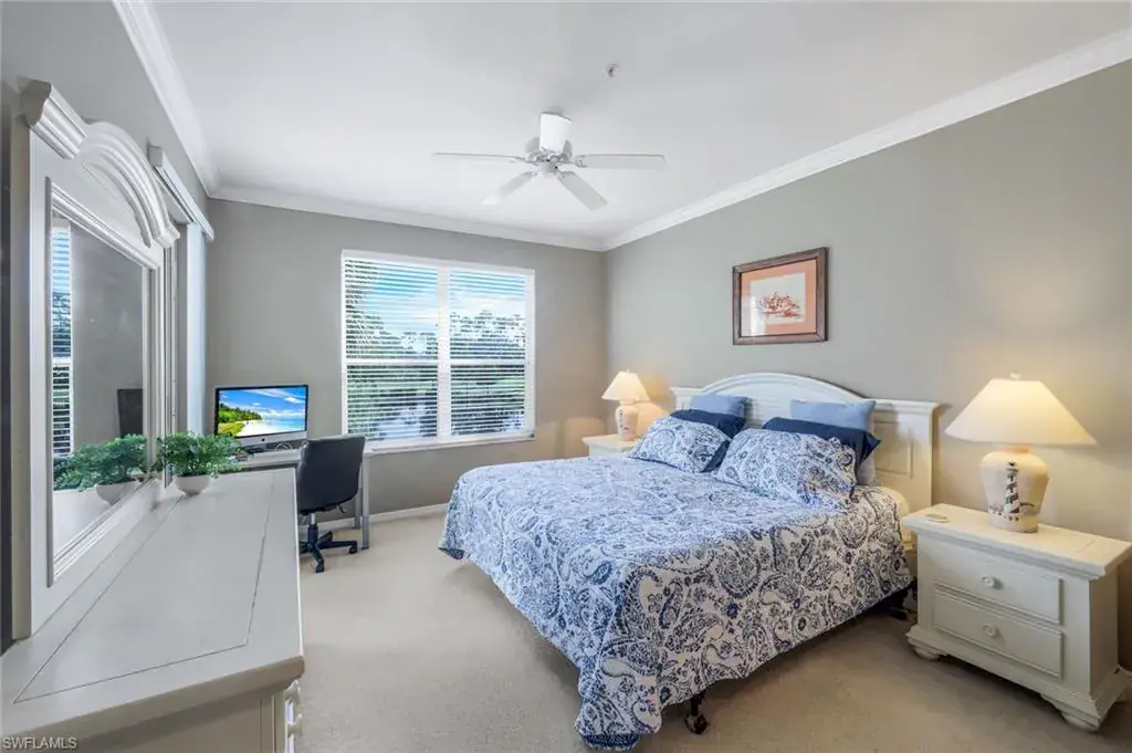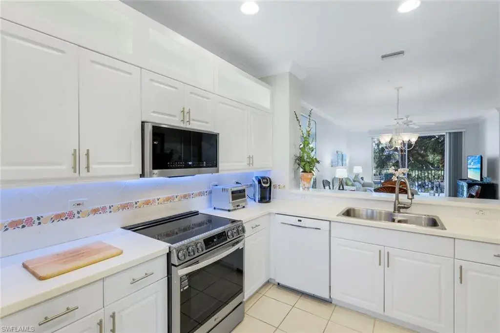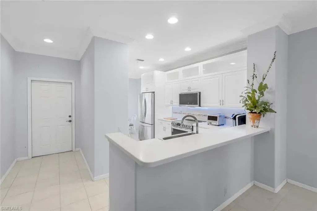 Vanderbilt Country Club offering this tasteful 2-bedroom, turnkey condo! Modern redesigned kitchen cabinets with interior lighting, as well as new appliances, make this kitchen standout. Freshly painted throughout with neutral colors, crown molding, split bedrooms for privacy and a stunning view of the pond & 11th Fairway are added bonuses. The newly completed state-of-the art pool is simply magnificent. Additionally, there are 3 satellite pools with grills for outdoor cooking & evenings by the pool The building location is perfect as it is close proximity to the satellite pool, clubhouse and vibrant terrace cafe. The community is active with outside dining, dancing under the stars, fantastic Caribbean beverages and great food options from the club chef, all in a “blue zone” community. The list goes on and on of the varied activities for one an all. There is a “vibe” here that is contagious with laughter & comradery! Bundled golf with a challenging course with views of the 11th green and flush with eye popping landscaping and flowers, as well as driving range over water are hard to beat. Not a golfer? How about swimming, card games, tennis, cooking events, trivia, volunteering, state-of-the art gym, with on-site massage and PT? Paradise here is a reality. Rentals are in high demand here as well, because the word is out. Come and see what the “vibe” is about. This home is ready to close and have your memories begin.