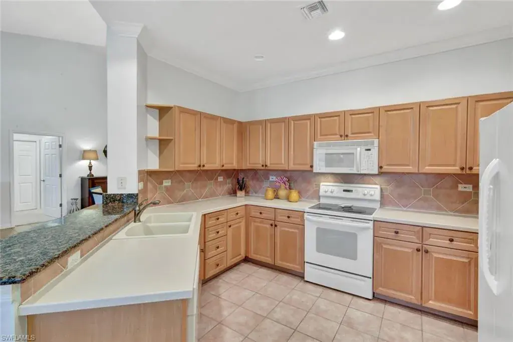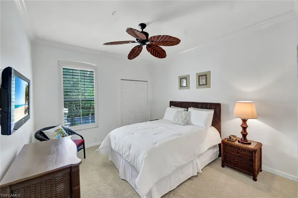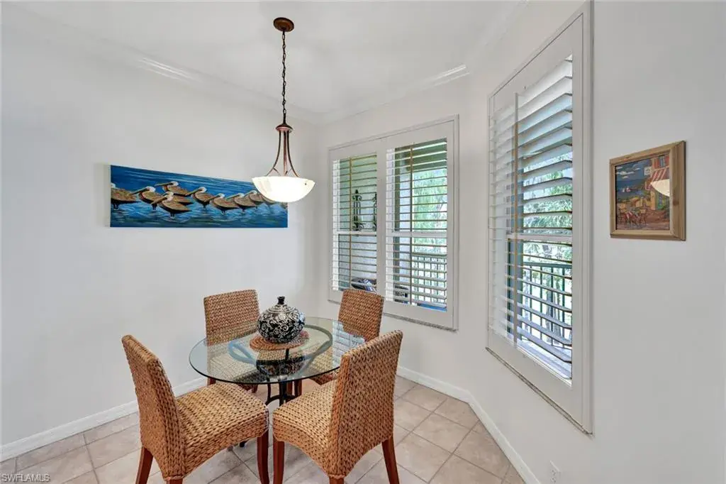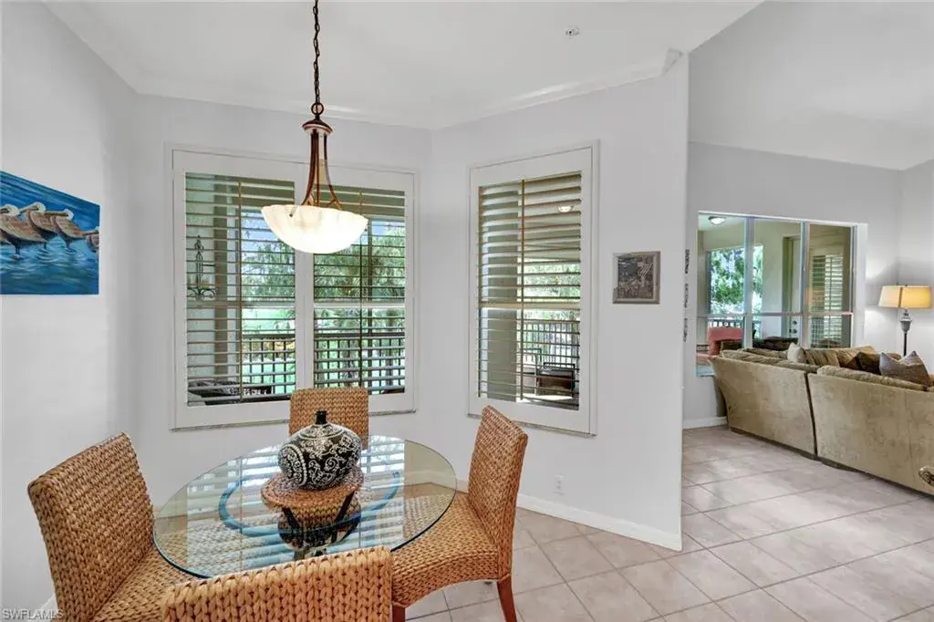 Highly sought-after Nottingham 2 carriage home with a 2 car garage, ready for season! Completely turnkey with stately furnishings in an excellent location directly across from the clubhouse, tennis and stunning pool. Newly painted, with plantation shutters, and a beautiful view of the pond and 10th tee, only enhances this spacious home. Oversized lanai adds to the open floor plan for morning coffee and enjoying nature at its finest. 3rd bedroom is a great flex room with a pullout sofa, crown molding, adding to this versatile floor plan. The eat-in kitchen has a cozy feel, with a pantry and wine refrigerator included. Vanderbilt Country Club is known for its stunning golf course, on site dining, including the Terrace Cafe for outside music and libations, inside bar and formal dining with an executive chef that never disappoints. The newly finished main pool is complete with lap lines, zero entry access, with a covered bocce area that is simply stunning. Rental opportunities abound with many folks looking to come year after year to this fun community. Come and see what Vanderbilt is all about. You will be so happy you did.