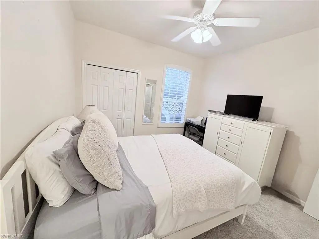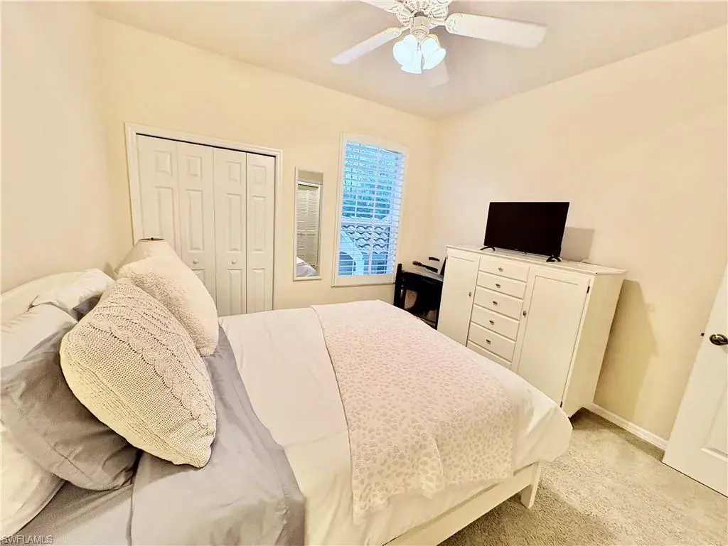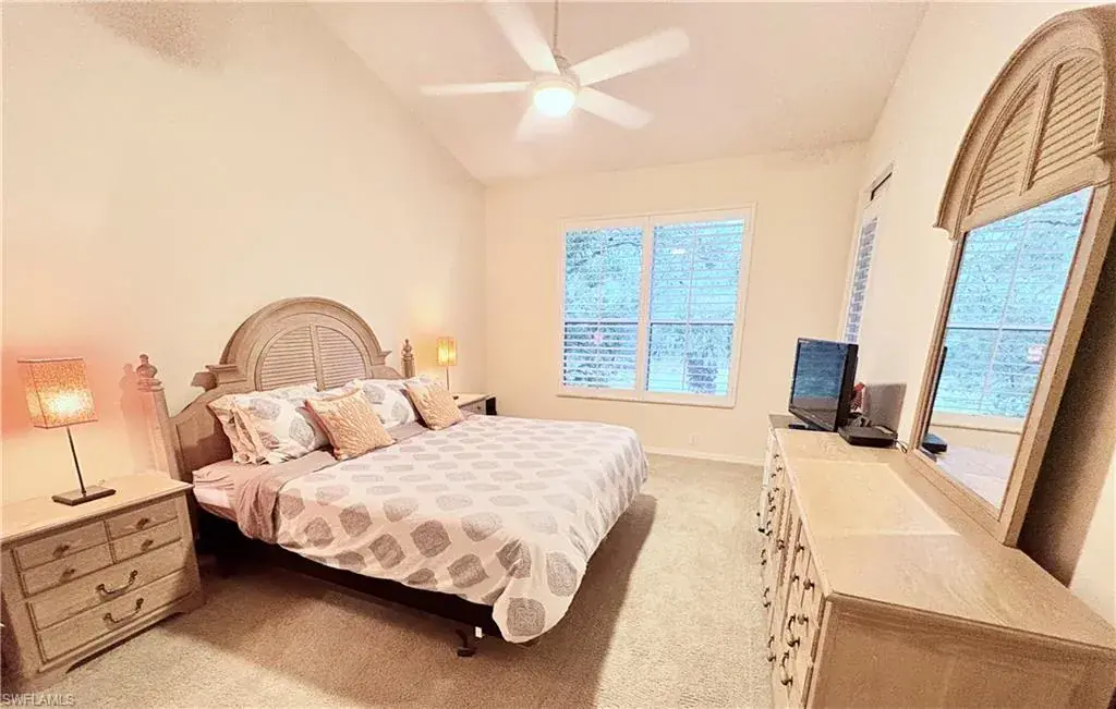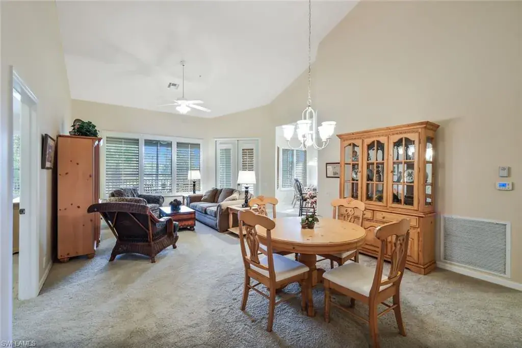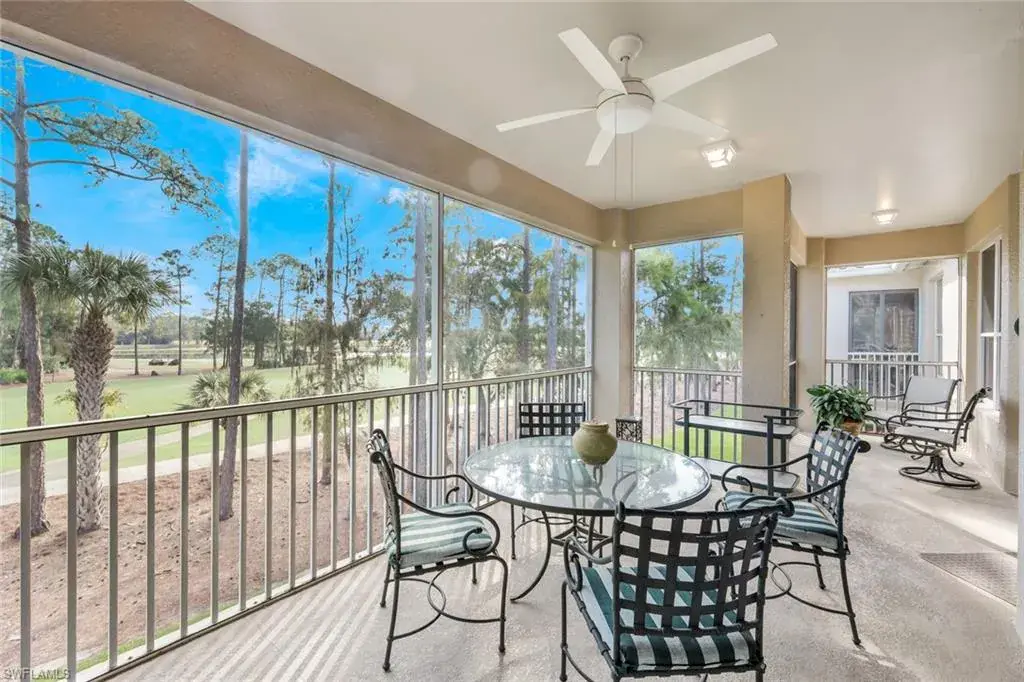 RARELY AVAILABLE 2ND FOOR CARRIAGE HOME WITH DESIRABLE EASTERN LANAI EXPOSURE. Vanderbilt Country club is an exceptional BUNDLED GOLF COMMUNITY with a well-respected golf course & driving range. The tree-lined 18 hole, par course winds through 6,631 yards of beauty and is enhanced by stunning landscape. This well maintained, clean unit offers newer appliances and a breakfast nook opening to a spacious lanai surrounded by nature. The living room/dining room open concept configuration with vaulted ceilings presents a roomy comfortable living space. This second floor home is in a convenient location with a two car garage, plantation shutters, as well as partial furnished. Extra bonus room/den is perfect for overflow company or an office with pullout couch adds to the value of this property. Brand new resort style pool and Bocce courts just completed 8/25, multiple satellite pools, tennis, pickleball, dances. Formal and casual restaurants and most importantly a friendly, fun-loving community enhance the lifestyle of all that come to live and visit. The Terrace bar is adjacent to the pool and island vibe. PT, personal training, with multiple classes, are at your back door. Don’t miss out on this one!