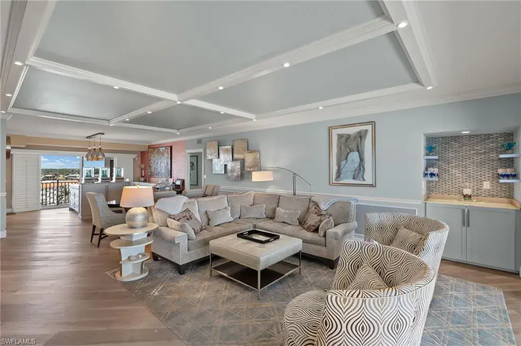 Welcome to an exquisite waterfront escape at 2901 Gulf Shore Boulevard North, Unit 701, in the vibrant Moorings area. This sophisticated 3-bedroom, 4-bathroom residence offers an unparalleled living experience with panoramic Gulf and Bay views that capture both stunning sunsets and sunrises. Start your mornings on your private balcony, sipping coffee while enjoying breathtaking views of the Bay, and as the day winds down, relax with a glass of wine with beautiful views of the sun disappearing in the horizon of the Gulf’s waters. Inside, luxury abounds. Step inside to a grand foyer that flows seamlessly into an expansive living area, featuring rich hardwood floors and large windows that frame breathtaking gulf and bay views. The well-appointed modern kitchen features everything you would need to prepare for entertaining or a quiet dinner for the family! It truly is a culinary delight. The primary suite is a serene retreat with a spacious 2 walk-in closets, a luxurious en-suite bathroom, and magnificent views. Each guest bedroom provides ample space and en-suite bathrooms. Elevate your lifestyle with an array of amenities, including direct beach access and a common outdoor space that invites relaxation and leisure. Enjoy the peace of mind offered by hurricane shutters and the convenience of an elevator. The attached carport garage and guest parking add to the ease of living, while the pool area offers a refreshing escape. With all these luxuries this home ensures you have everything needed for a seamless living experience. Discover the elegance and smart design of this Westgate residence, where luxurious living meets the stunning natural beauty of Naples. Don’t miss the opportunity to make this waterfront haven your own.